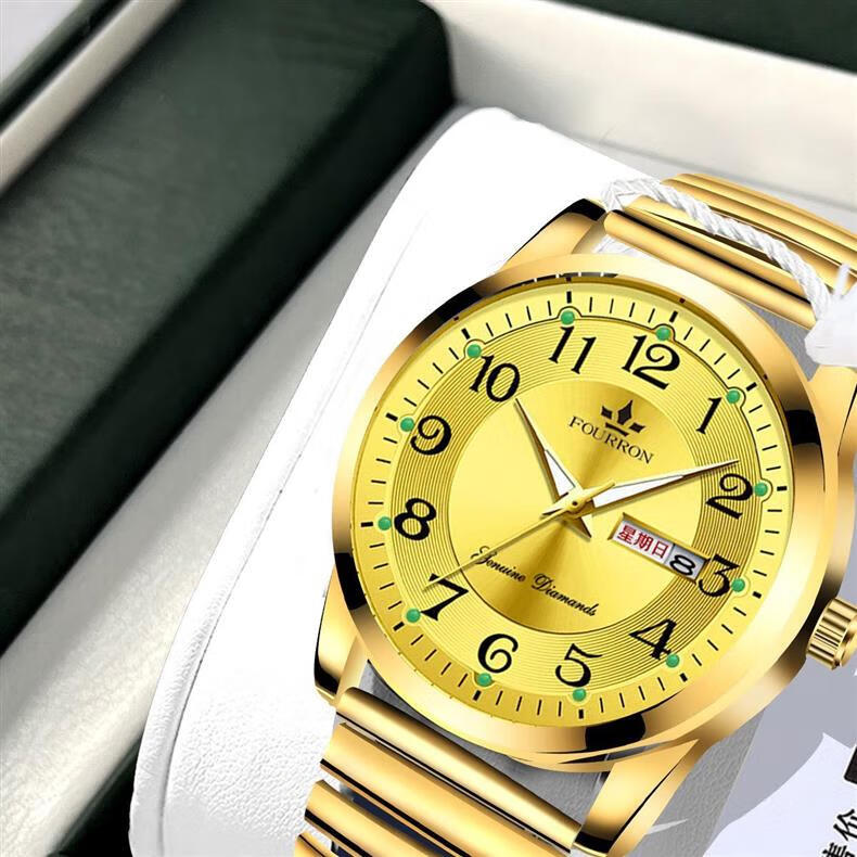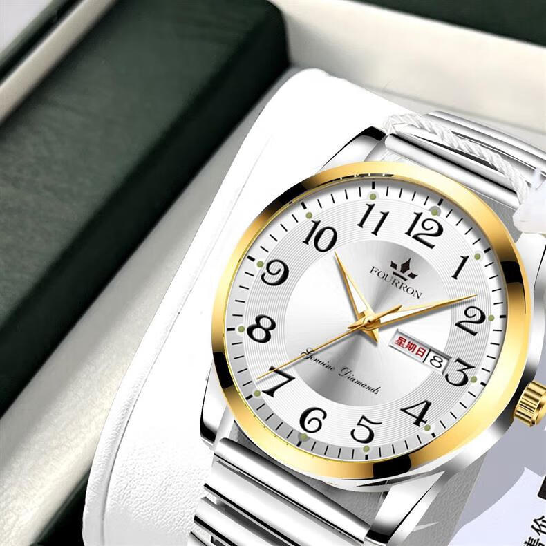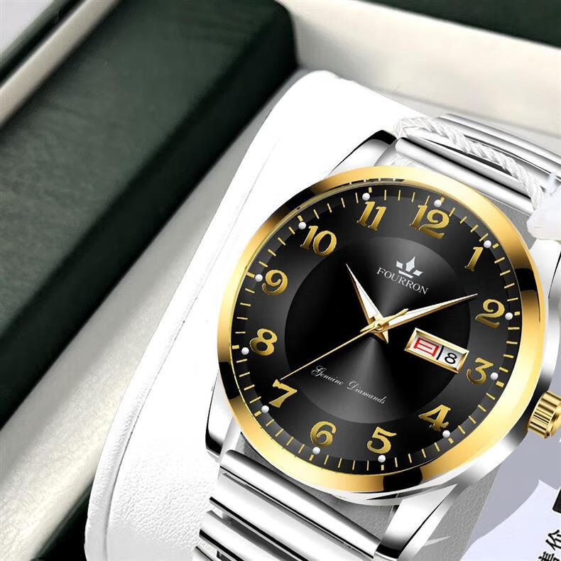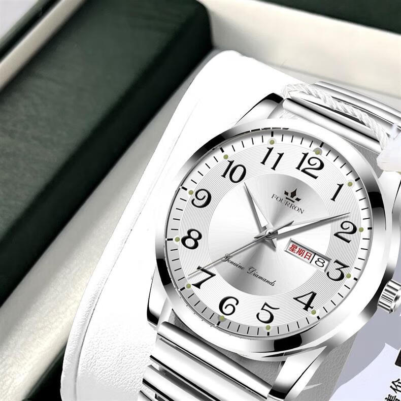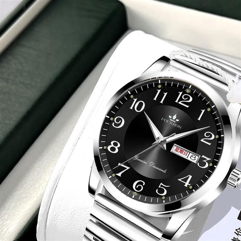 瑞士全自动男士手表时尚防水夜光高清大数字老人男表弹簧松紧男表 旗舰升级加强版-黑银面 弹簧带