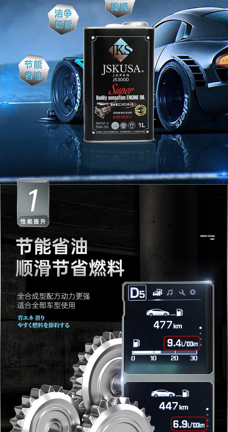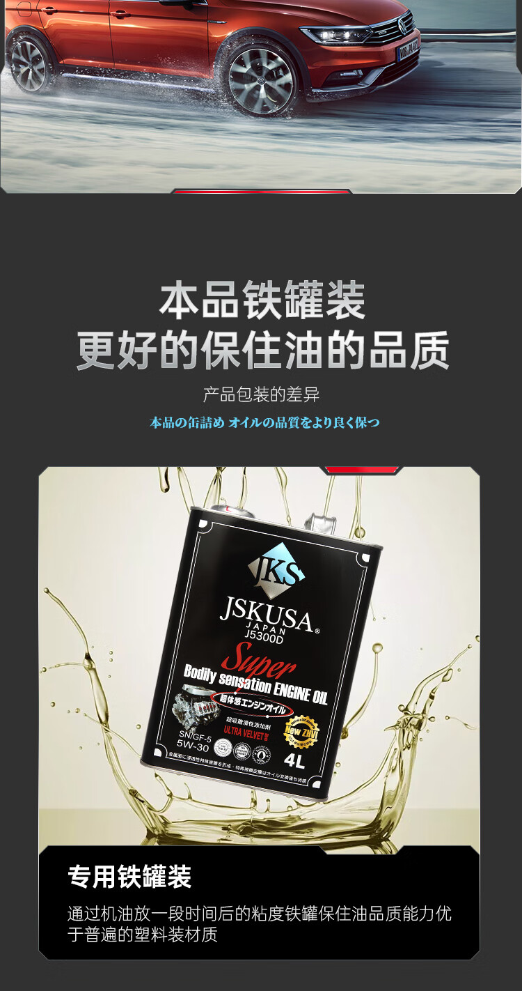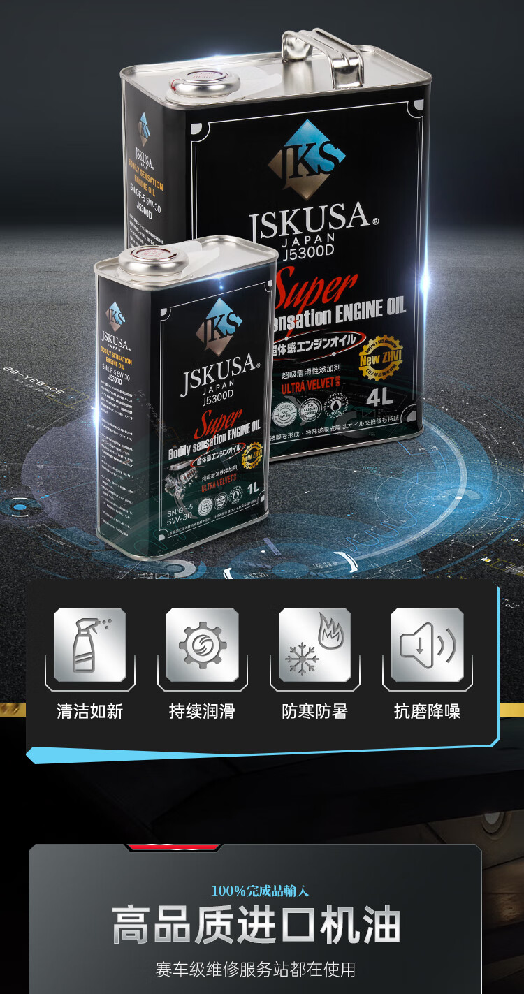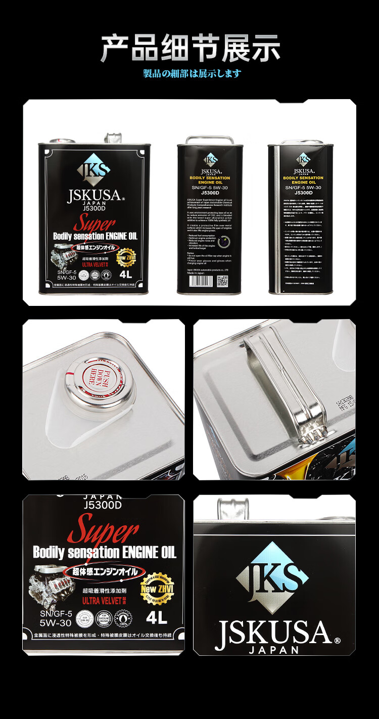 JSKUSA日本原装进口JKS全合成机油四季通用汽车发动机润滑油5W30四升装