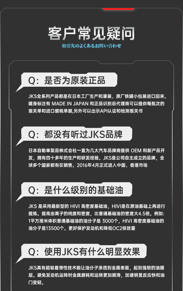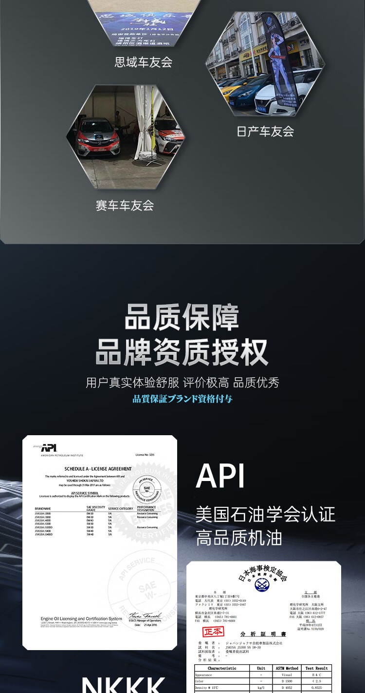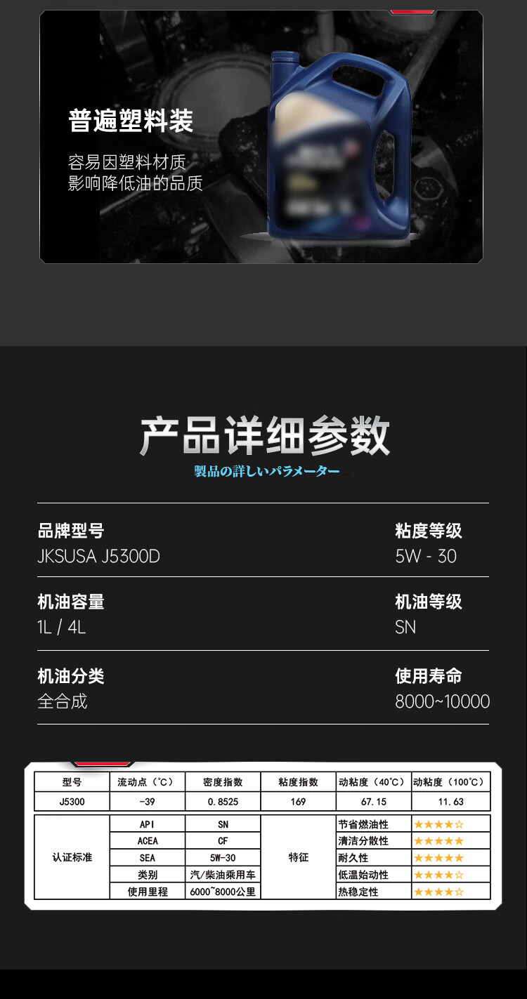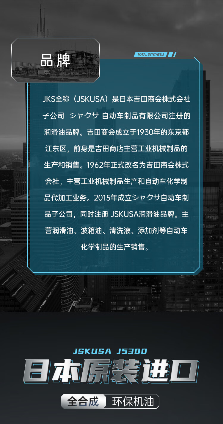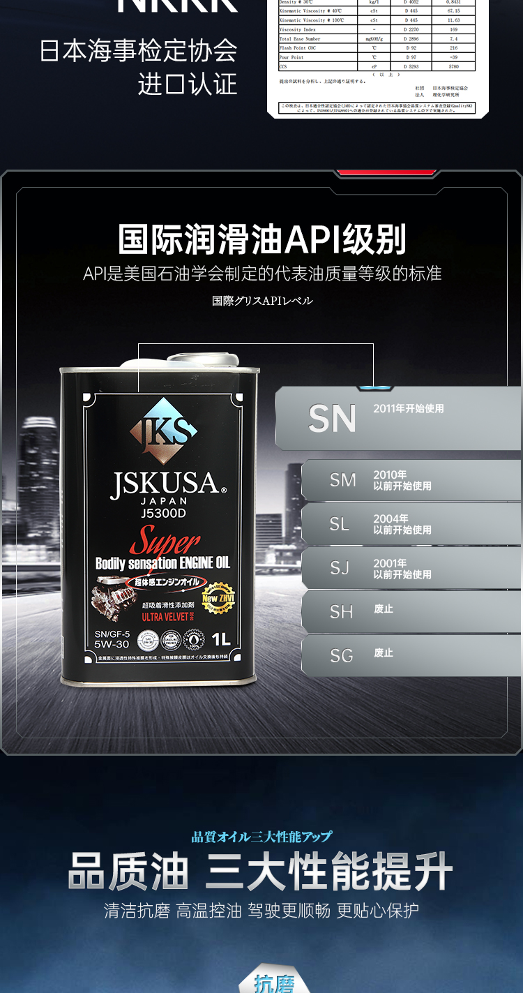 JSKUSA日本原装进口JKS全合成机油四季通用汽车发动机润滑油5W30四升装