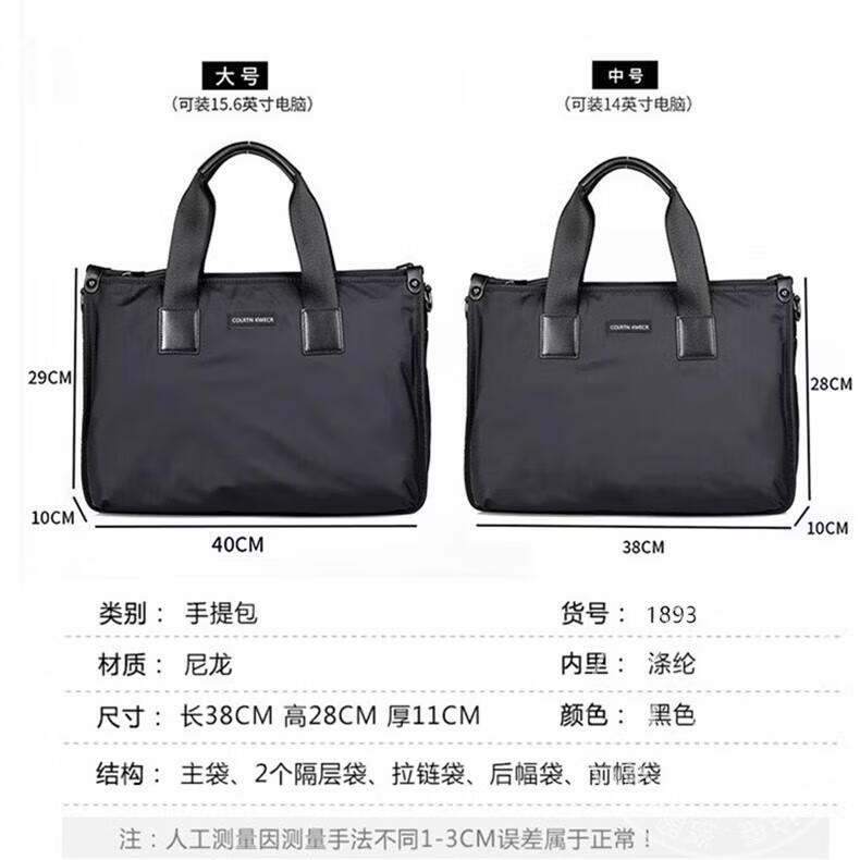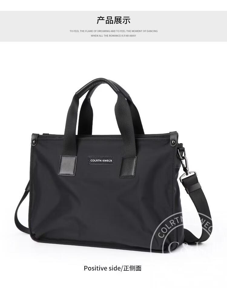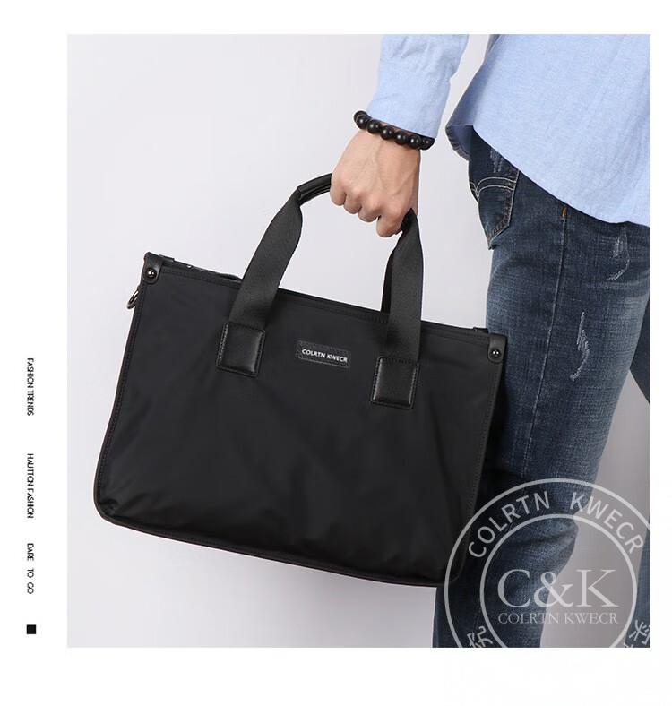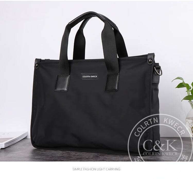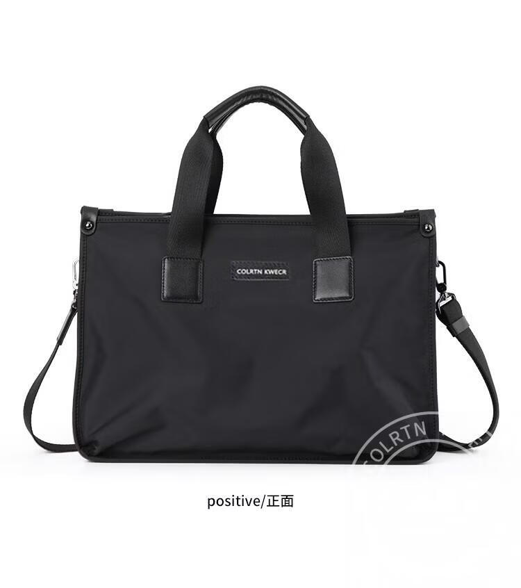 Colrtn Kwecr 男士手提包新款商务出差公文包大容量休闲单肩包电脑包奢侈品 黑色大号40*29*10