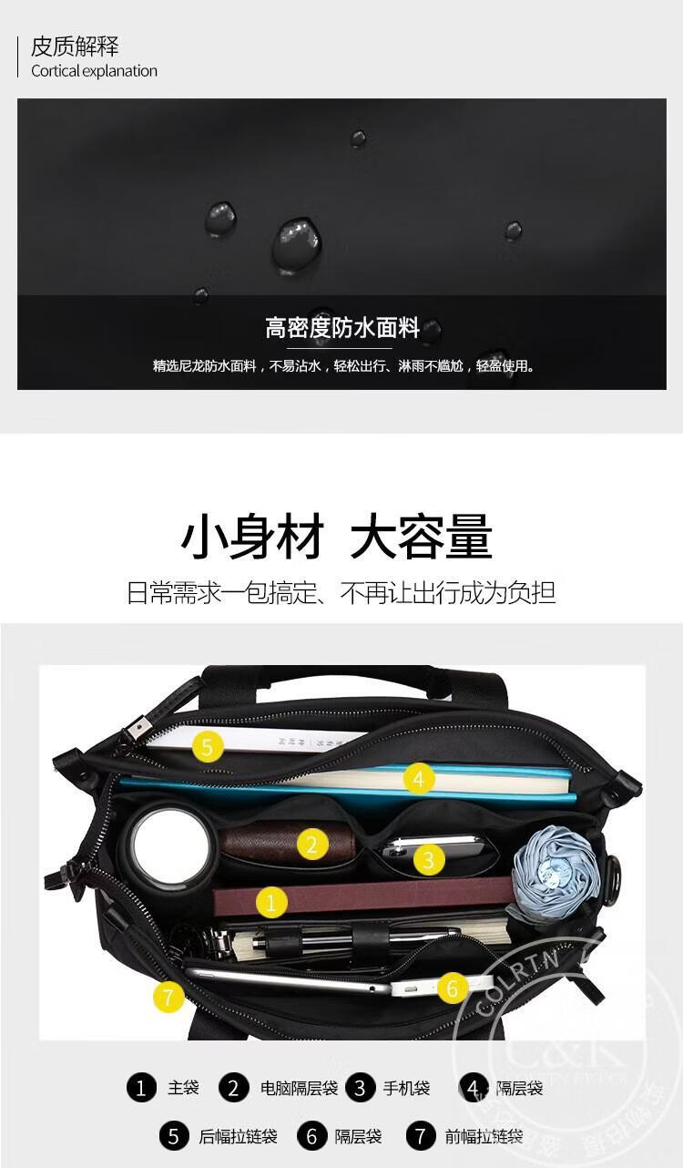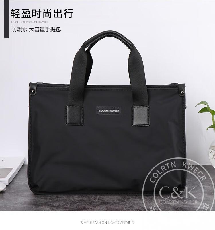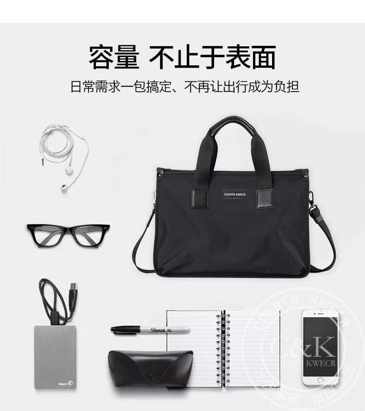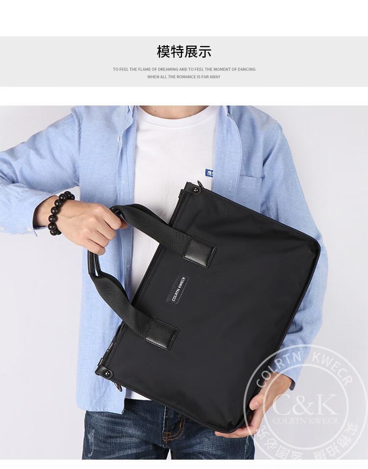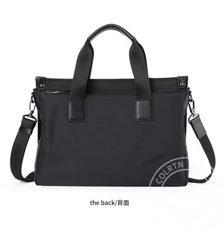 Colrtn Kwecr 男士手提包新款商务出差公文包大容量休闲单肩包电脑包奢侈品 黑色大号40*29*10