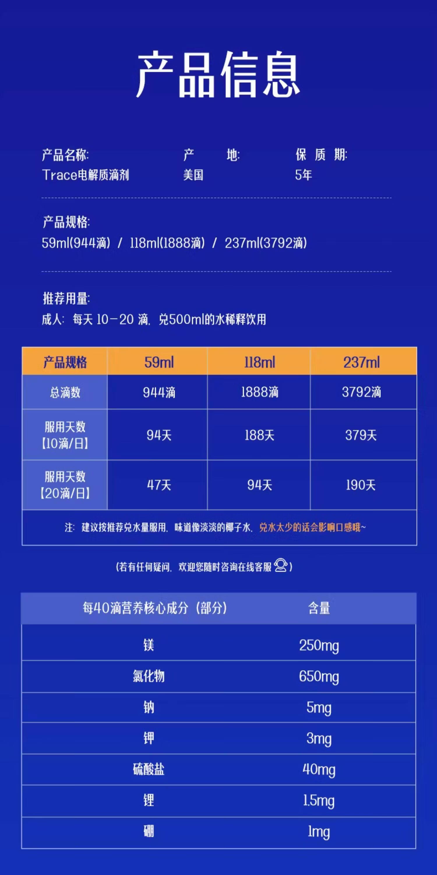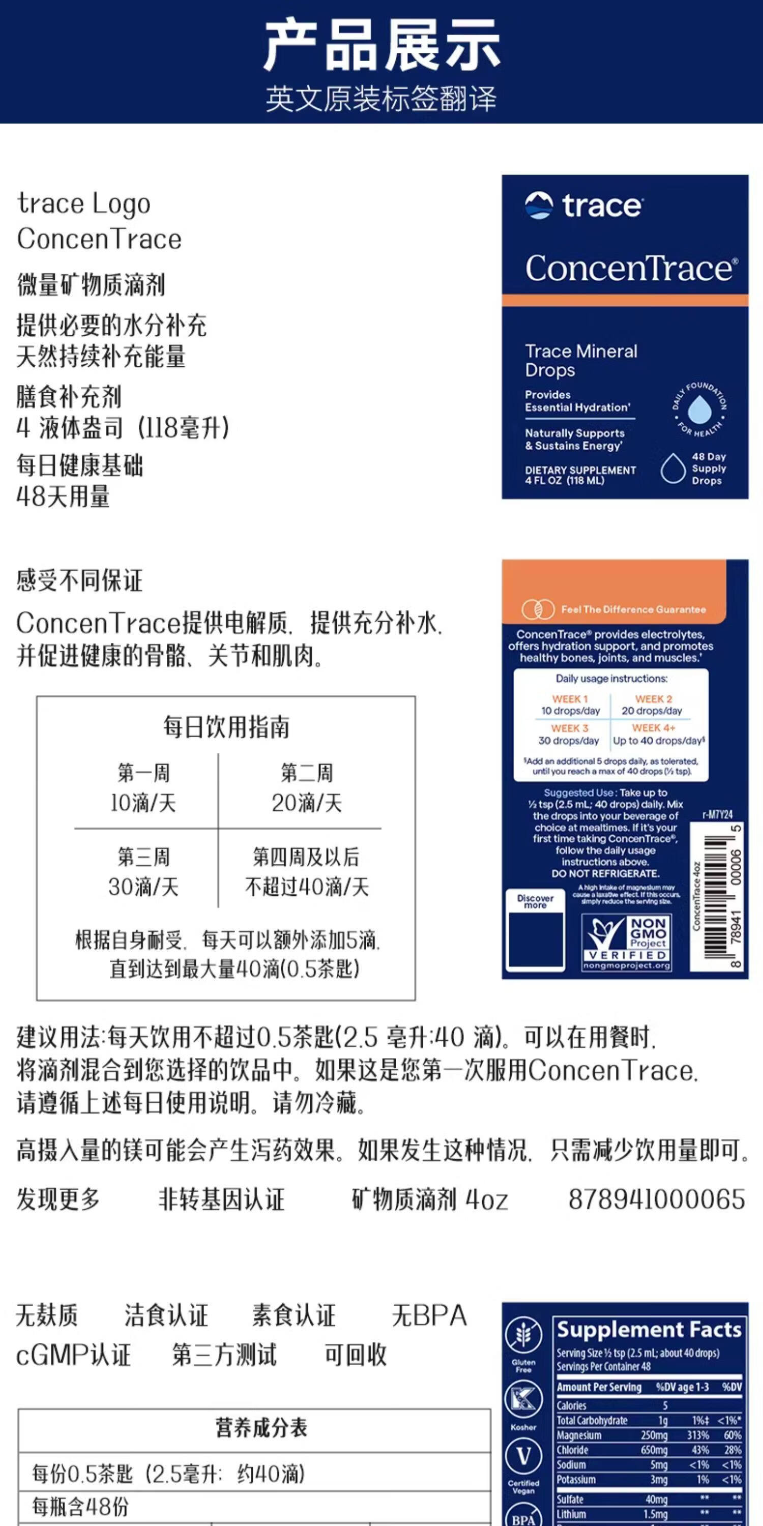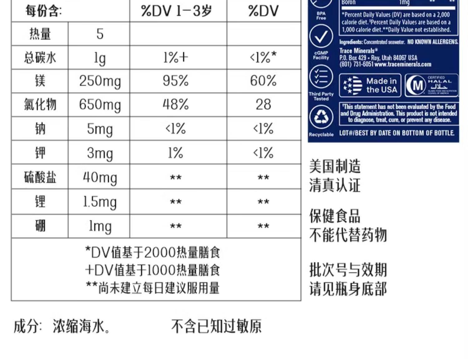 trace电解质矿物质滴剂液体钙镁锌硒成人运动电解质补充剂恢复体力无糖 59ml*1瓶