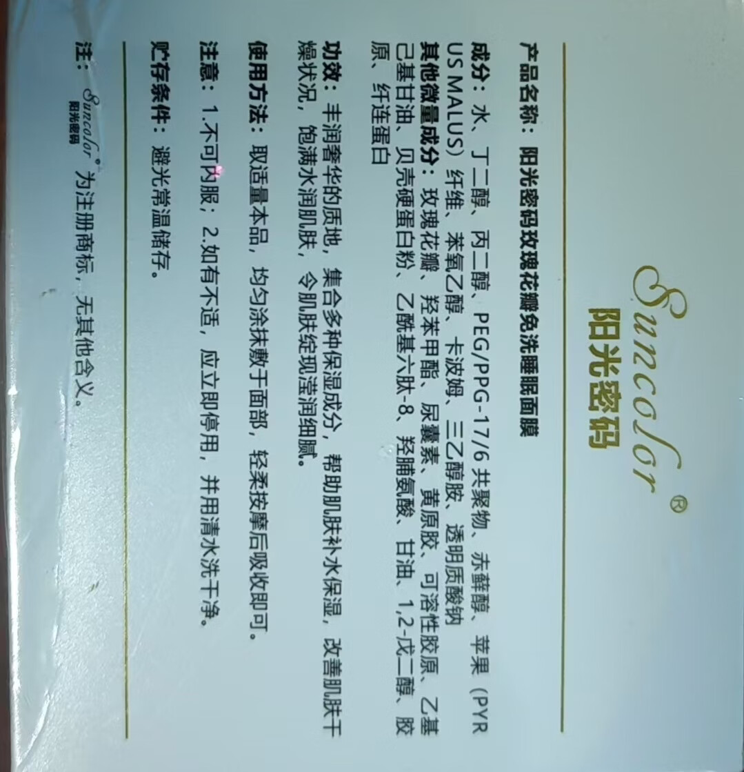 阳光密码玫瑰花瓣免洗睡眠面膜面霜护肤品补水保湿祛痘祛斑 两瓶修复装