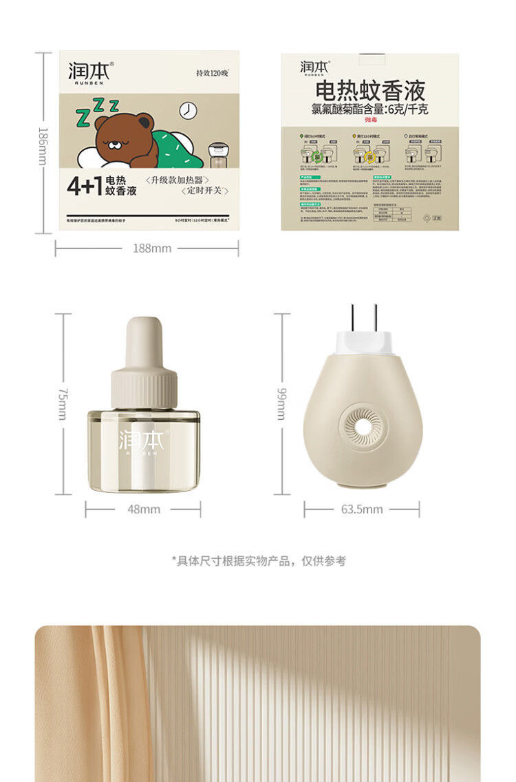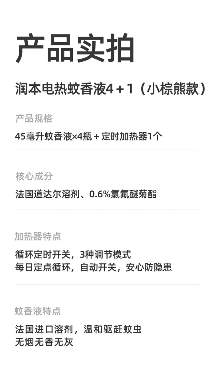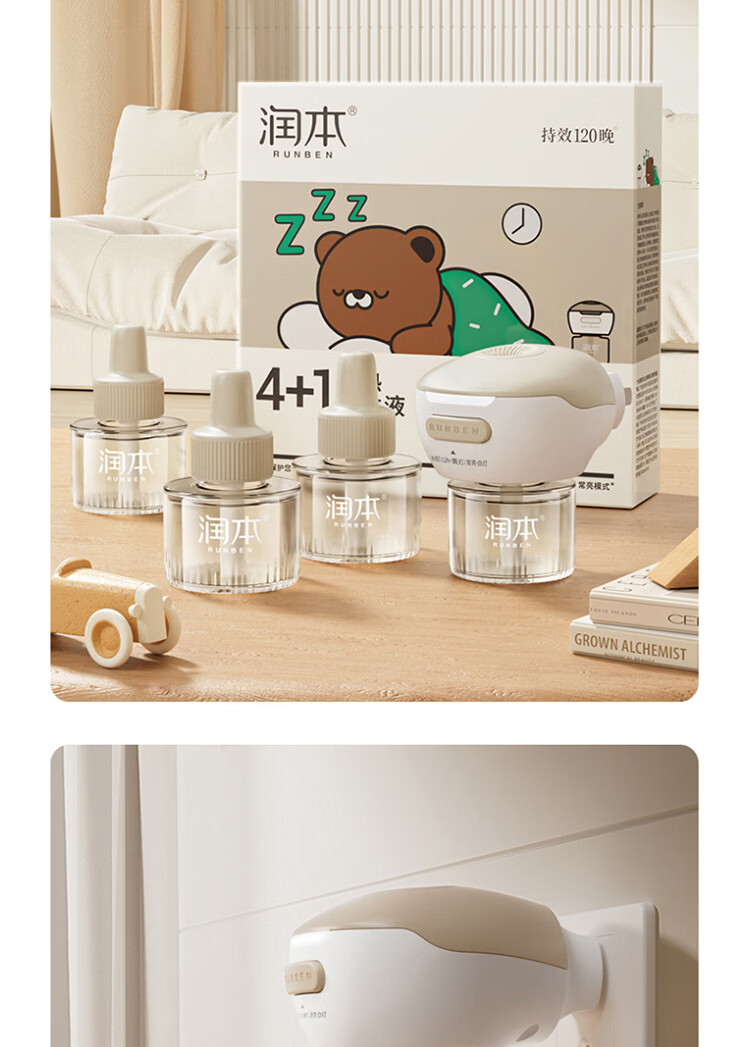 屈臣氏润本电热蚊香液 45mlx4瓶+加热器1个