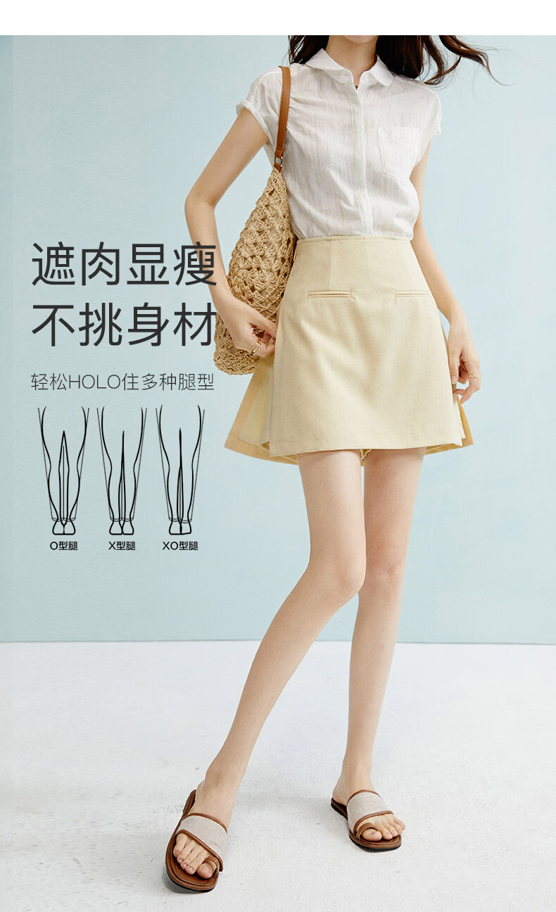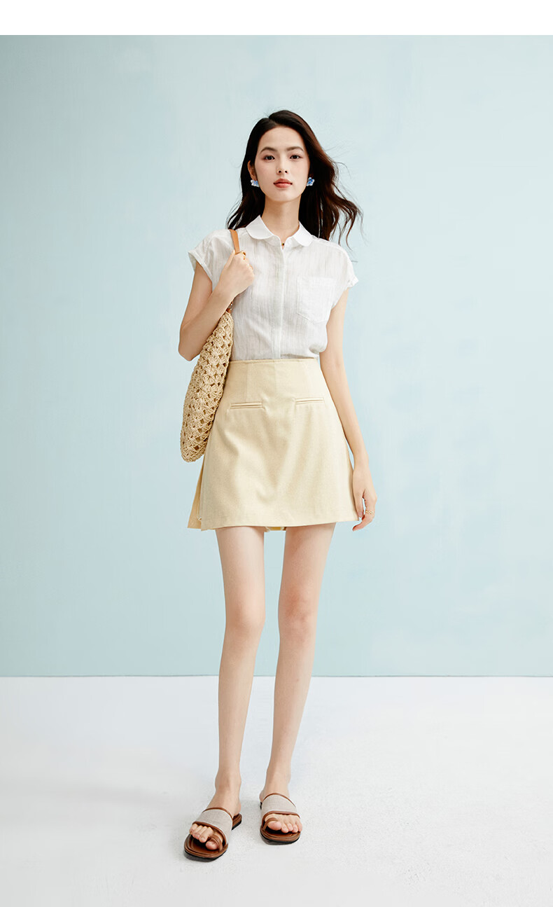 晚白【新品】2026年春款时尚含麻高腰裙裤修身显瘦气质百搭短裤女 嫩黄色 26