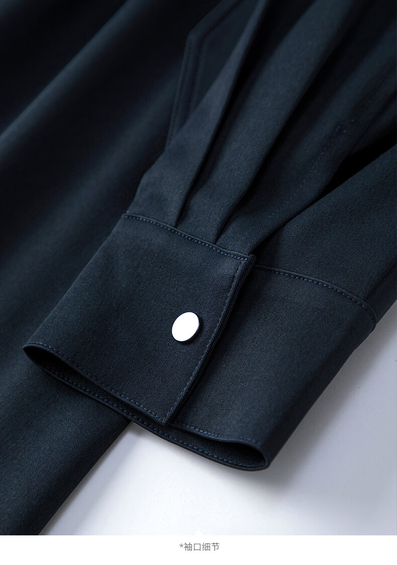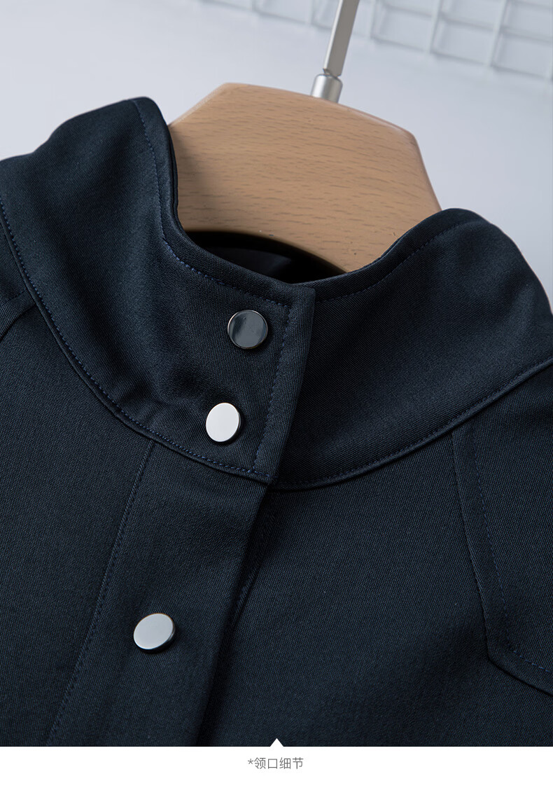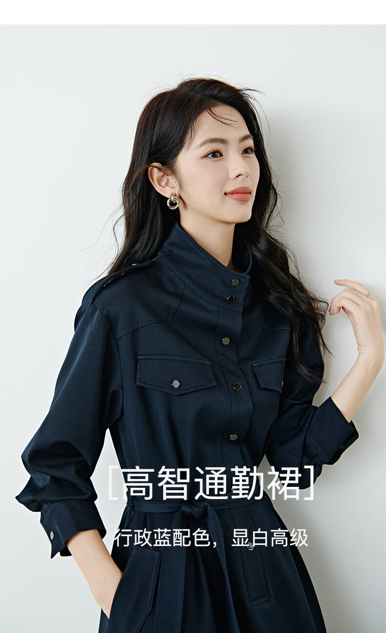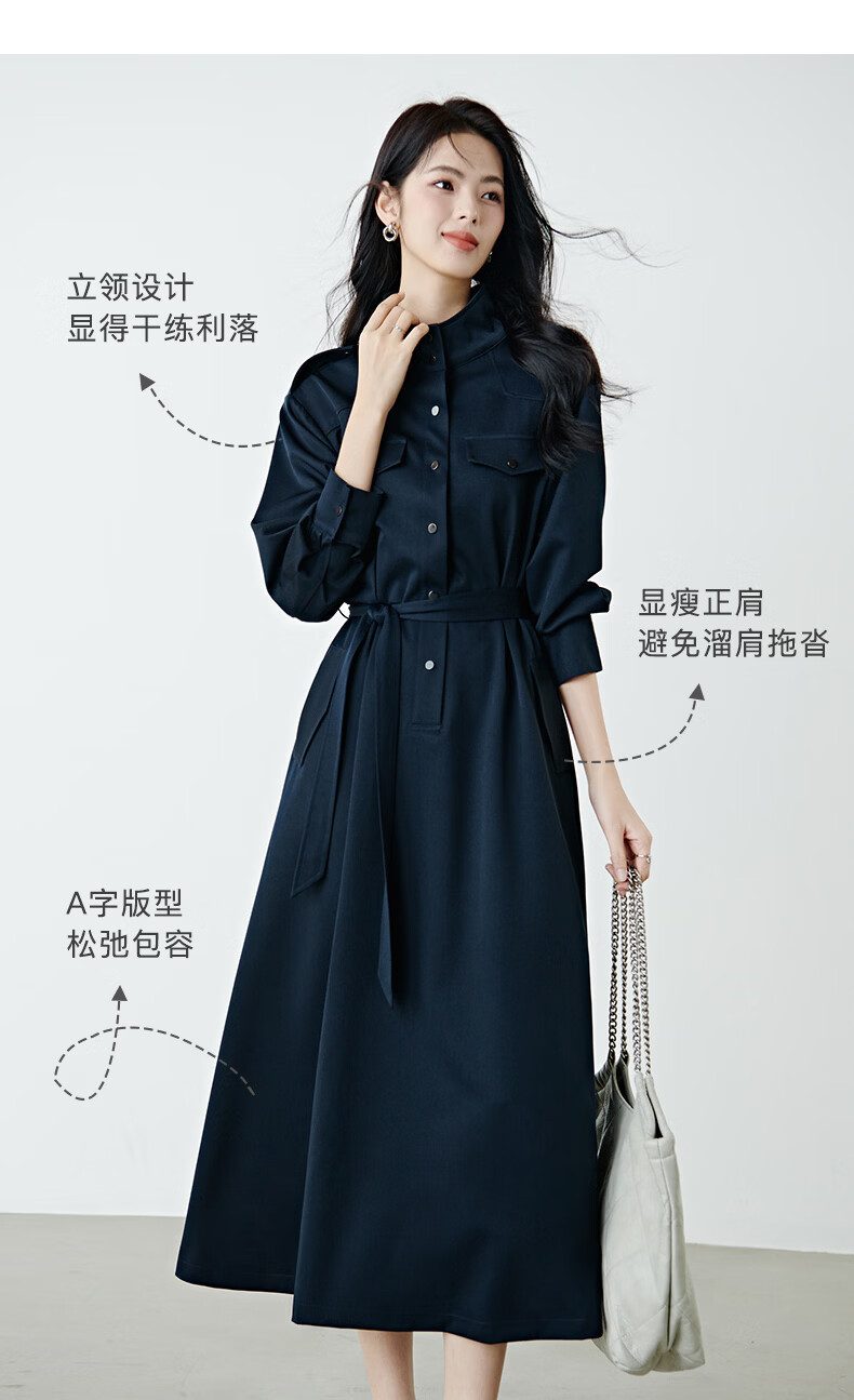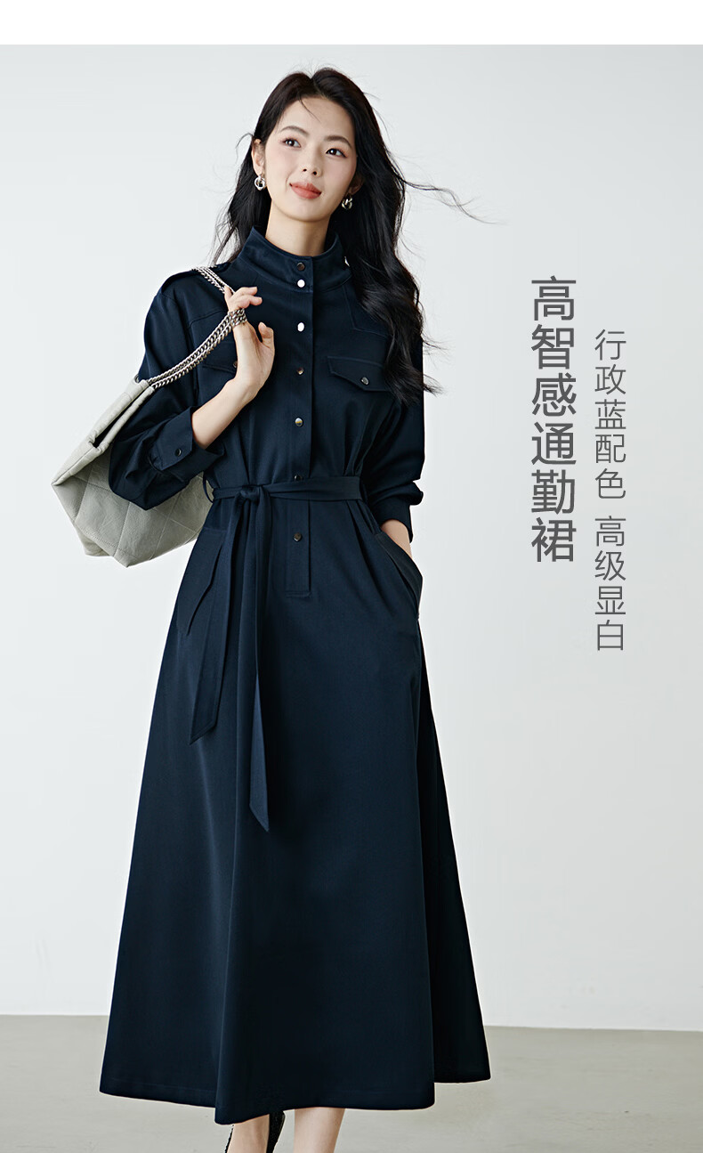 晚白2026春款经典立领港风时髦高级感风衣版裙子系带收腰大码连衣裙 深蓝色 M