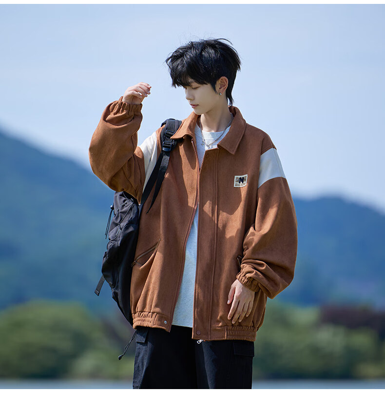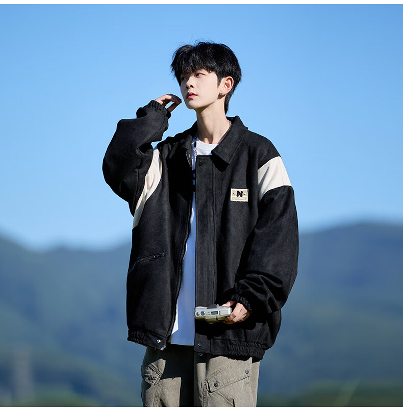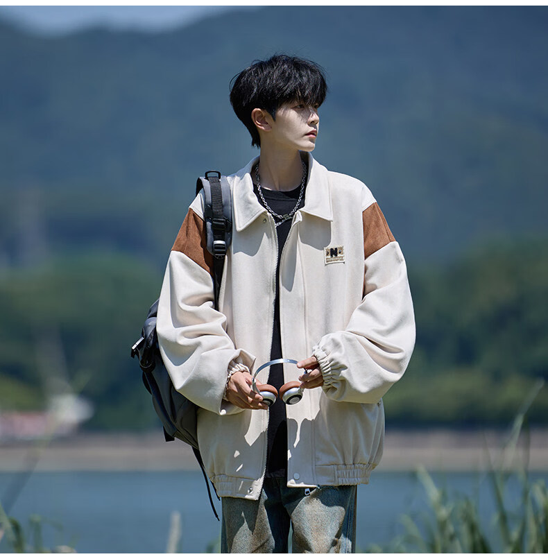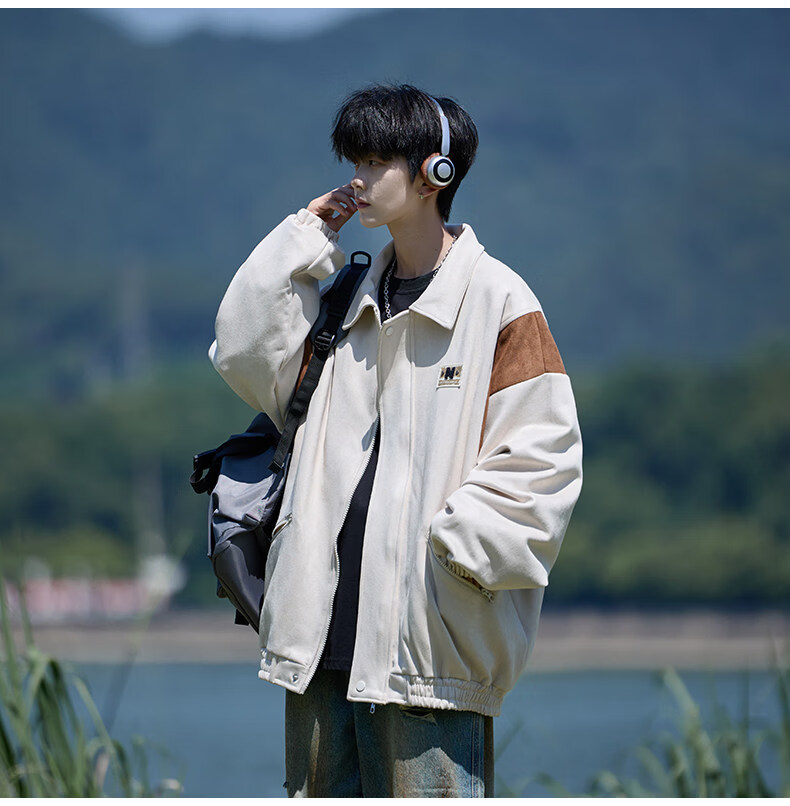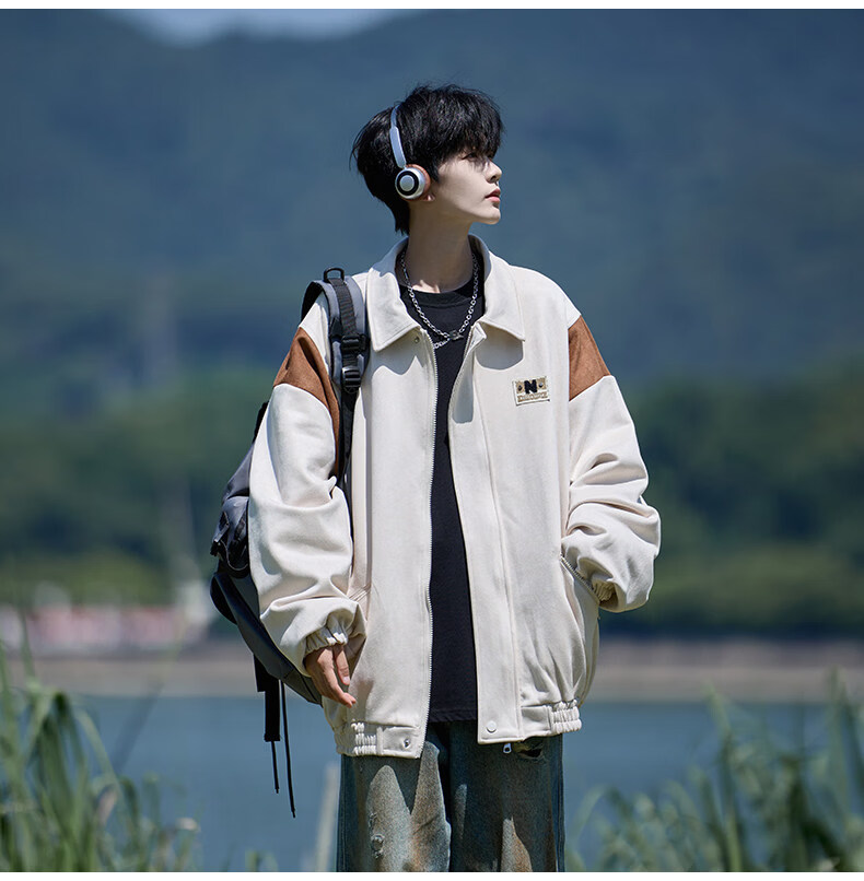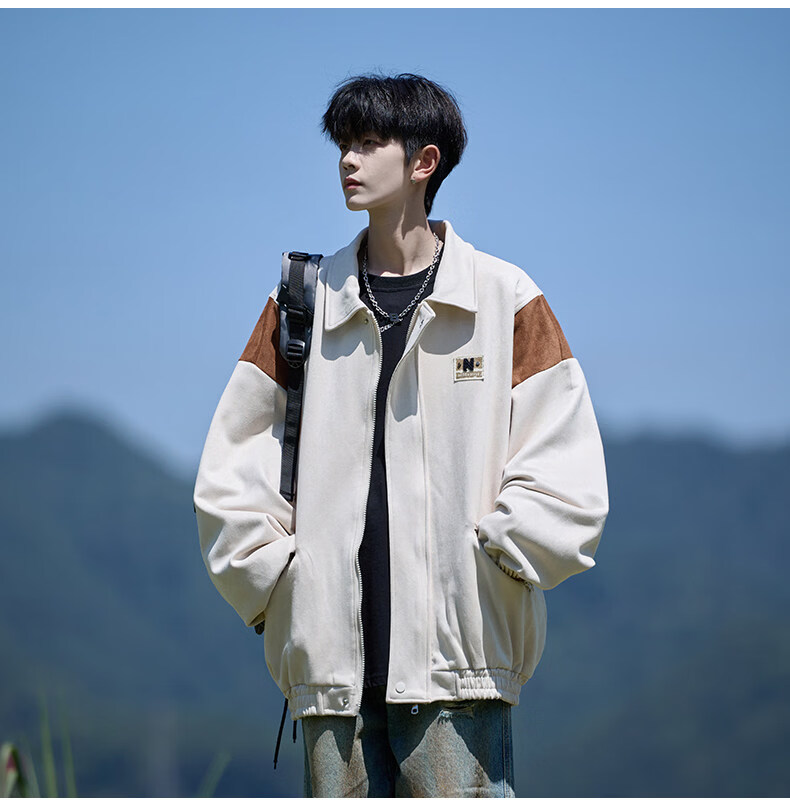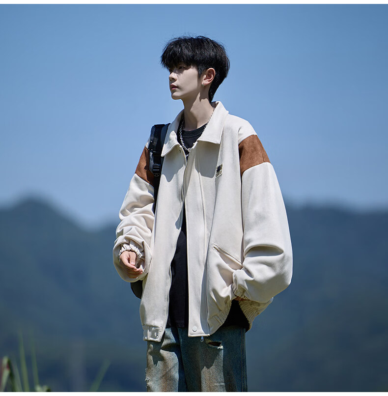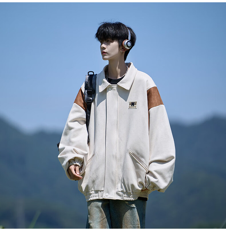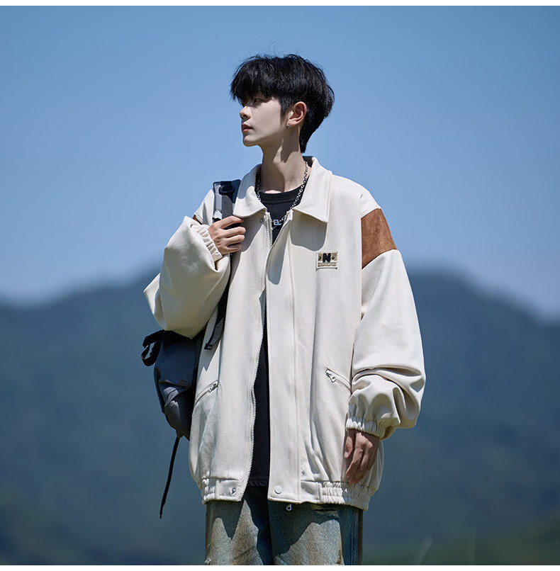NEW OR MODE美式撞色棒球服外套男春季新款潮流宽松大码飞行员夹克休闲上衣服 米色【高品质】 M 【建议90-110斤】