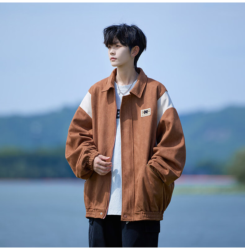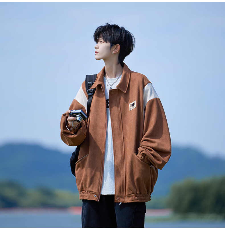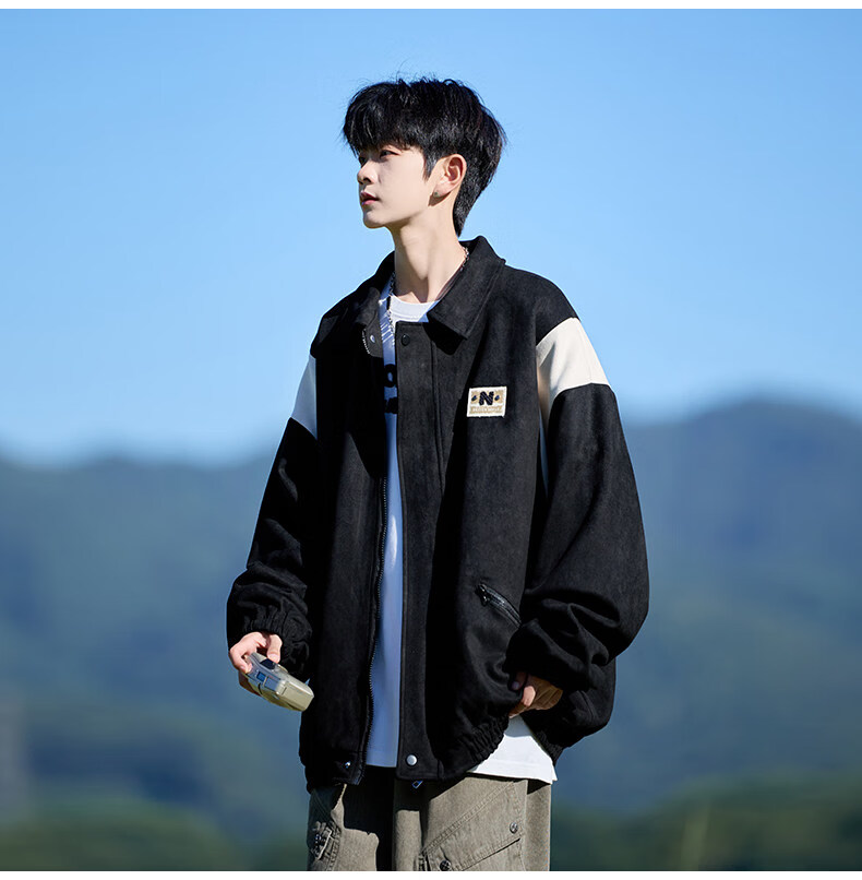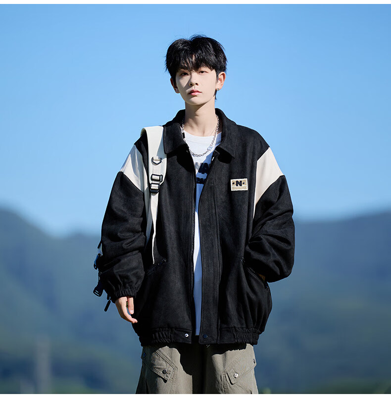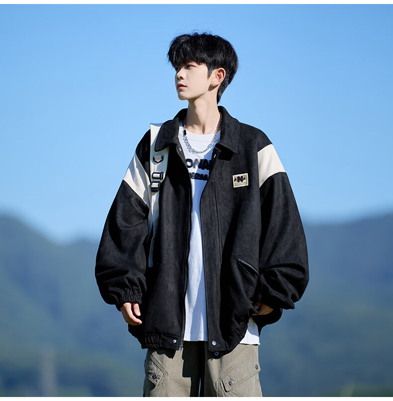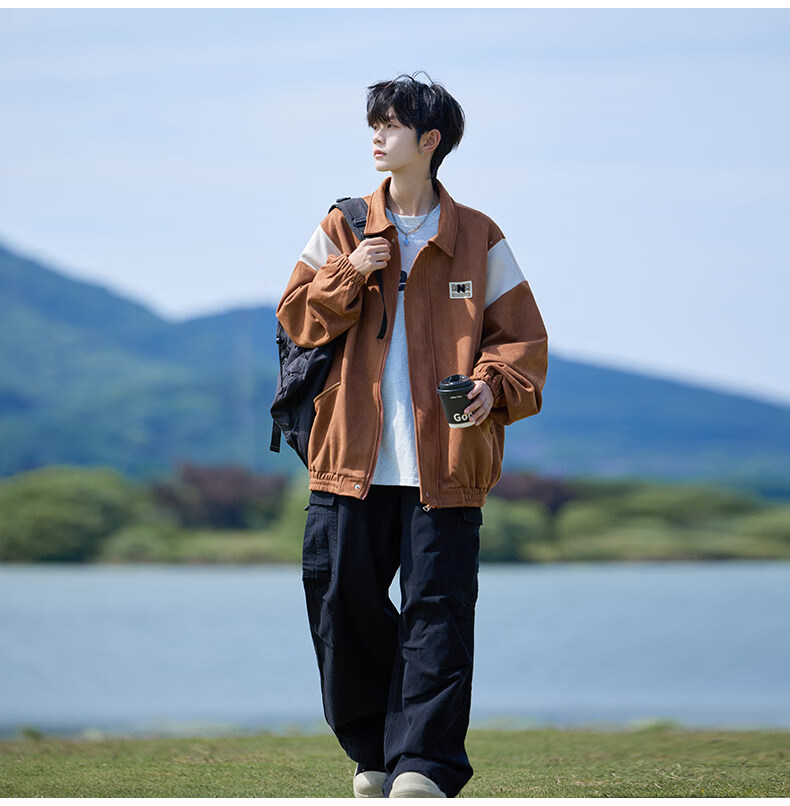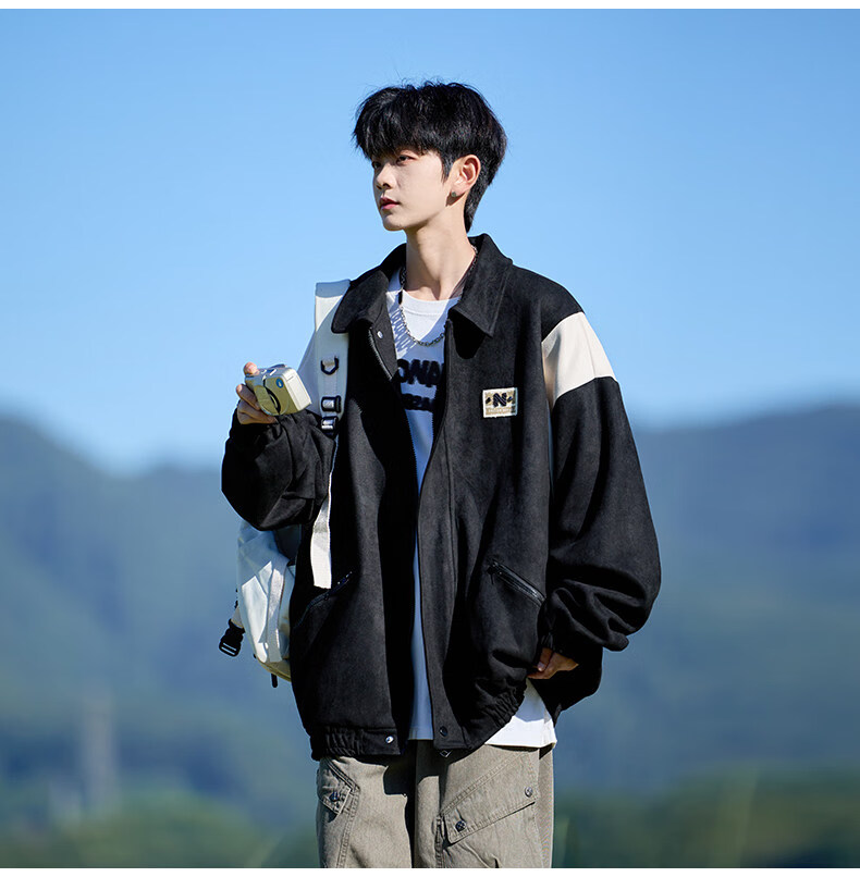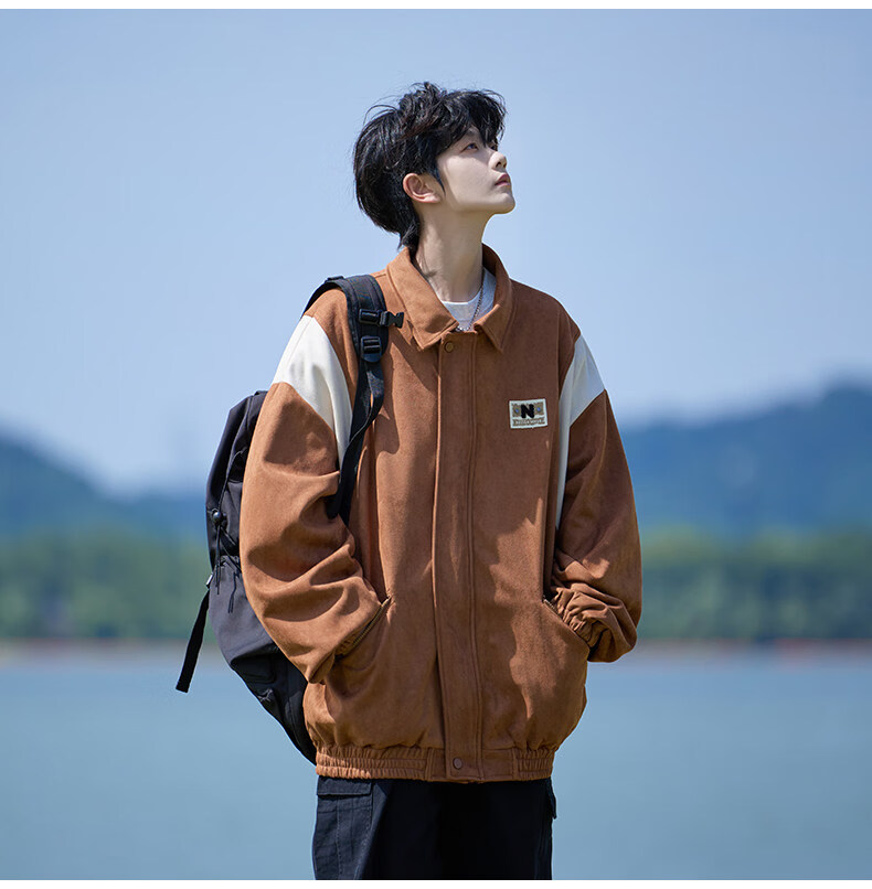 NEW OR MODE美式撞色棒球服外套男春季新款潮流宽松大码飞行员夹克休闲上衣服 米色【高品质】 M 【建议90-110斤】