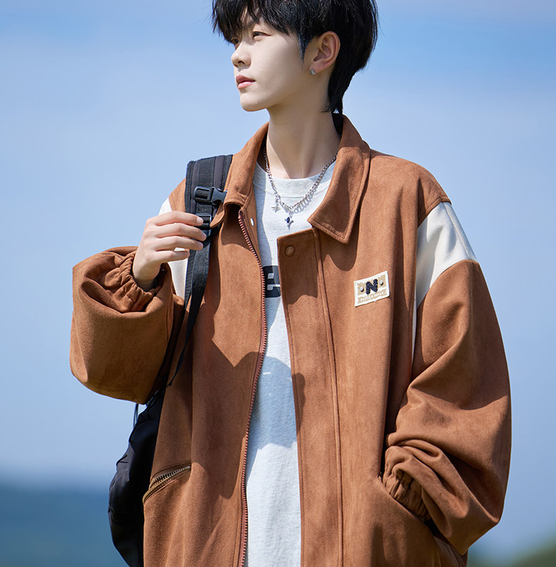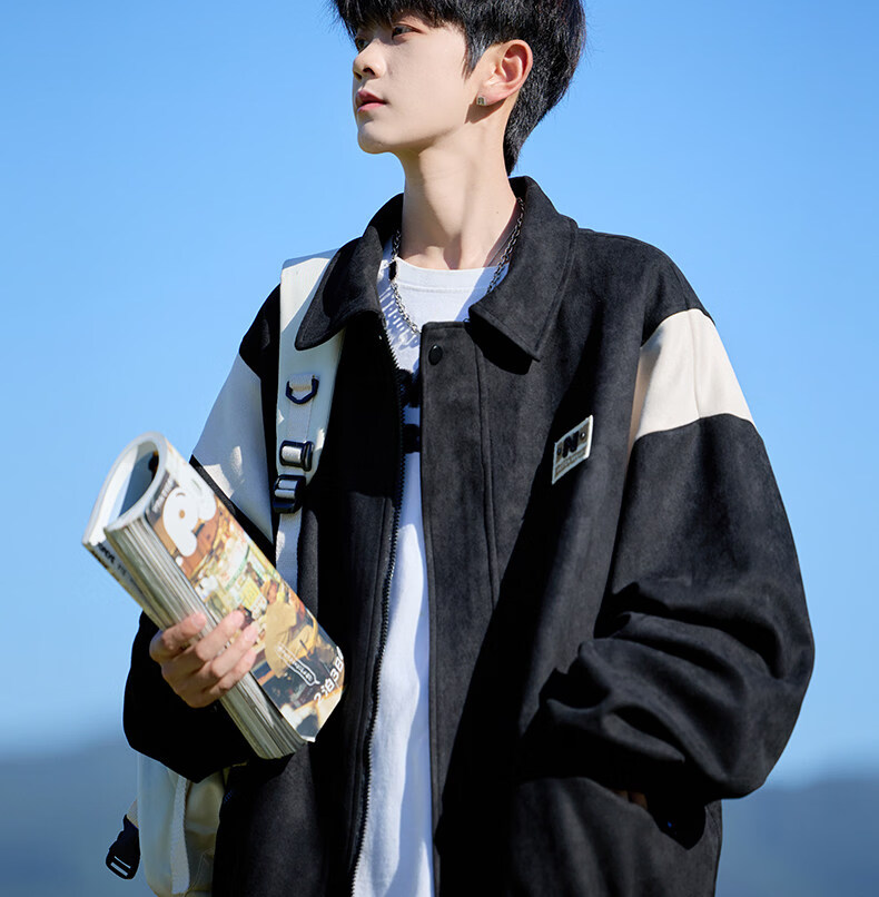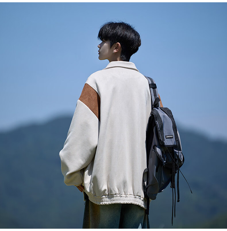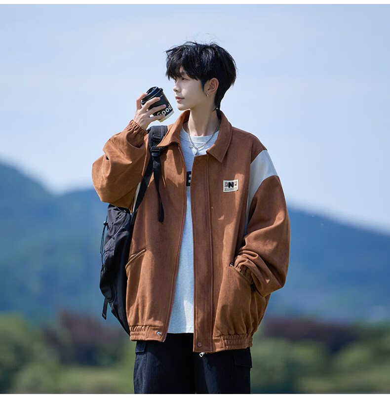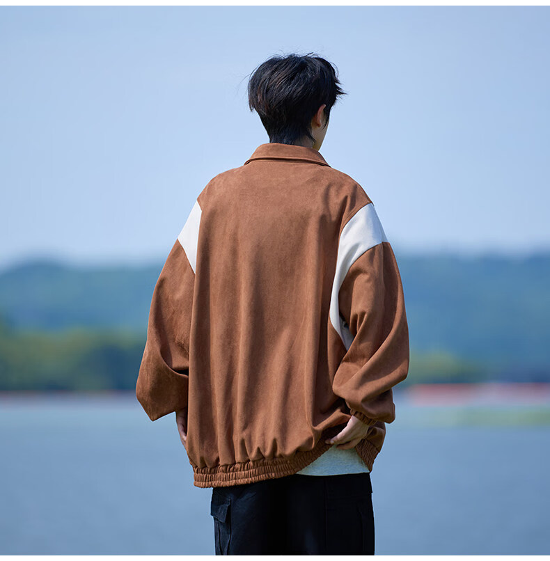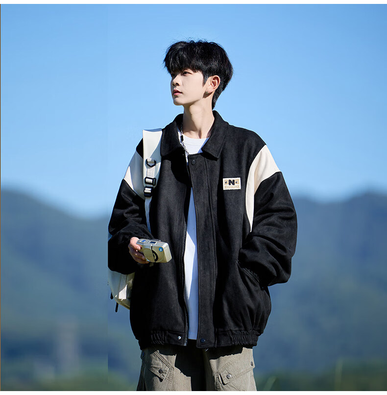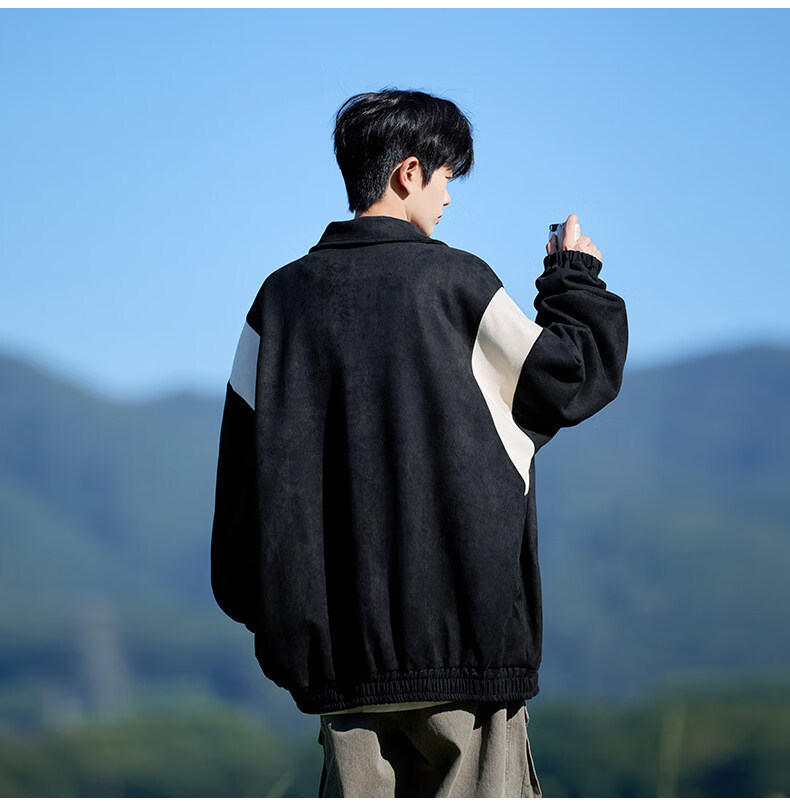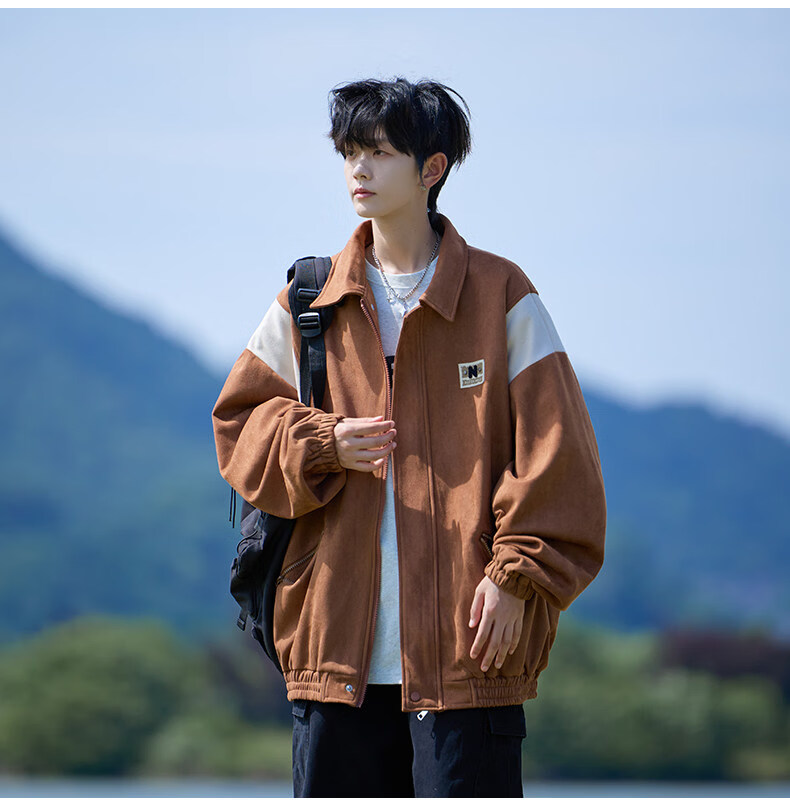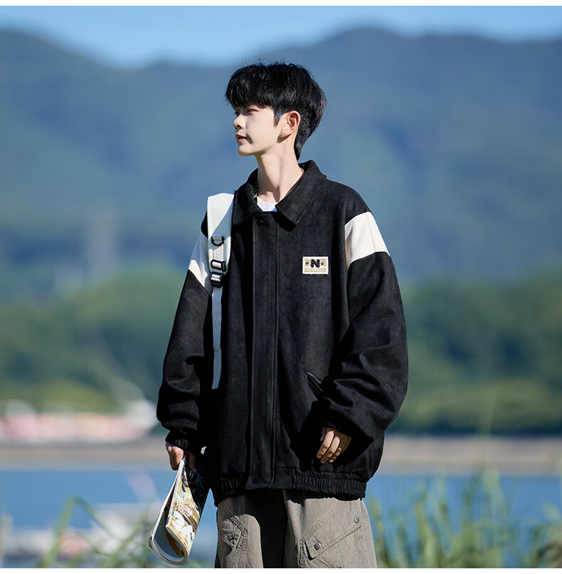 NEW OR MODE美式撞色棒球服外套男春季新款潮流宽松大码飞行员夹克休闲上衣服 米色【高品质】 M 【建议90-110斤】