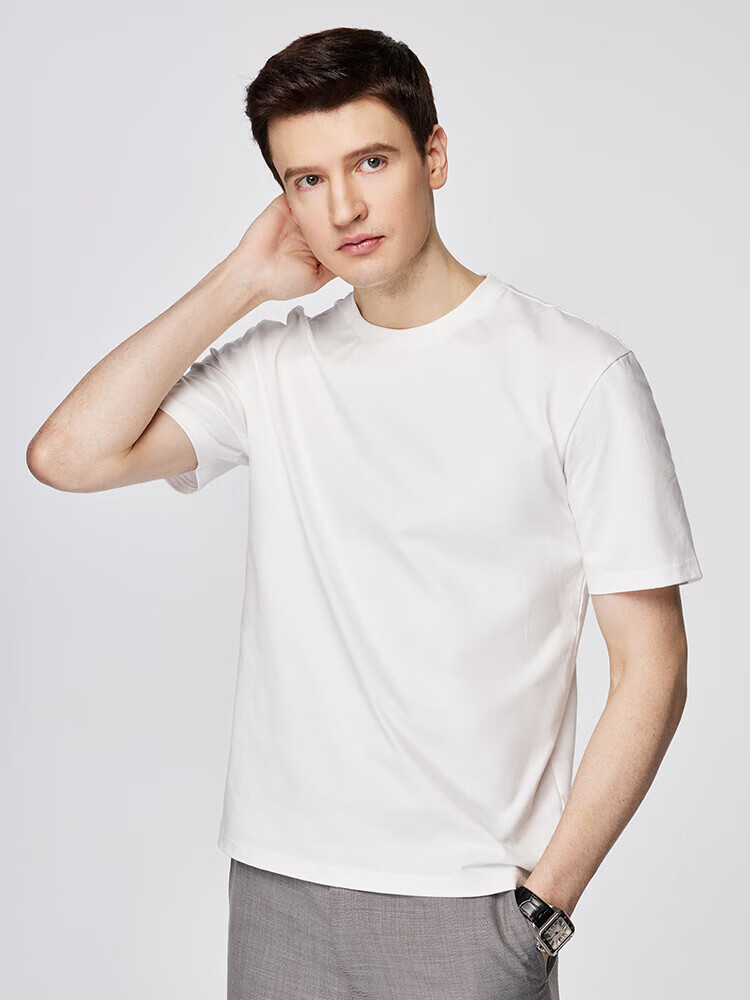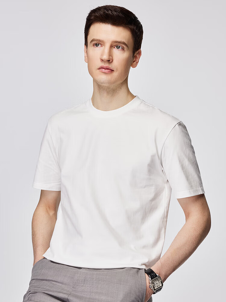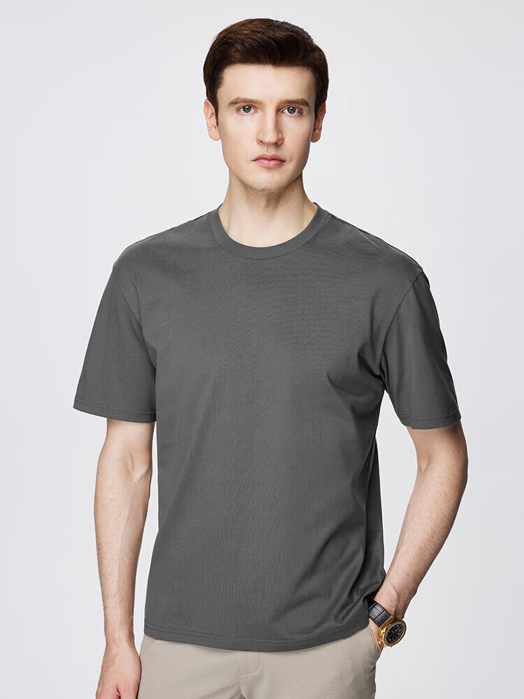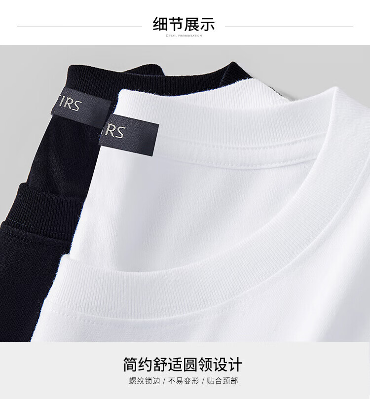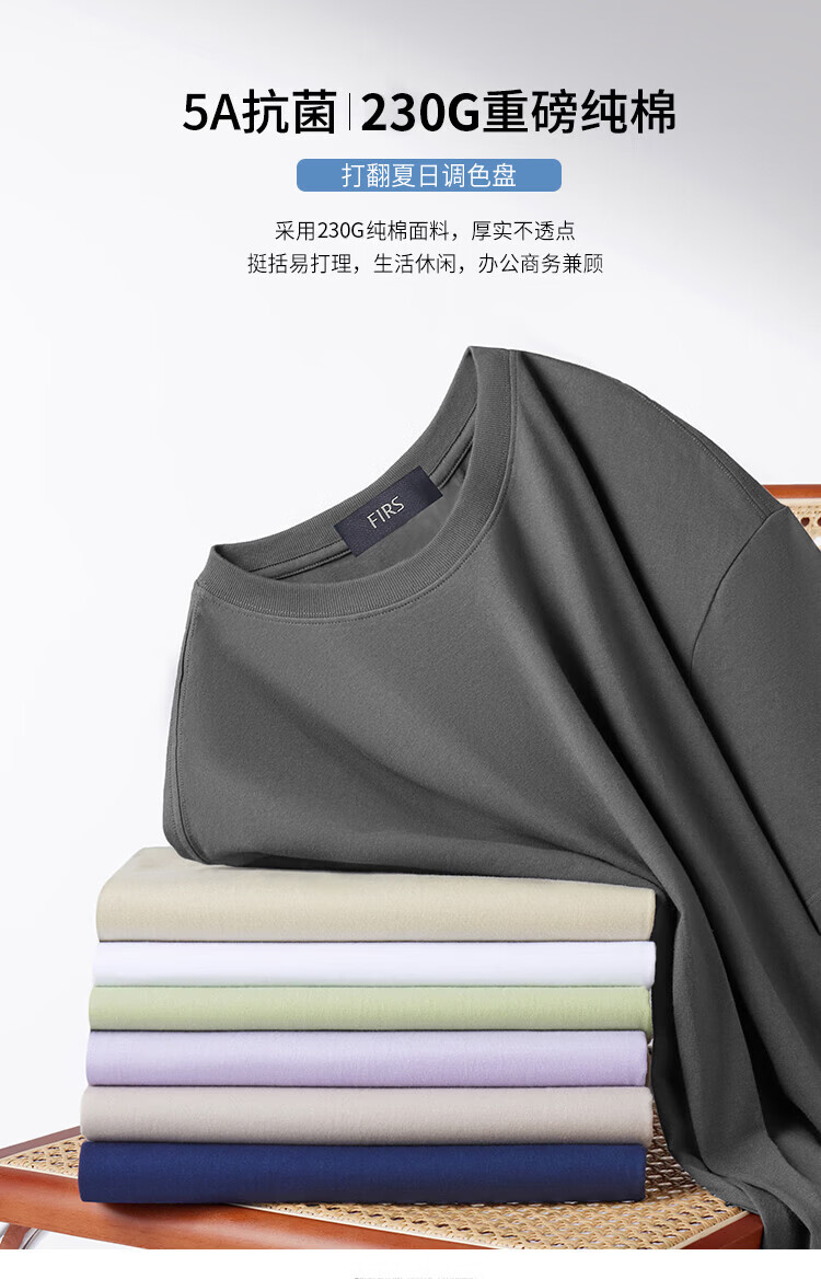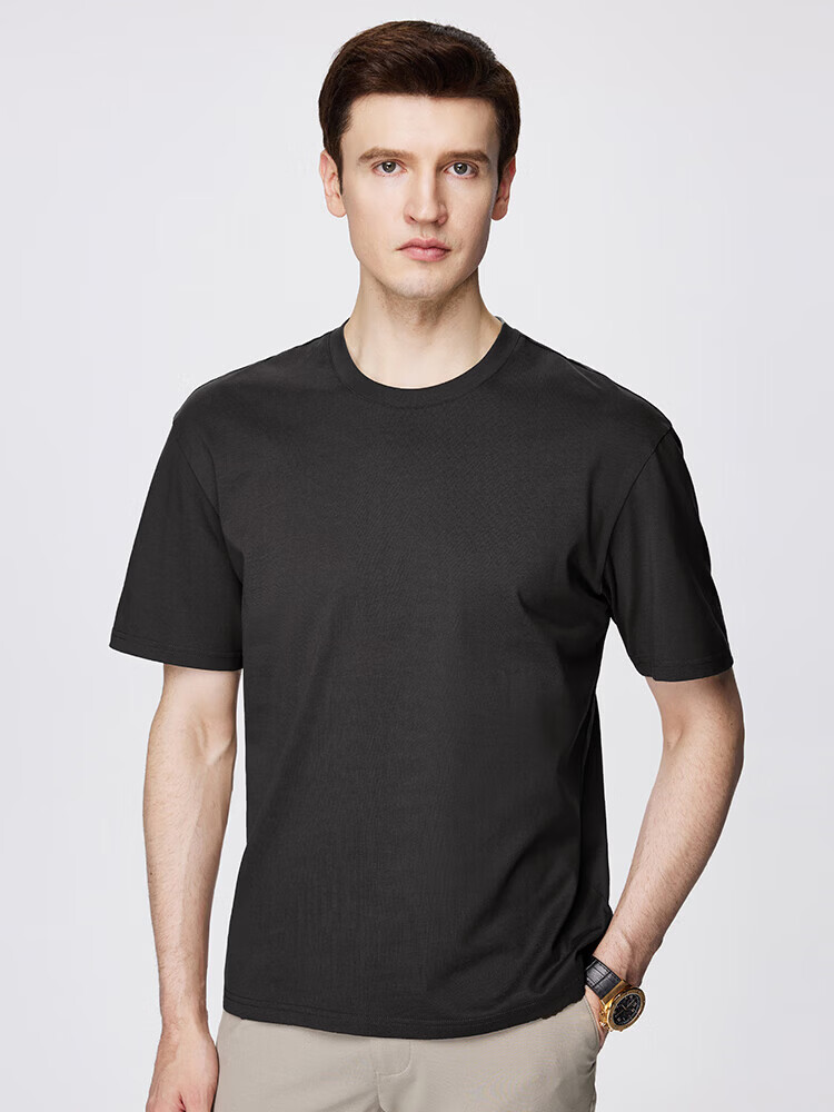 杉杉(FIRS)T恤男夏季新款休闲透气纯衣服男装潮流抗菌纯色小白T短袖男 黑色 M 165/84A(M)