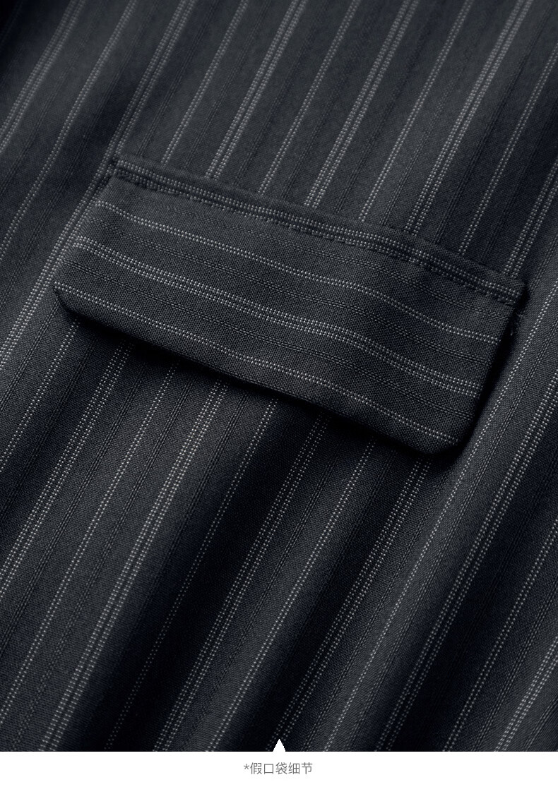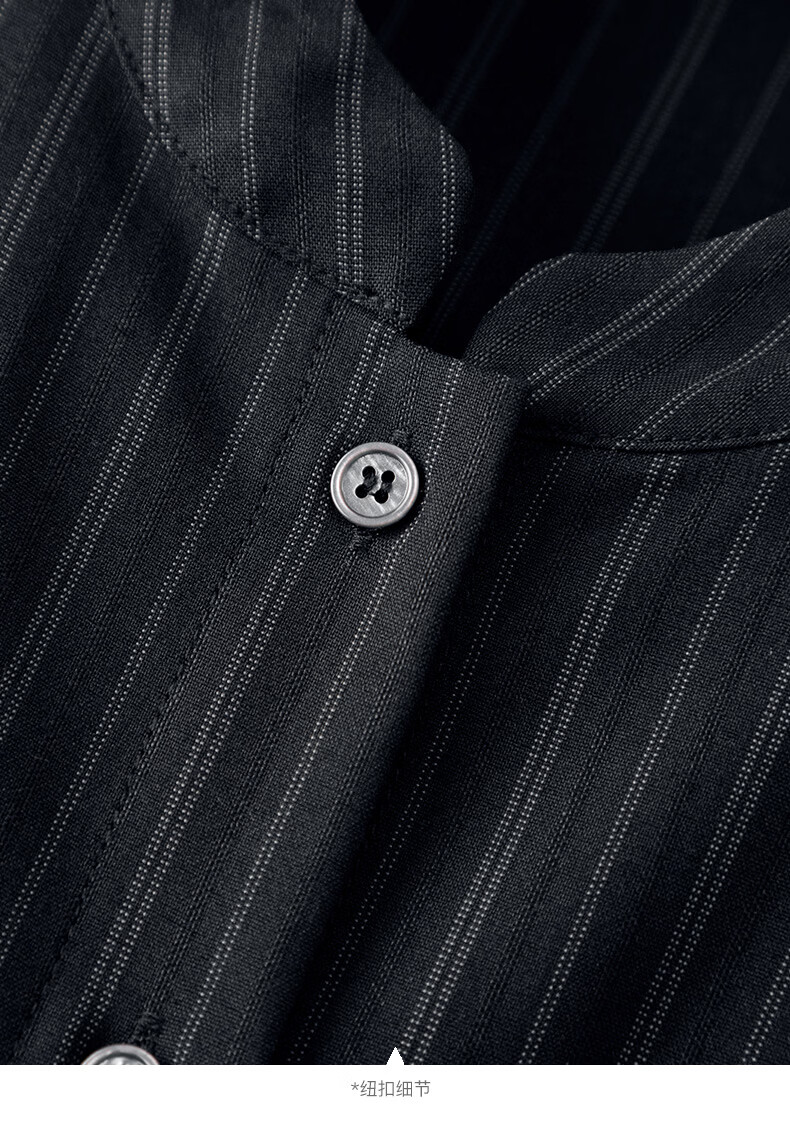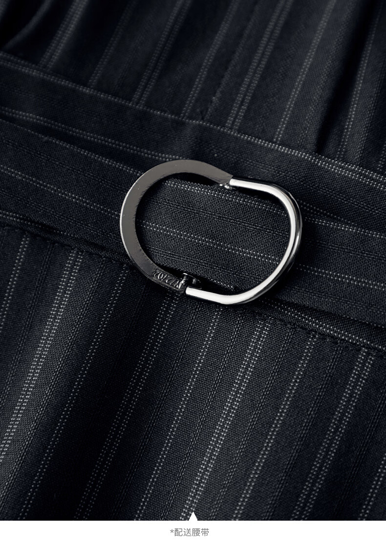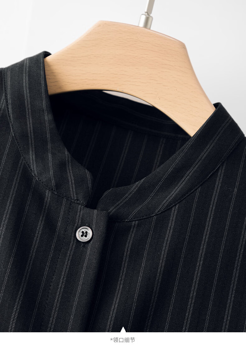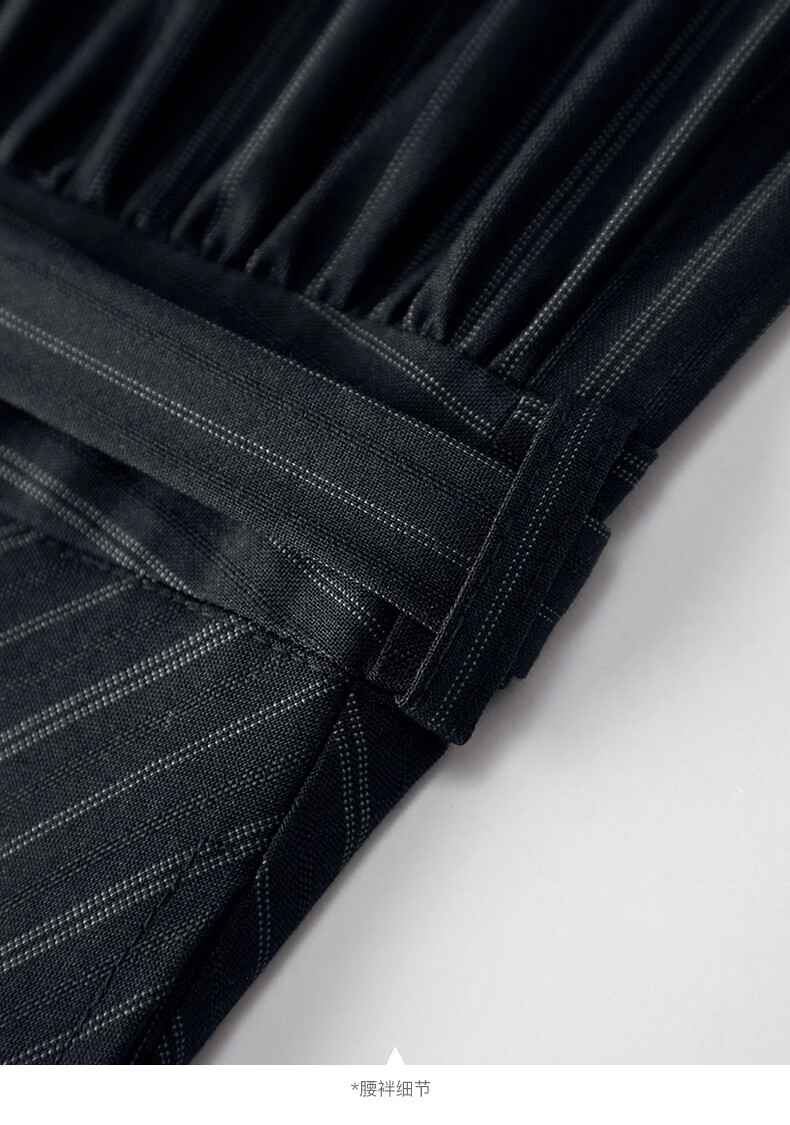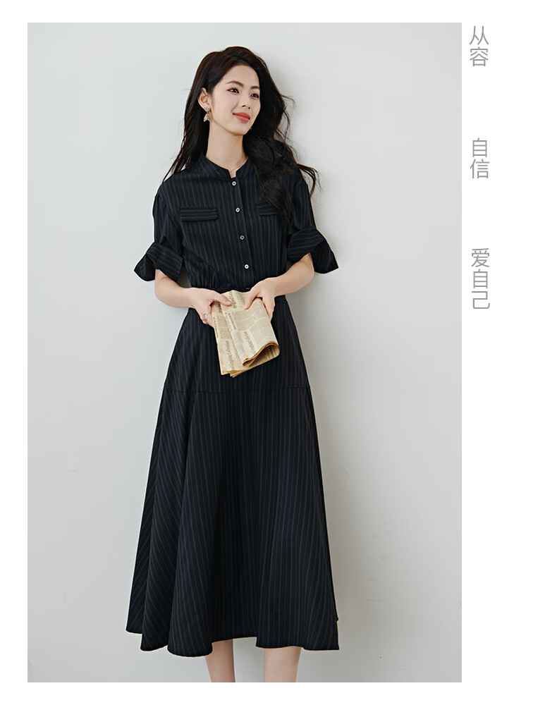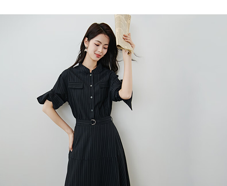 晚白2026年春款气质行政蓝高智感竖条纹衬衫裙系带收腰显瘦通勤连衣裙 条纹 XL