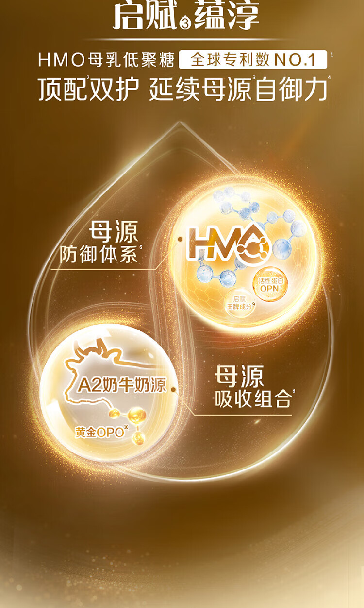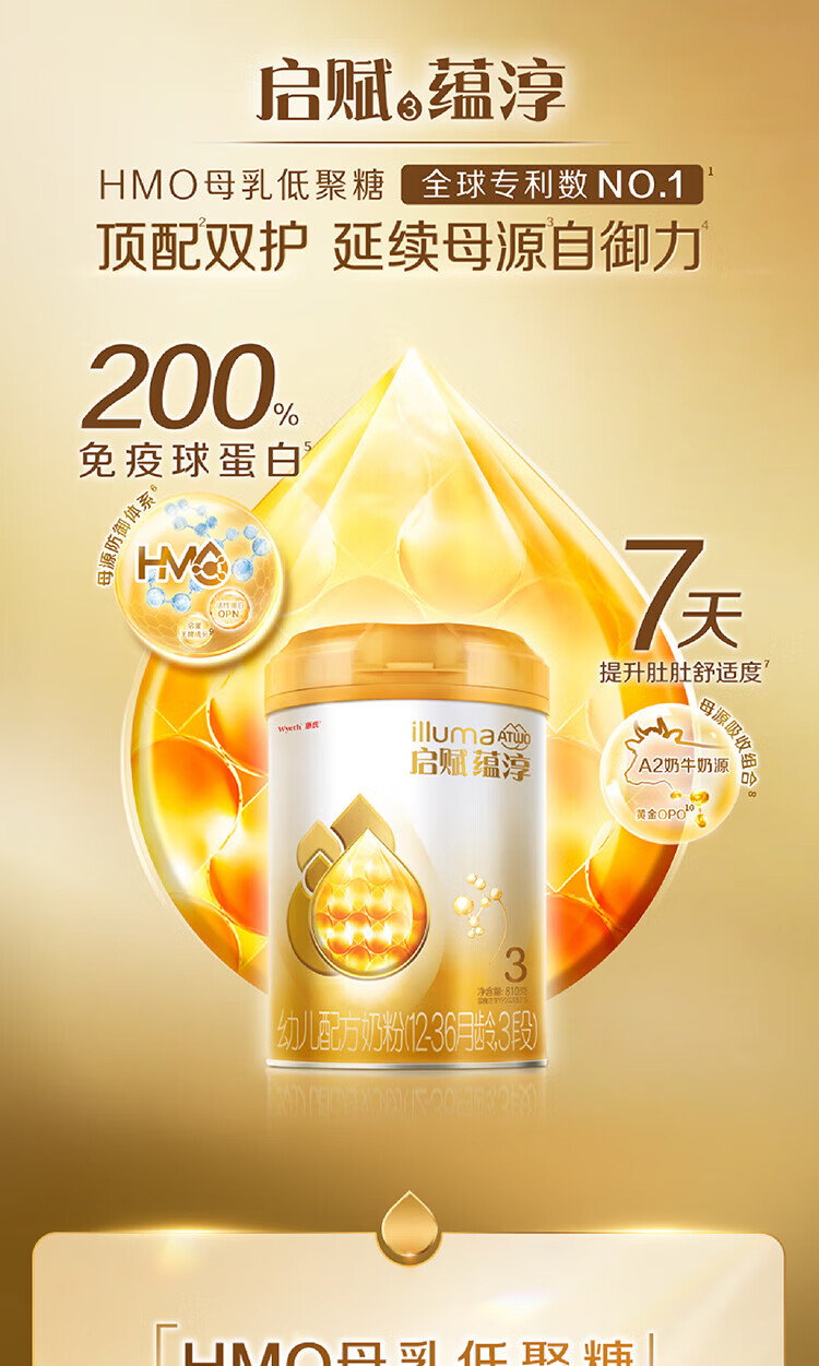 惠氏【官方授权】启赋(Wyeth)HMO进口新国标蕴淳A2幼儿配方奶粉3段 3段810g*6罐