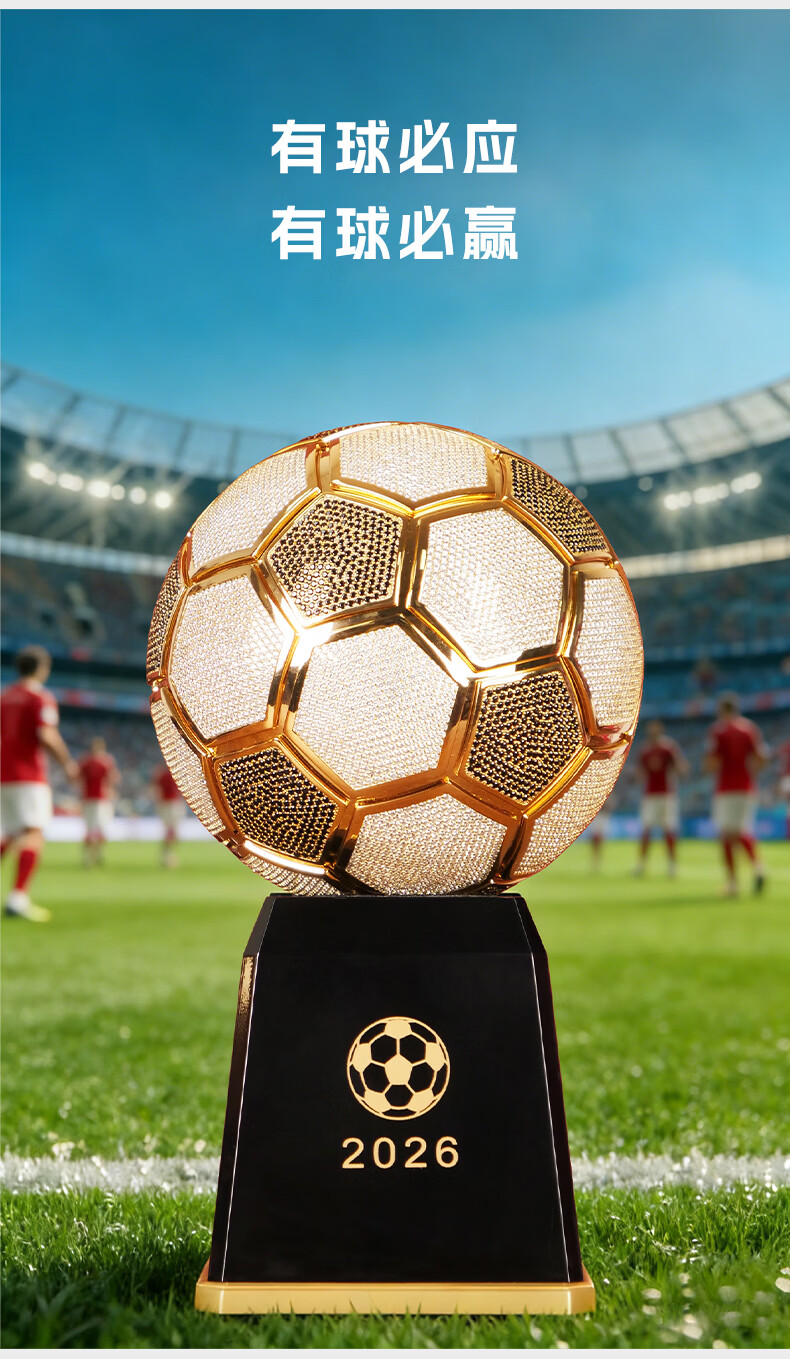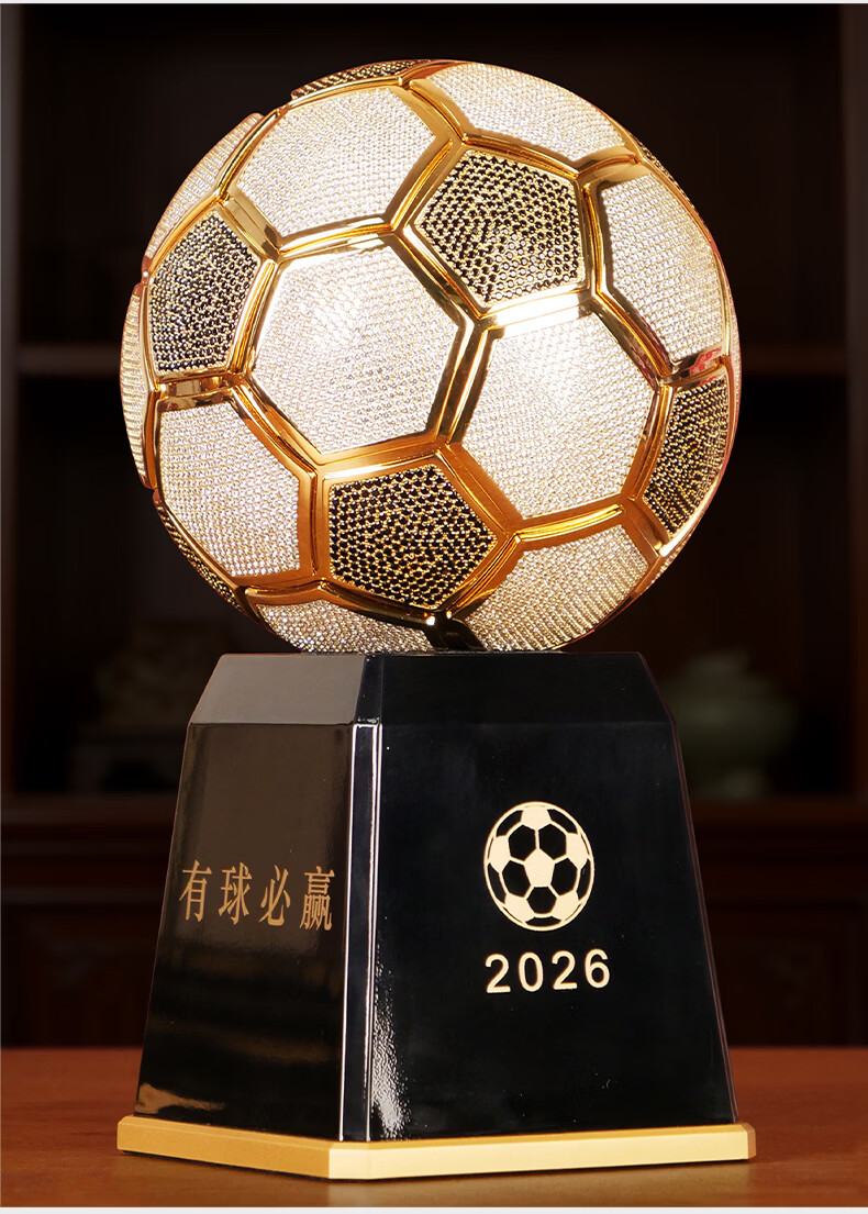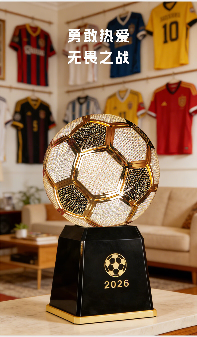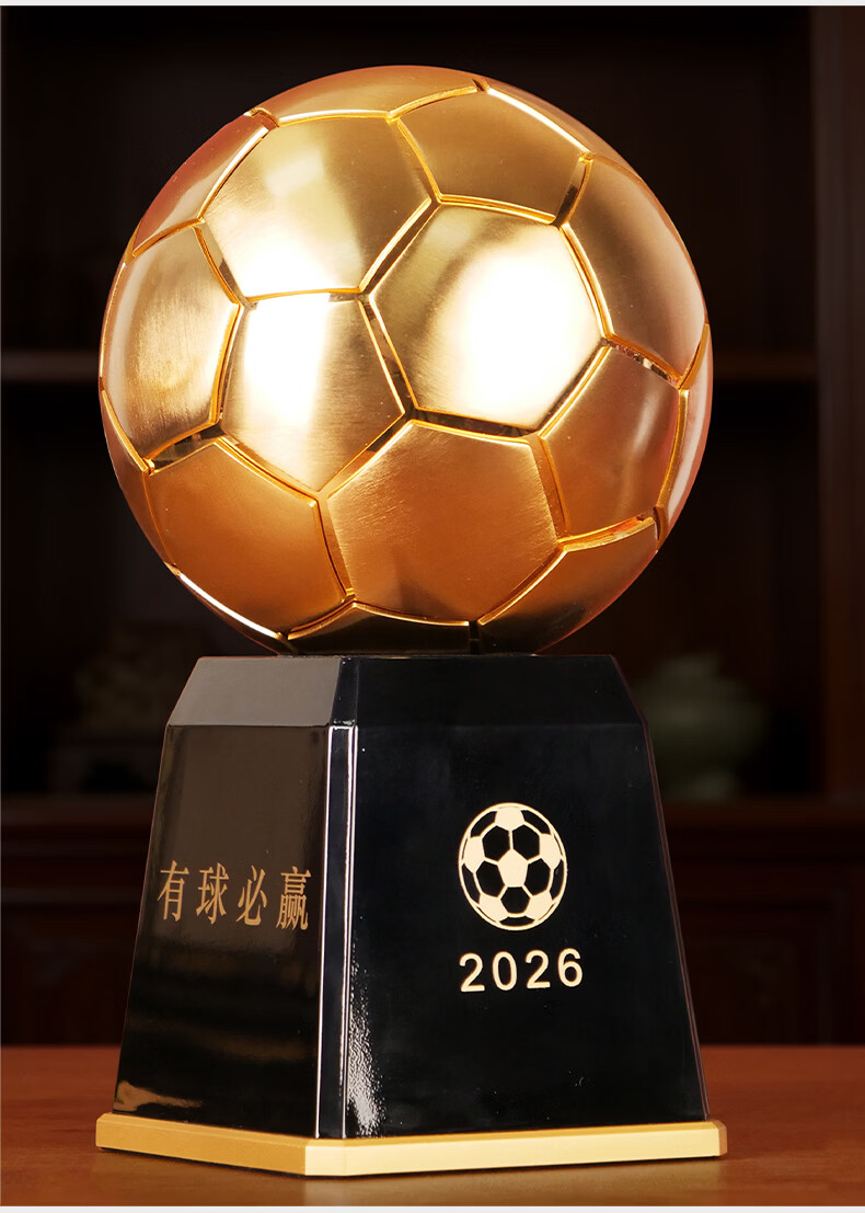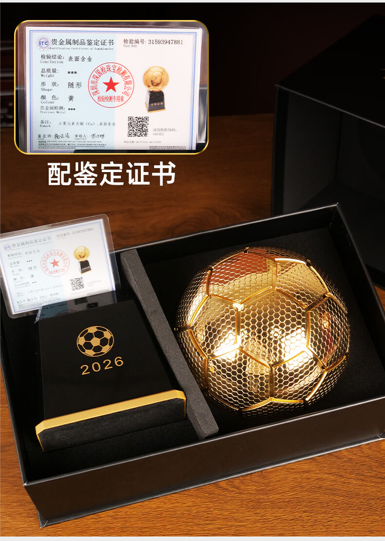 铜老爷2026年世界杯纪念品镀金铜足球有求必应摆件客厅办公室玄关装饰品 晶格款 有求必应【14*14*24cm】表面含金
