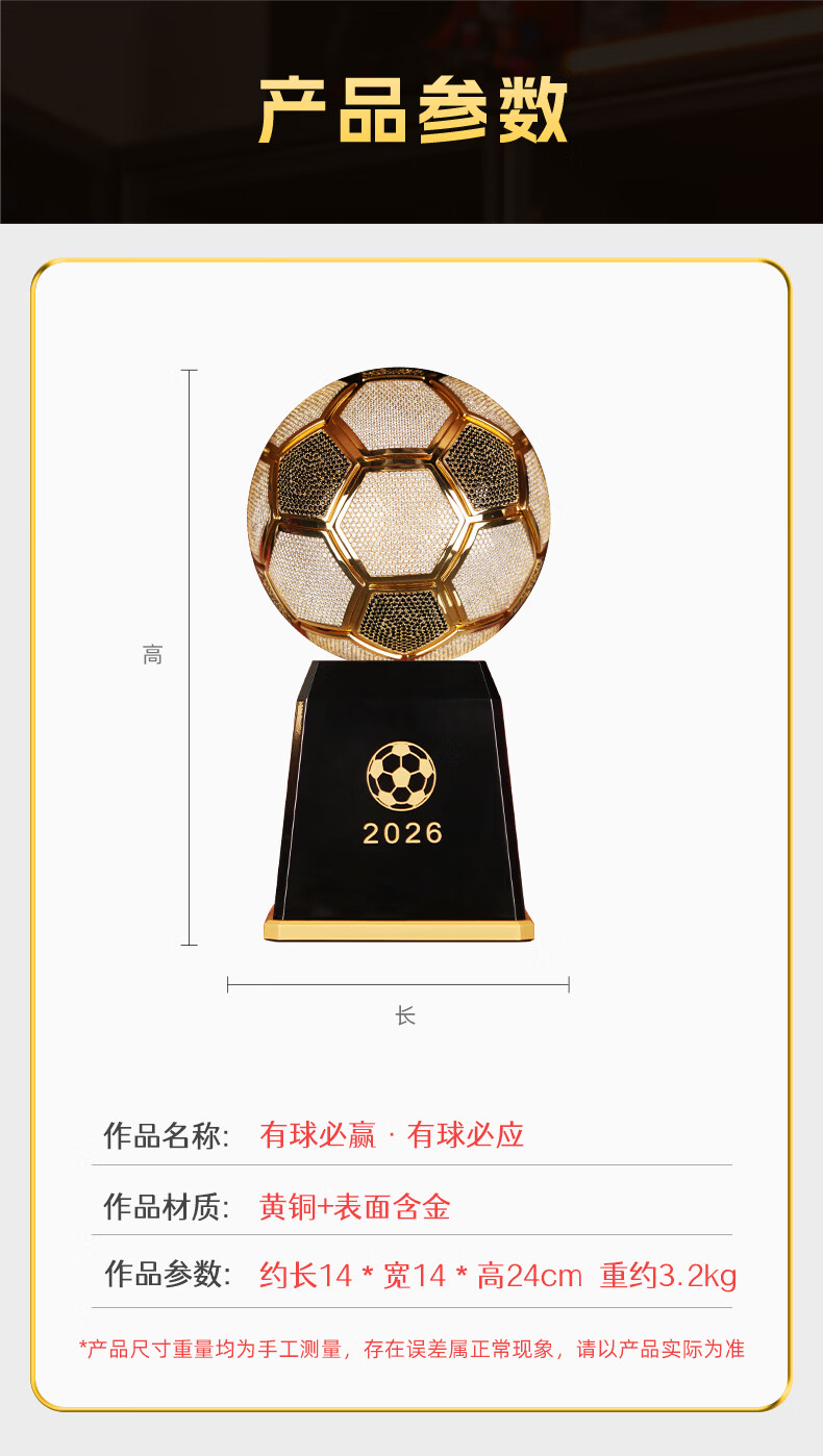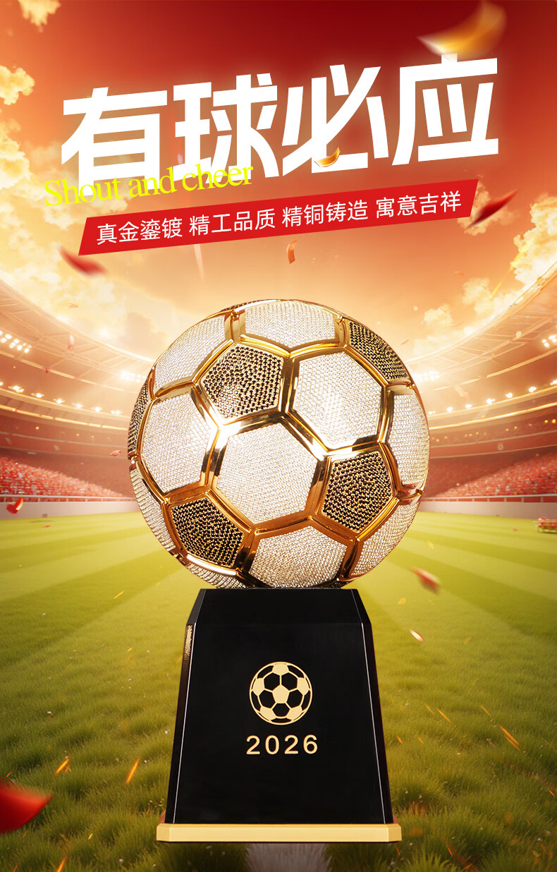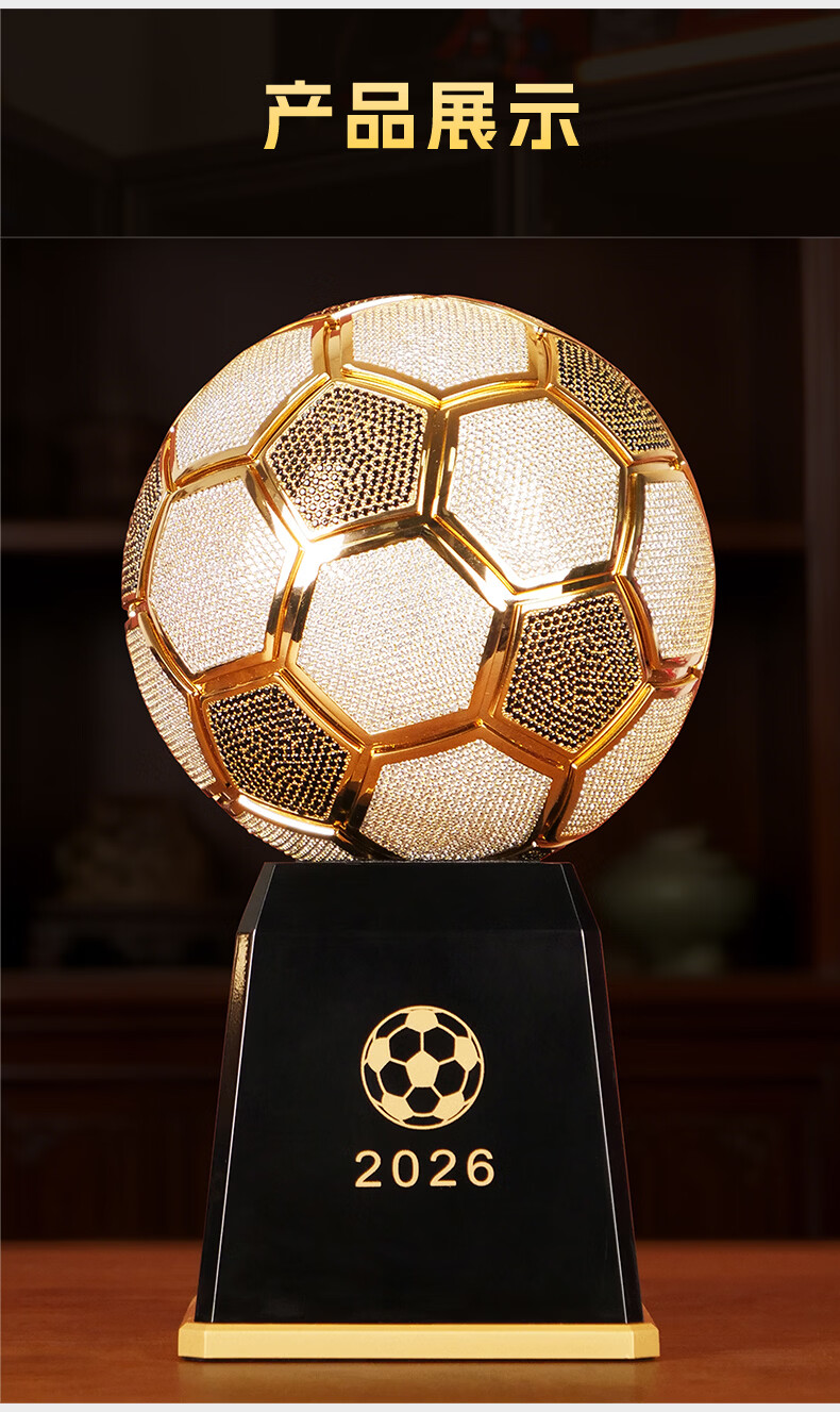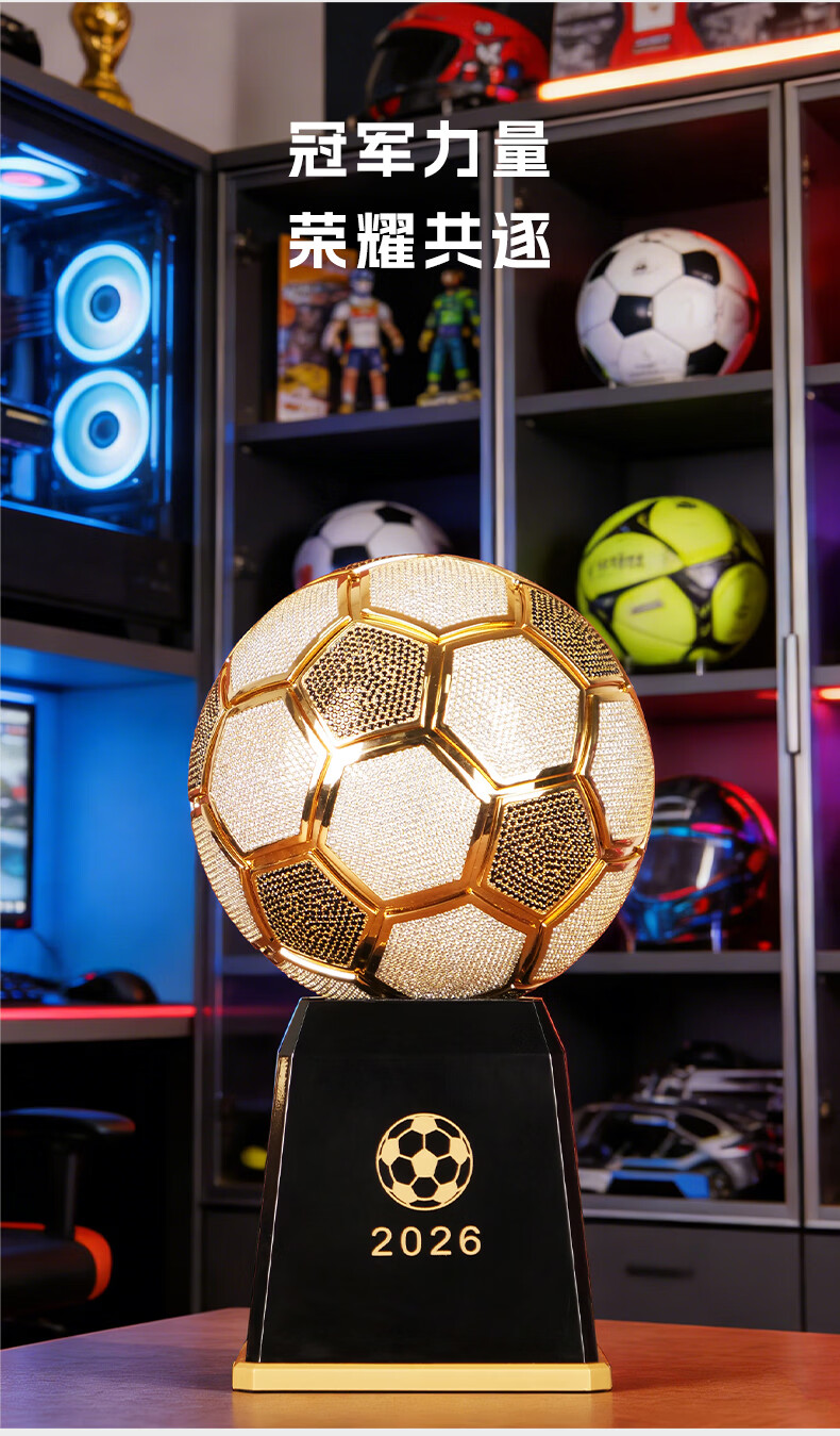 铜老爷2026年世界杯纪念品镀金铜足球有求必应摆件客厅办公室玄关装饰品 晶格款 有求必应【14*14*24cm】表面含金