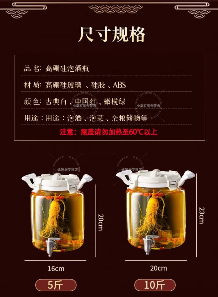 WCZ德国泡酒玻璃瓶家用密封容器20斤青梅药酒罐酒坛子专用酒瓶 密封加厚带陶瓷芯龙头 5斤