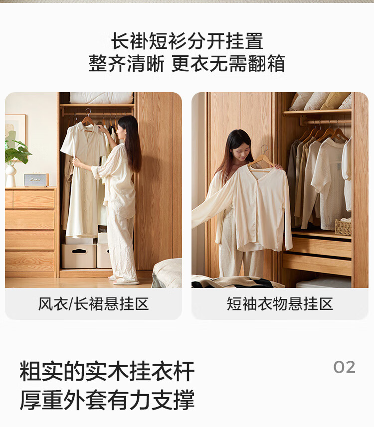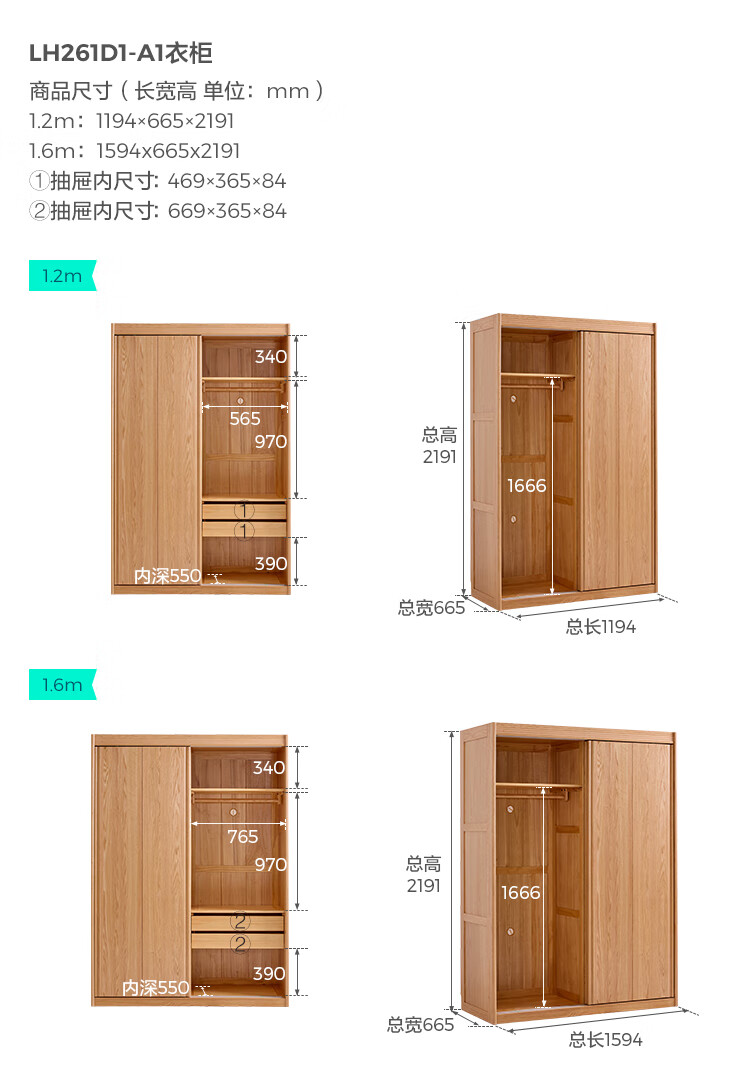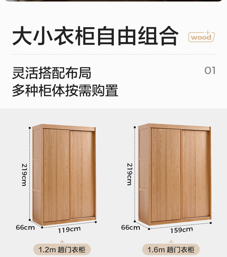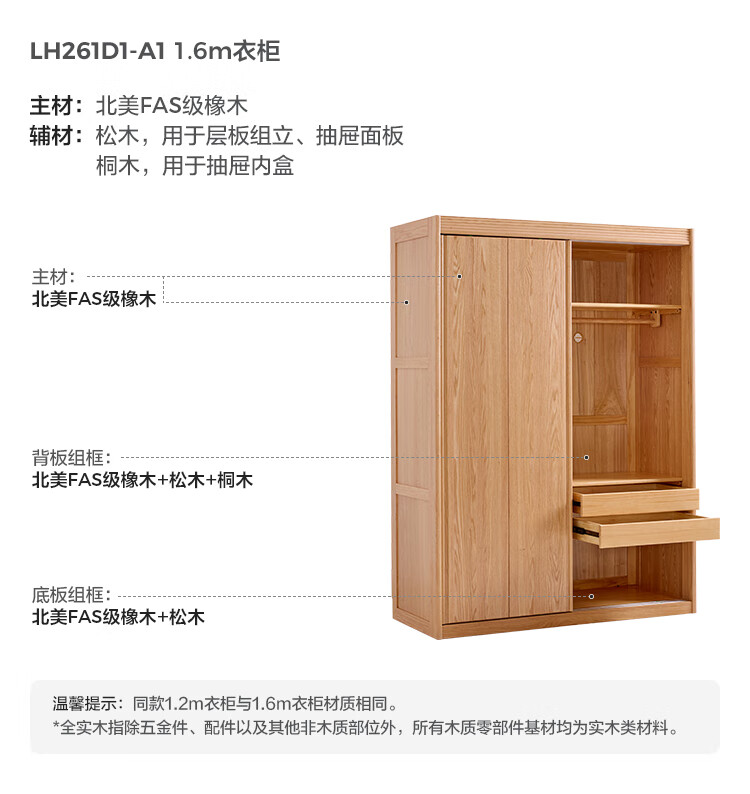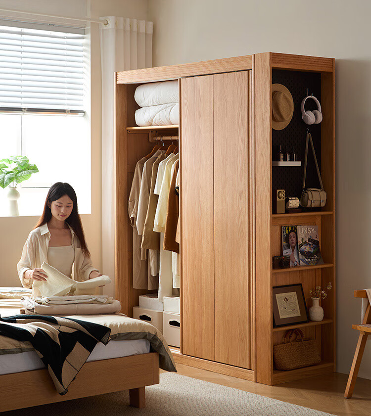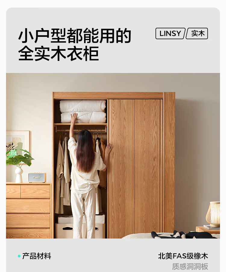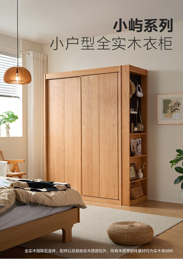 林氏家居全实木衣柜卧室家用小户型2025新款橡木衣橱木业小屿系列LH261D1 【原木色】1.2m衣柜
