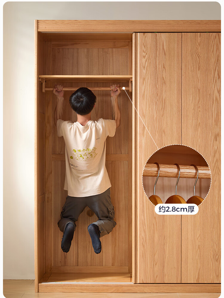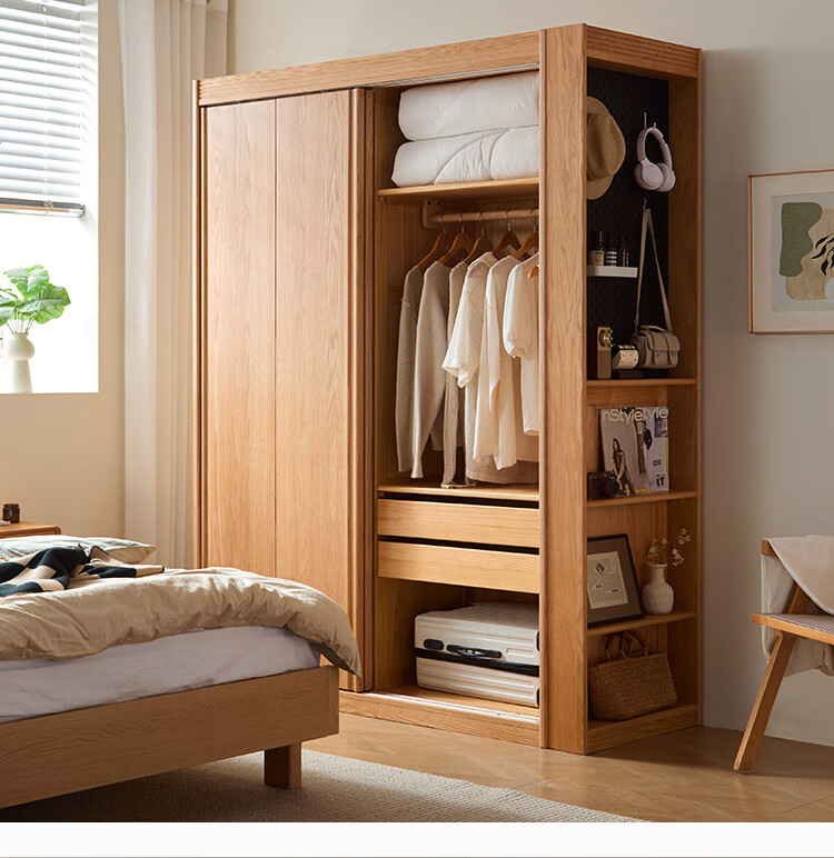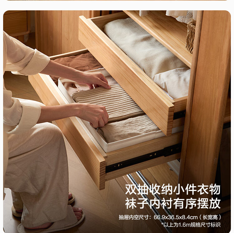 林氏家居全实木衣柜卧室家用推拉门原木风两门衣柜衣橱收纳柜小满系列PK4D 【全实木|1.2m胡桃色】衣柜带抽屉款