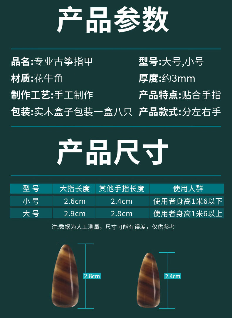 曼尔乐器古筝指甲玳瑁色考级专用古筝甲片 成人儿童遥指指甲 古筝配件大号