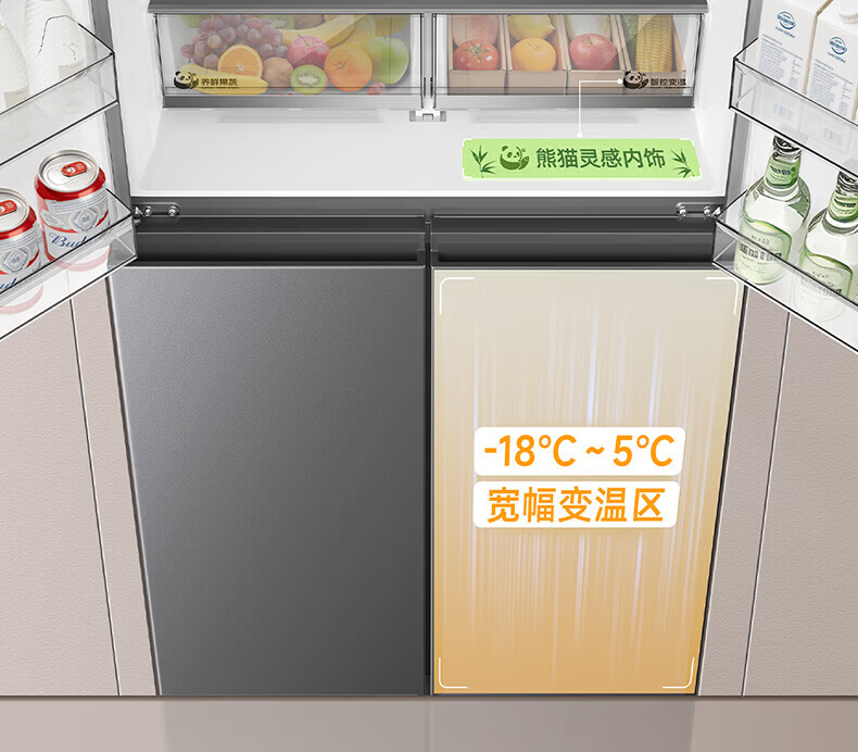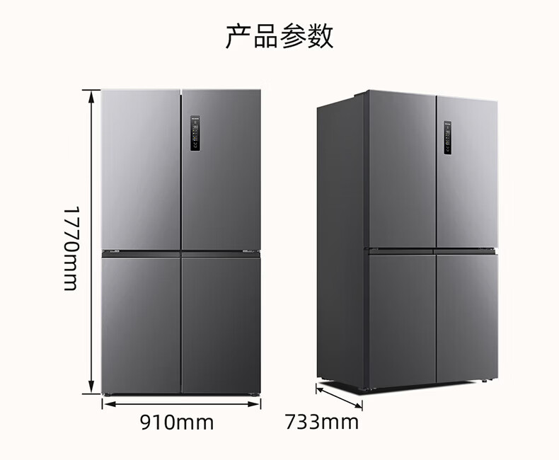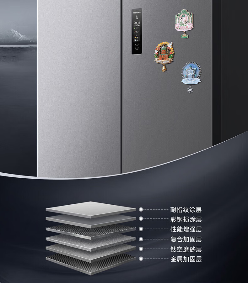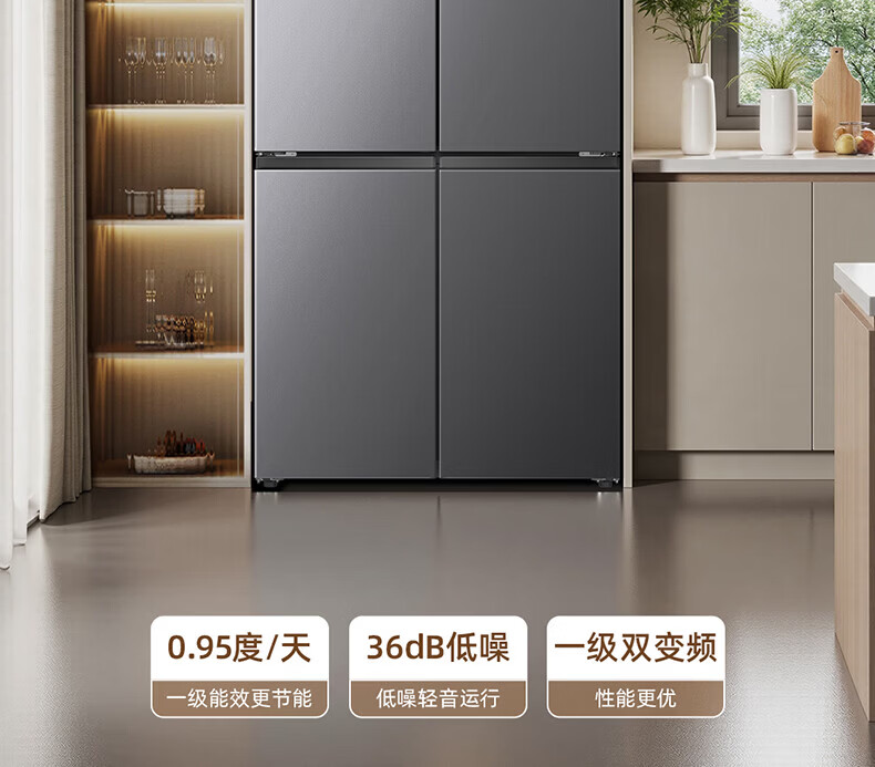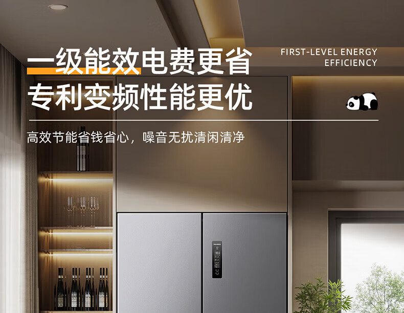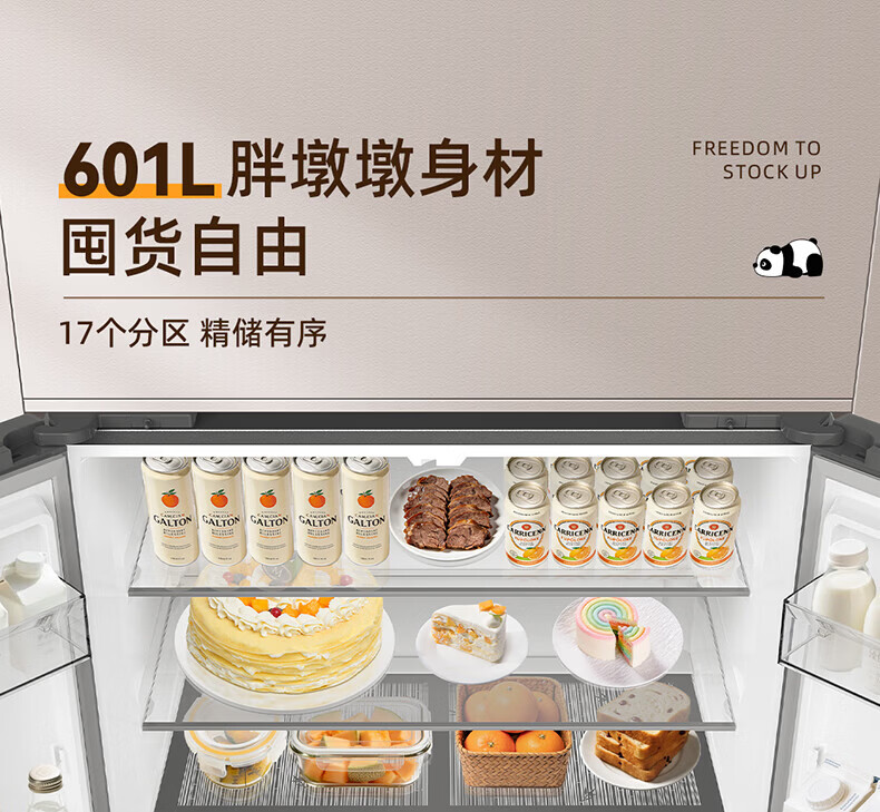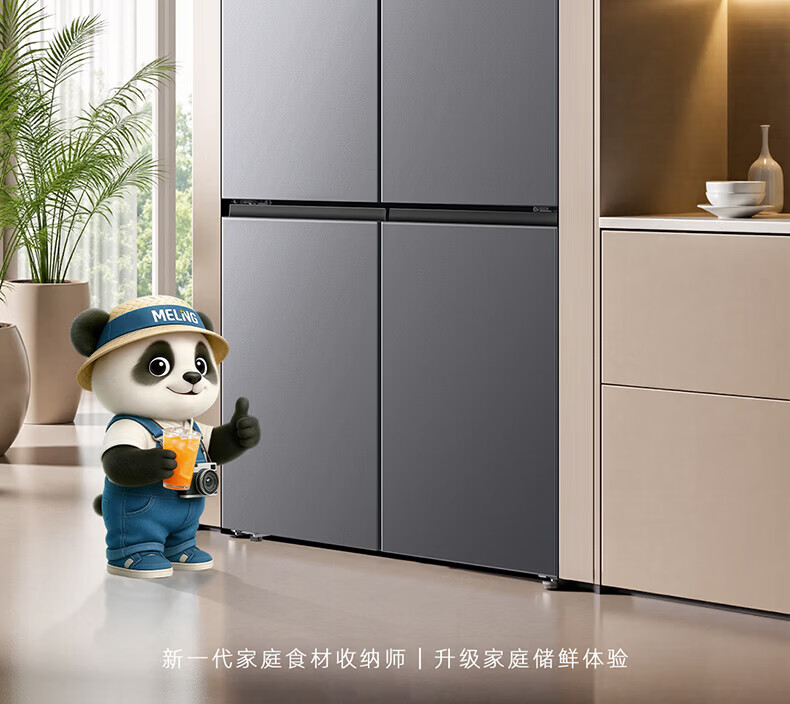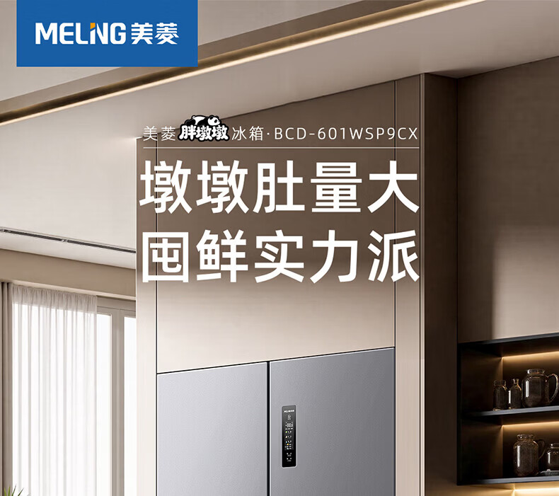 美菱胖墩墩601L十字门冰箱净味抗菌双变频超大容量一级能效家用节能风冷无霜