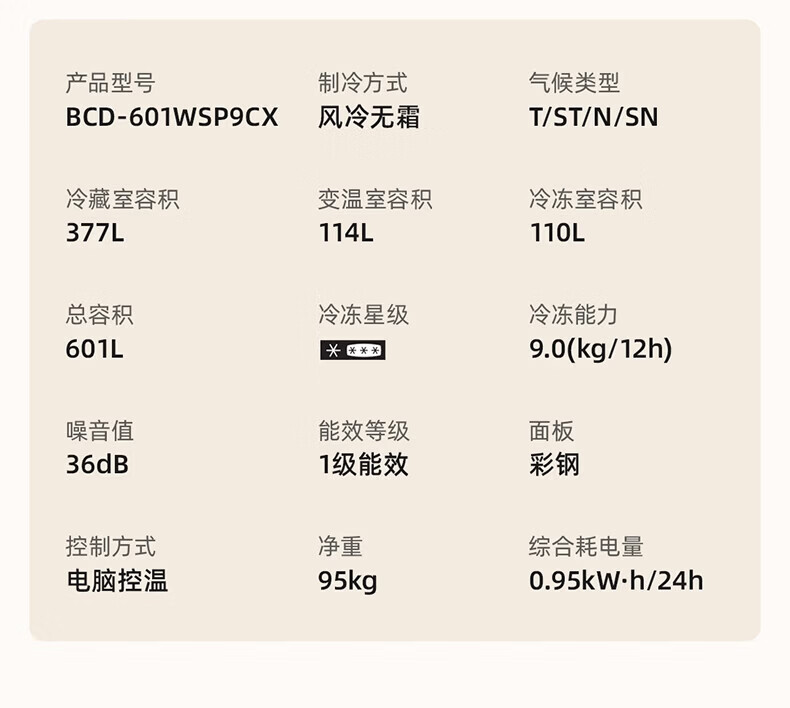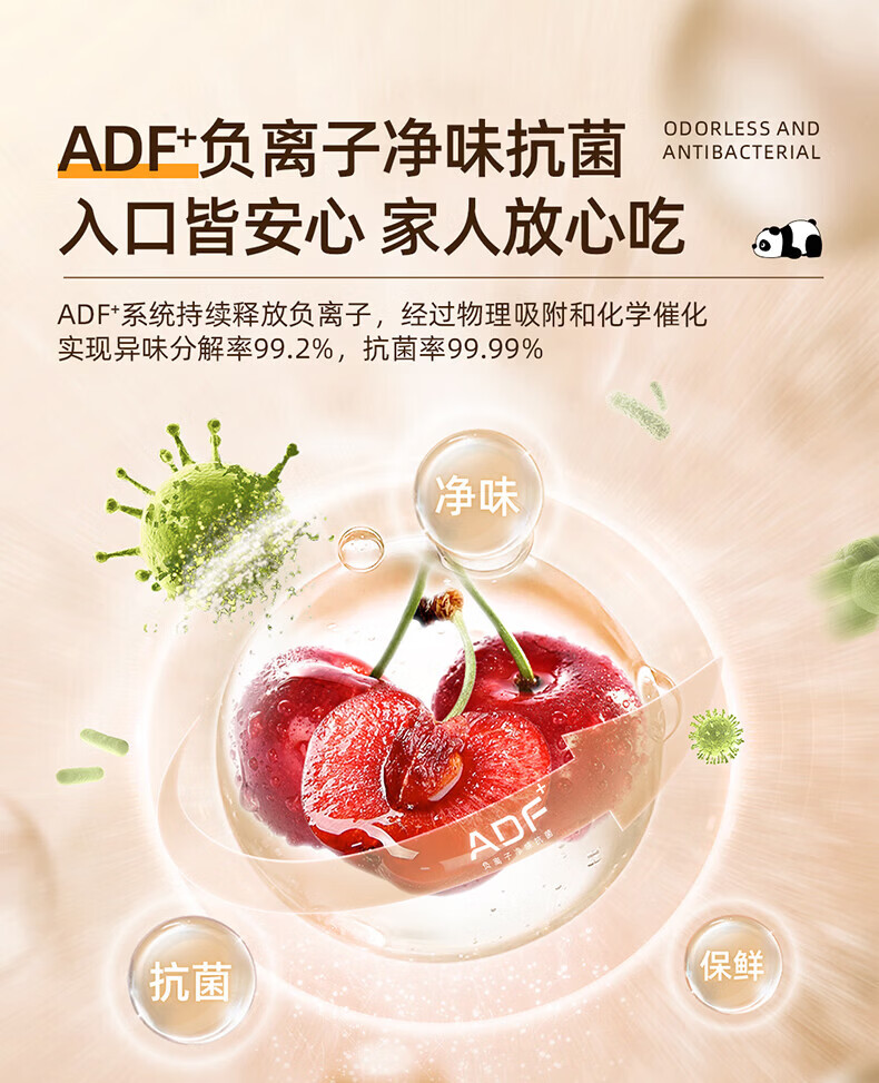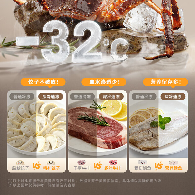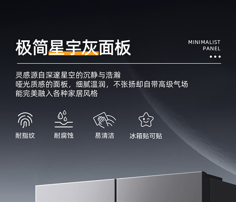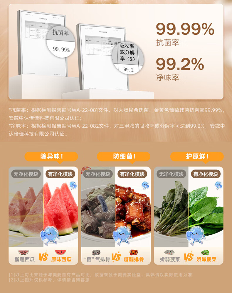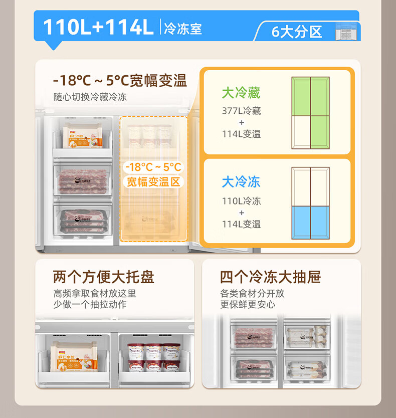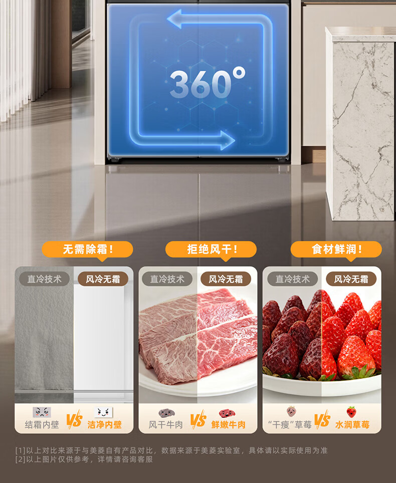 美菱胖墩墩601L十字门冰箱净味抗菌双变频超大容量一级能效家用节能风冷无霜
