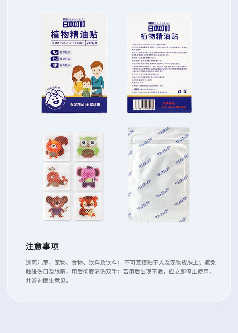 日本叮叮植物精油防叮贴宝宝儿童成人户外防护彩色版驱叮贴神器2盒48贴