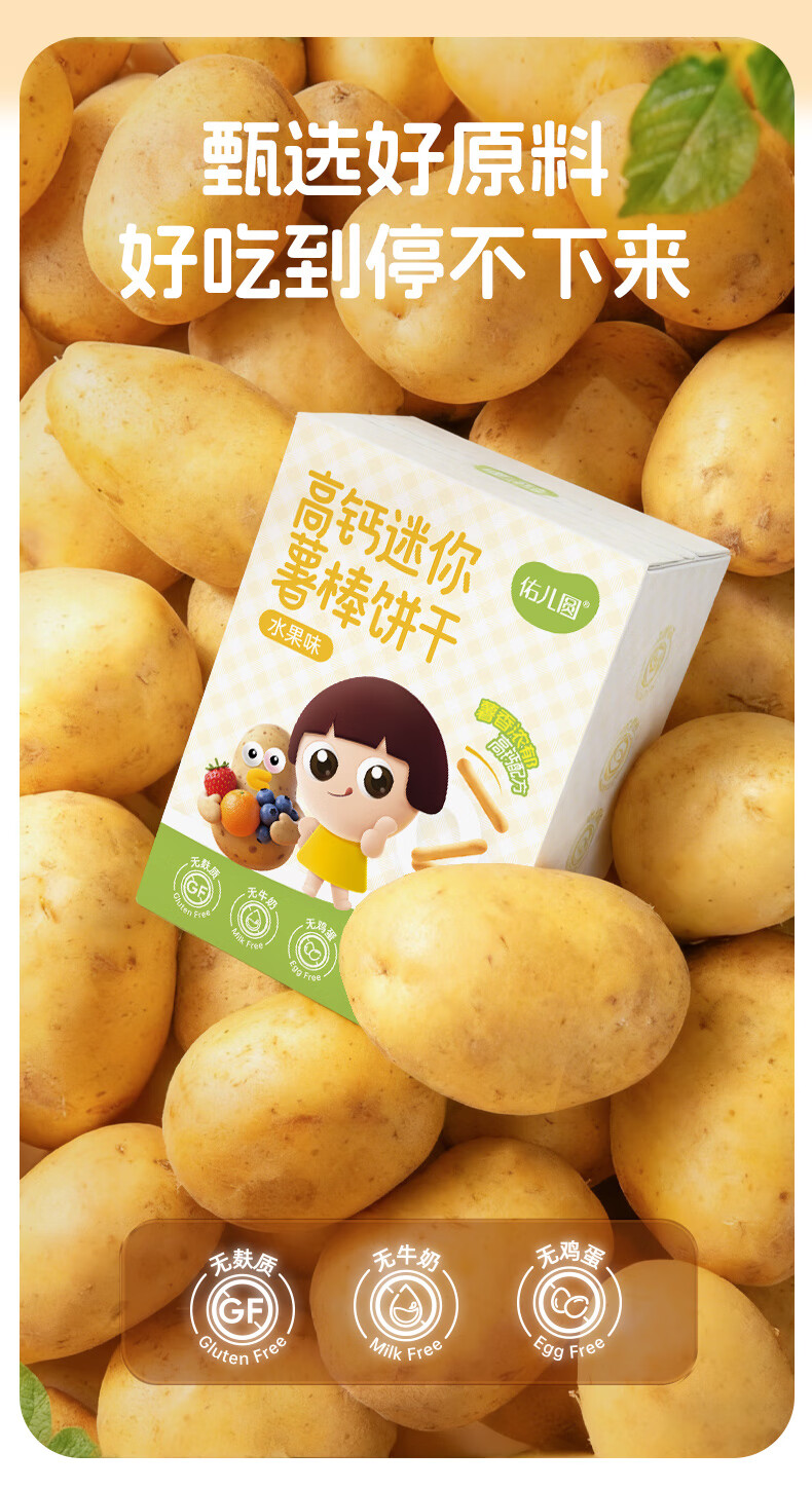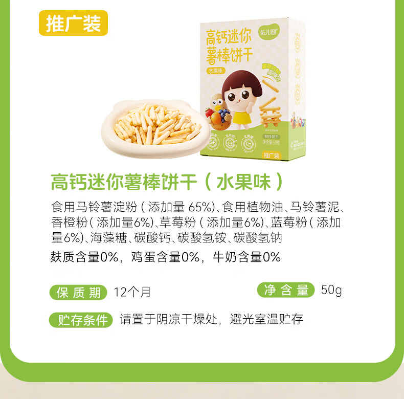 佑儿圆无麸质高钙迷你水果薯棒饼干100g无蛋奶钙铁锌酥脆儿童零食 水果味50g