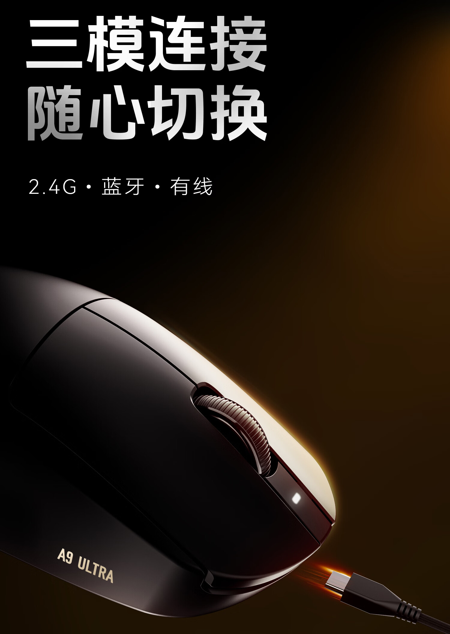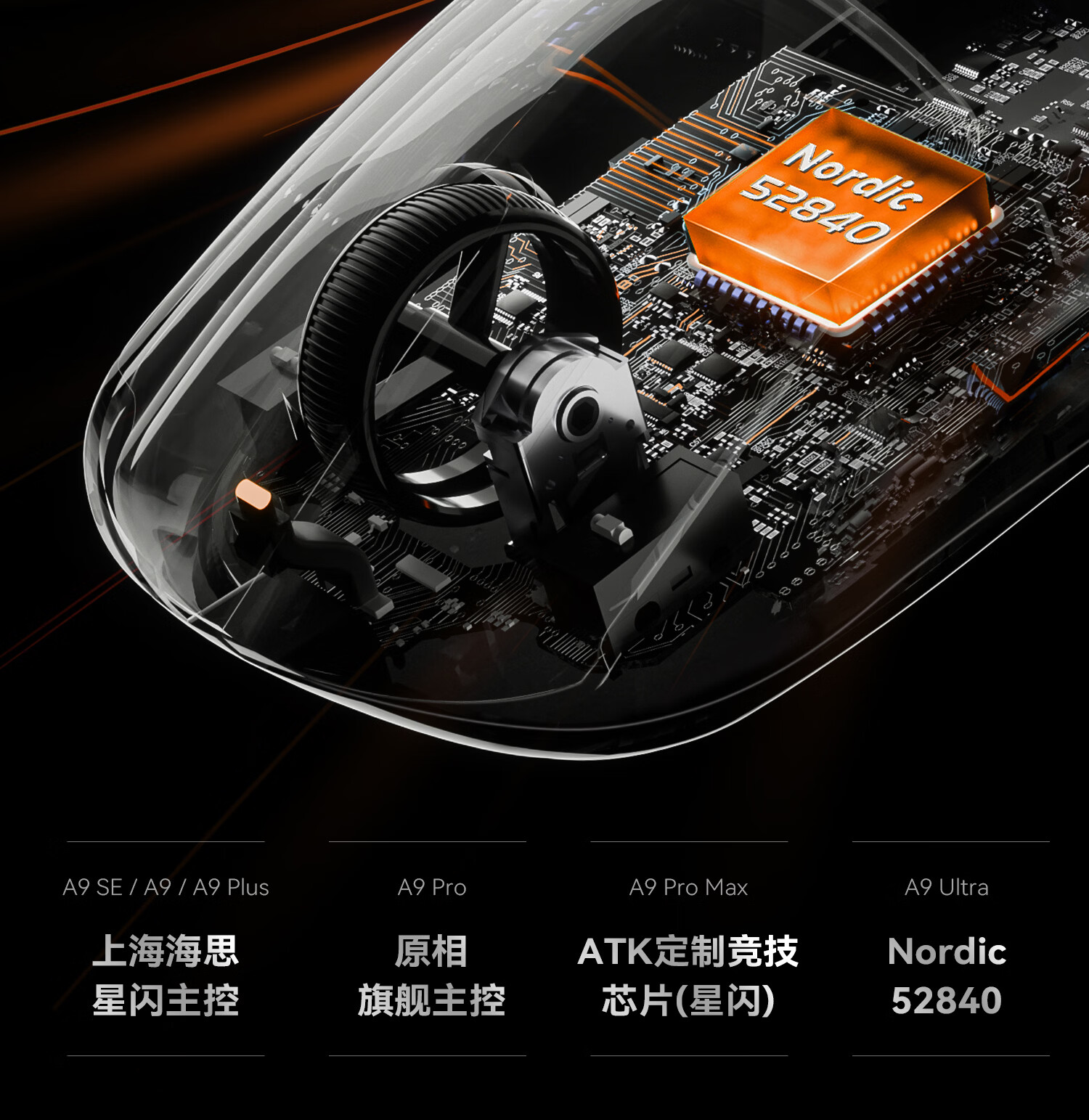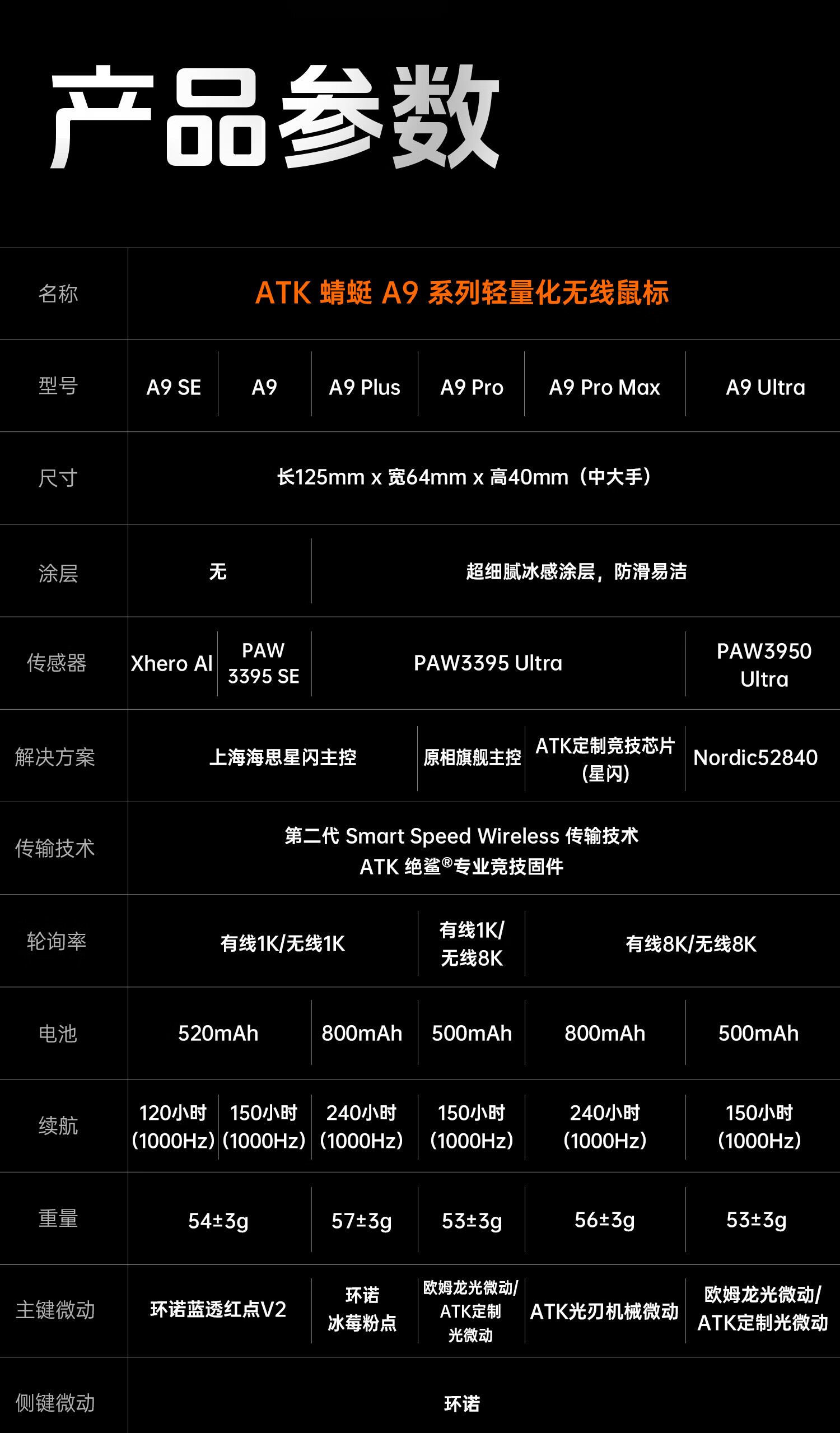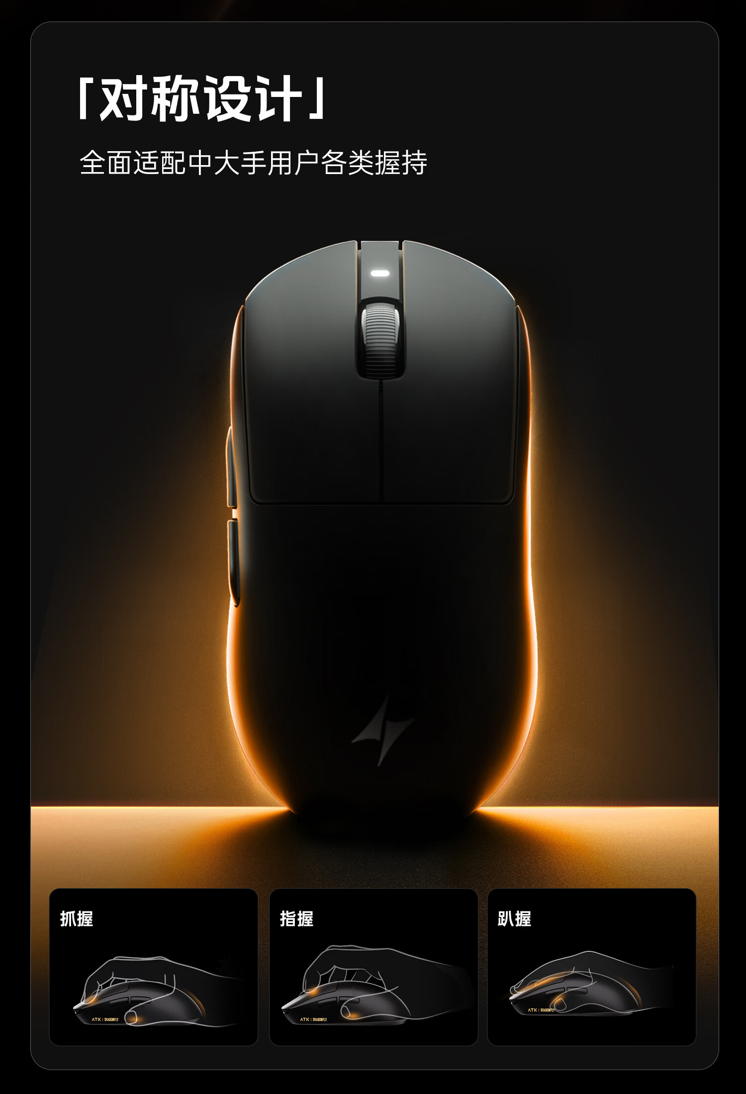 ATK 蜻蜓A9无线鼠标电竞游戏办公鼠标 有线/蓝牙/2.4G/星闪三模连接轻量化对称极简工学 A9 白色