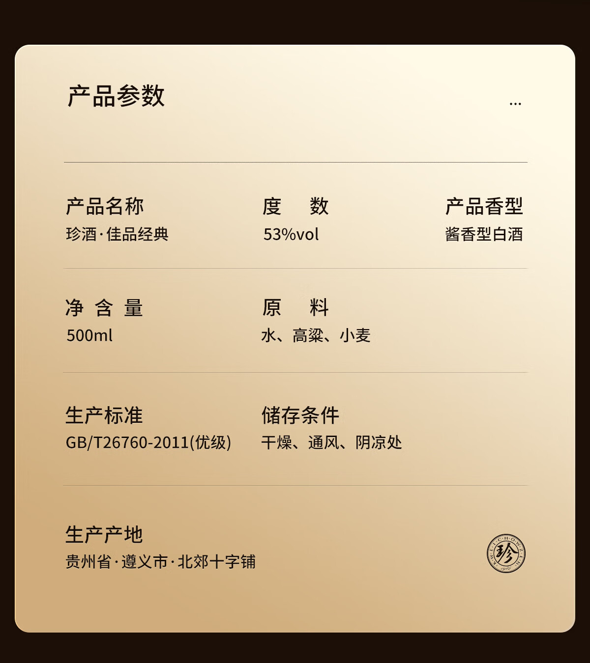 珍酒 佳品经典 酱香型白酒 53度 500ml*2瓶 礼盒装