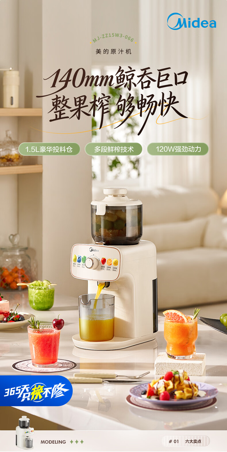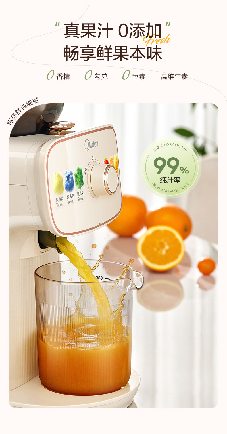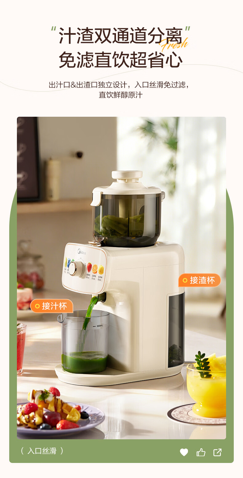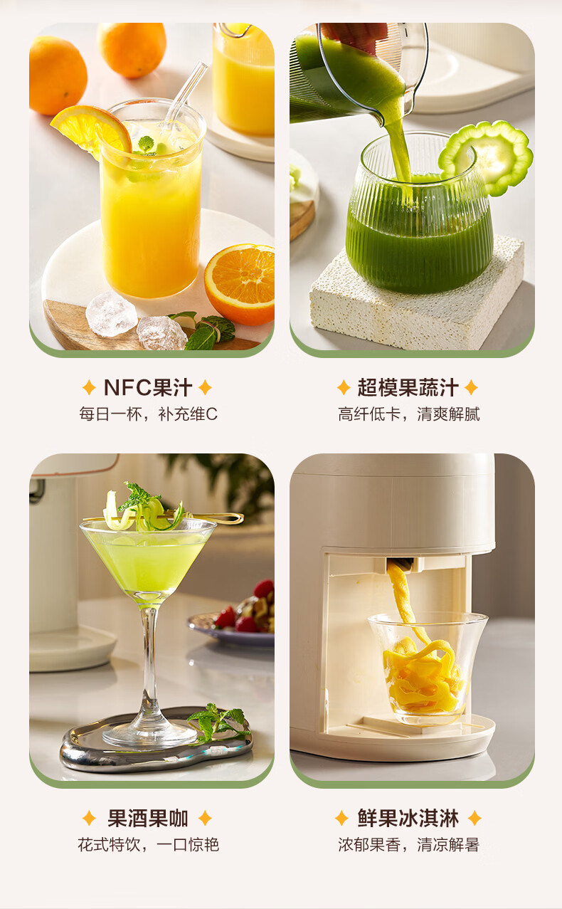 美的(Midea)NFC原汁机橙汁机多功能家用榨汁机电动冰淇淋果汁机渣汁分离辅食料理机MJ-ZZ15W3-066