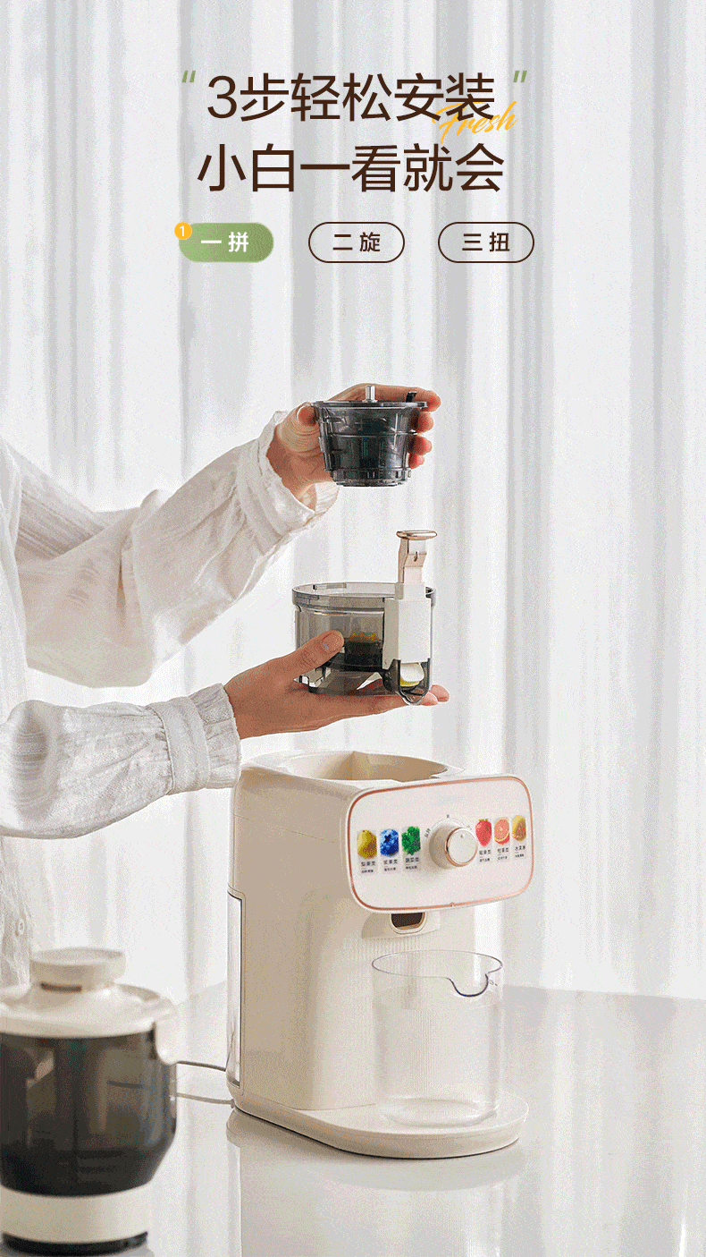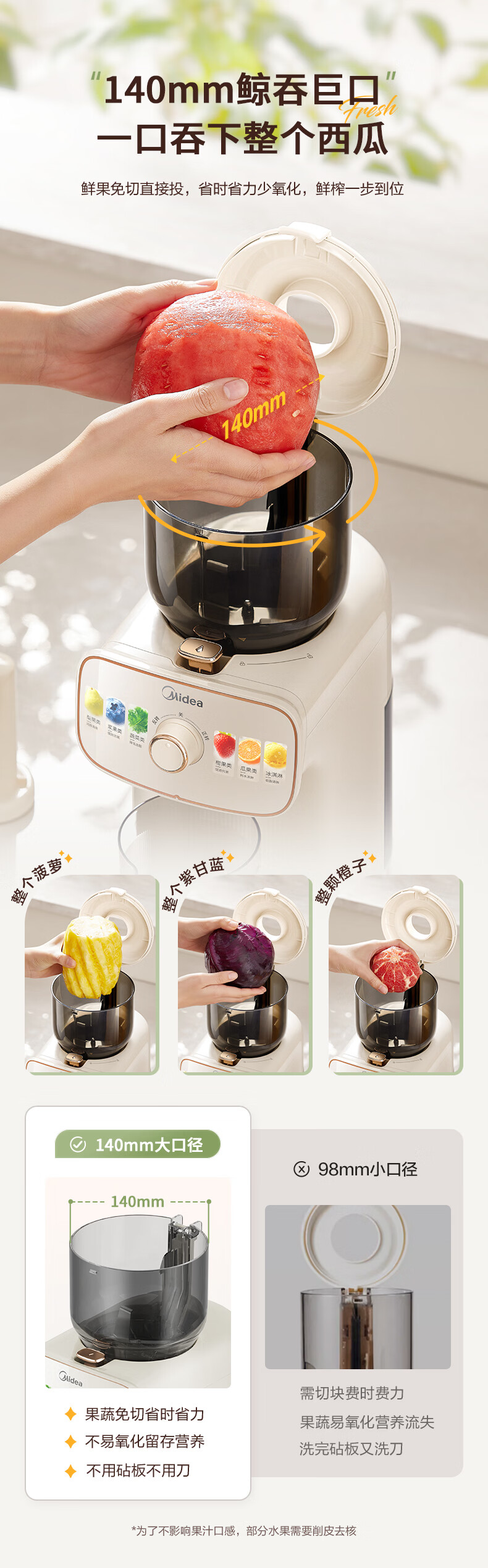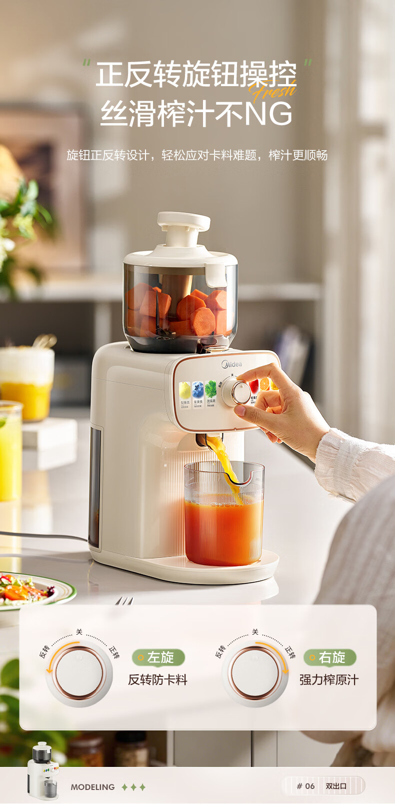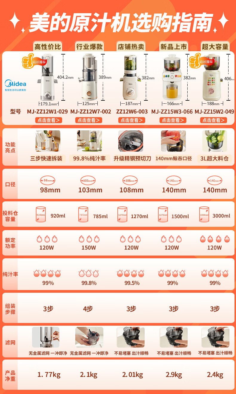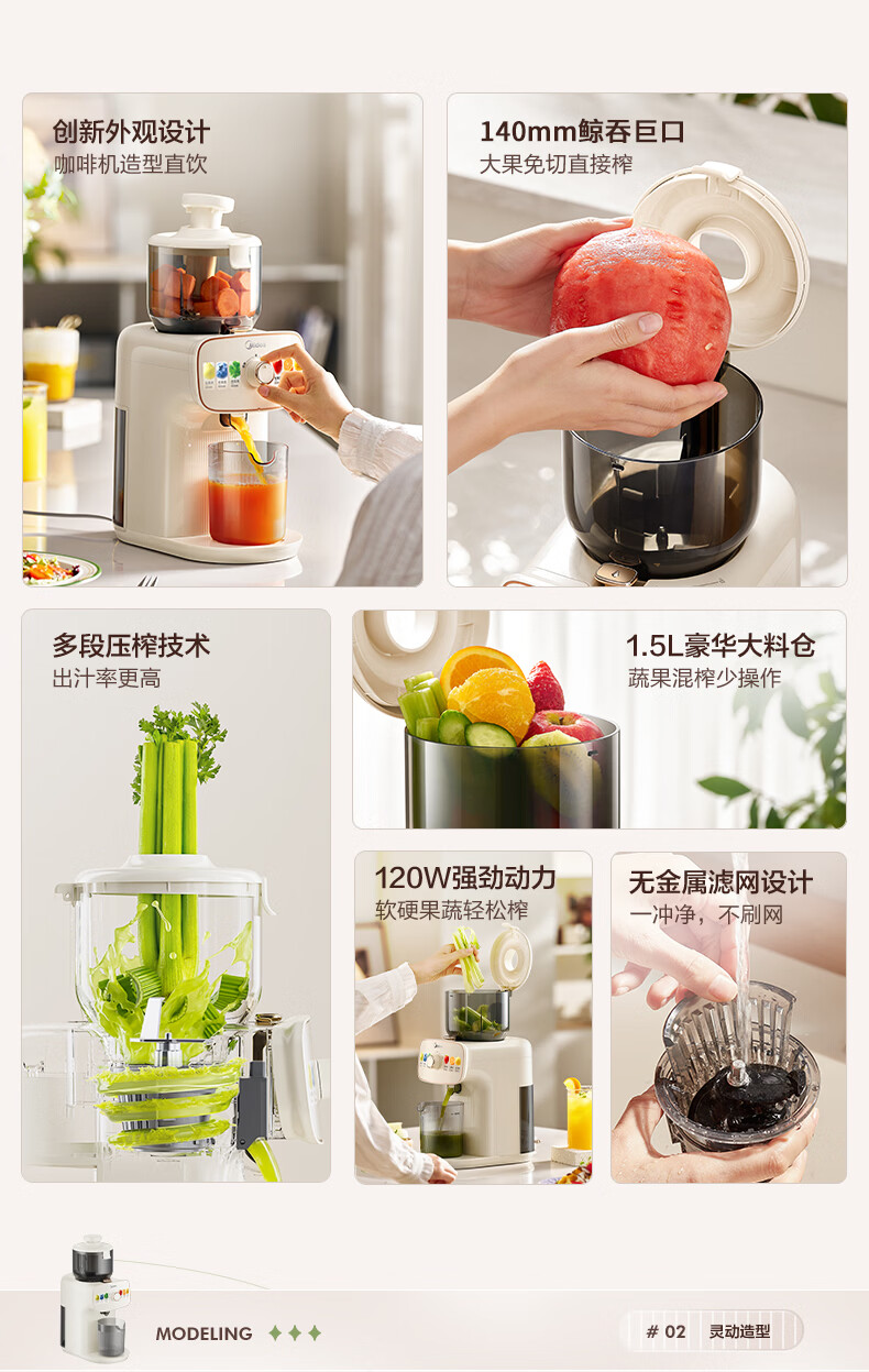 美的(Midea)NFC原汁机橙汁机多功能家用榨汁机电动冰淇淋果汁机渣汁分离辅食料理机MJ-ZZ15W3-066