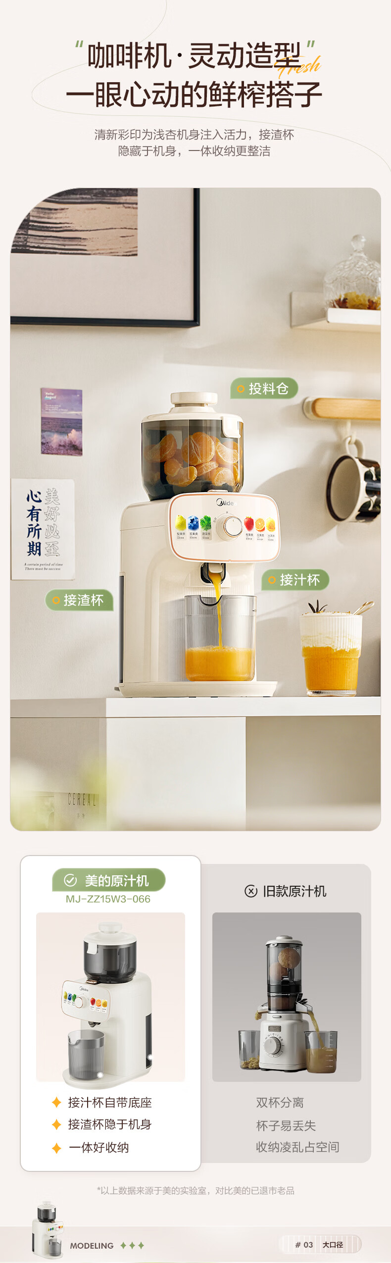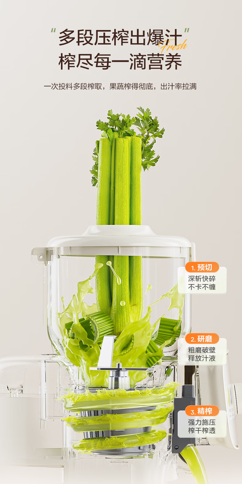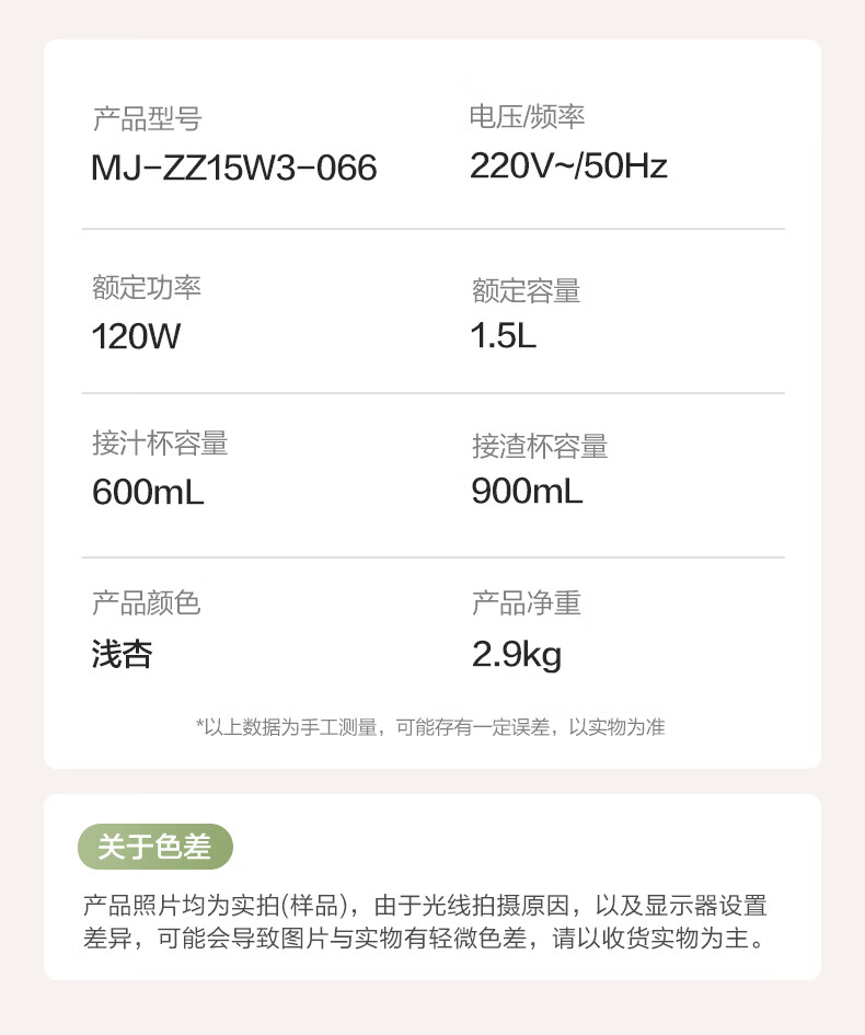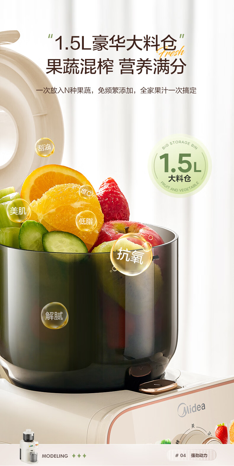 美的(Midea)NFC原汁机橙汁机多功能家用榨汁机电动冰淇淋果汁机渣汁分离辅食料理机MJ-ZZ15W3-066