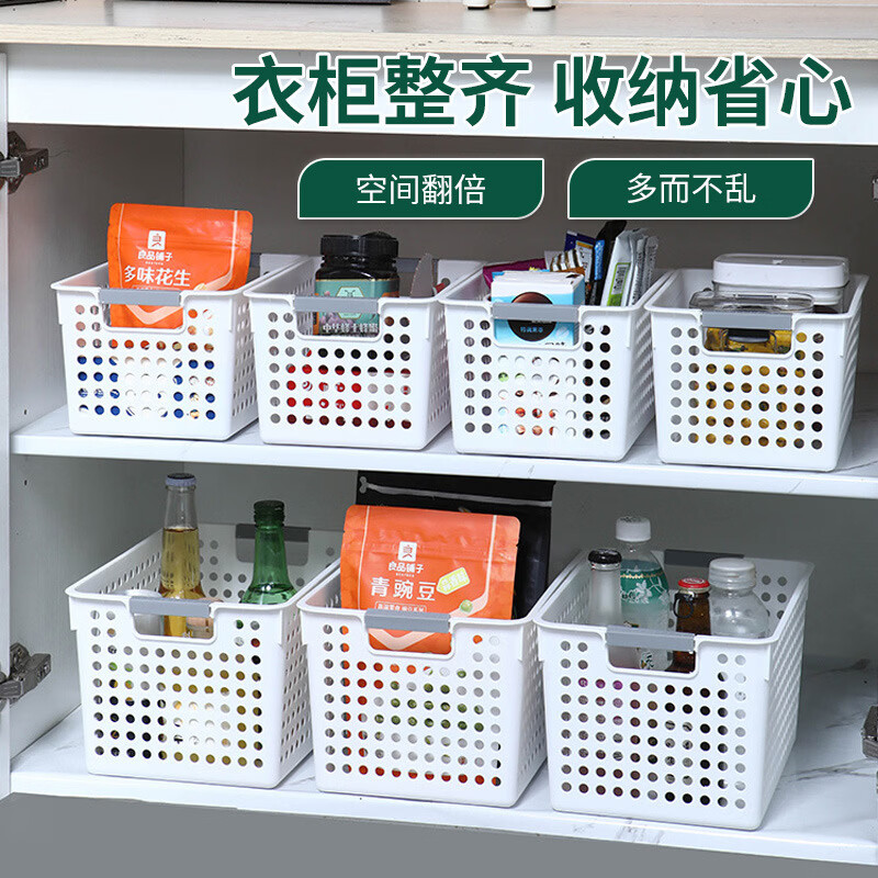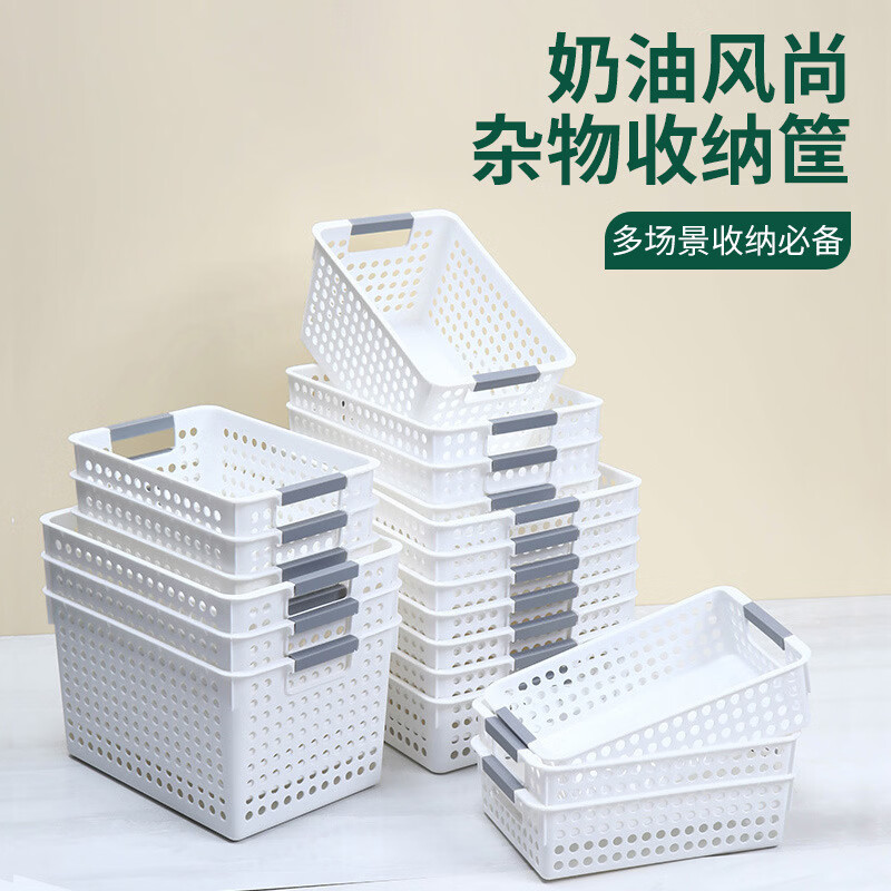 【限时促销】家用镂空收纳篮加厚可叠加收纳整理置物篮 收纳篮【小号23*15*7】2个装