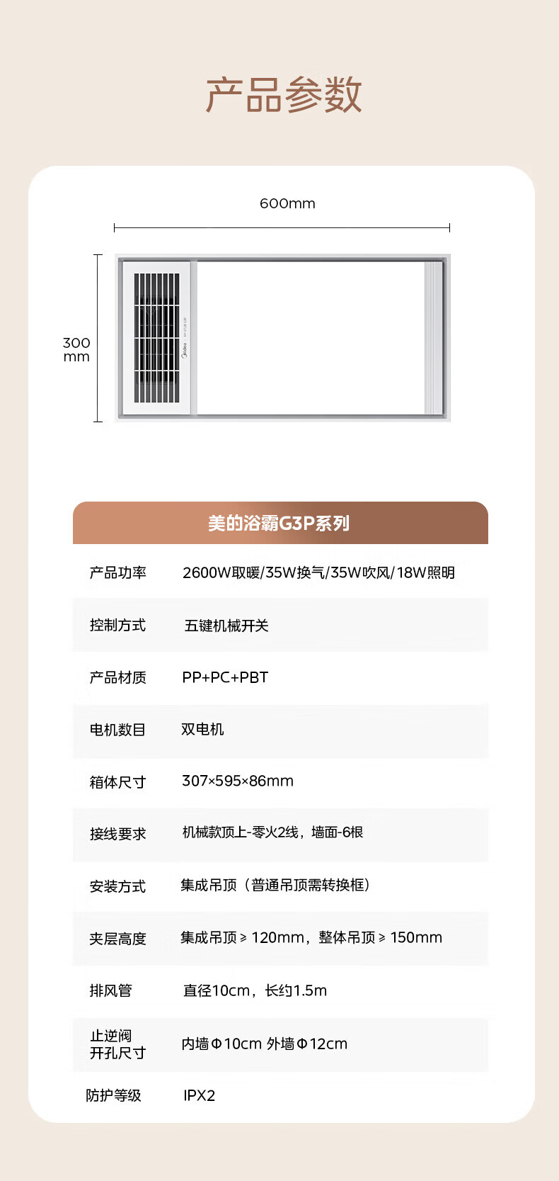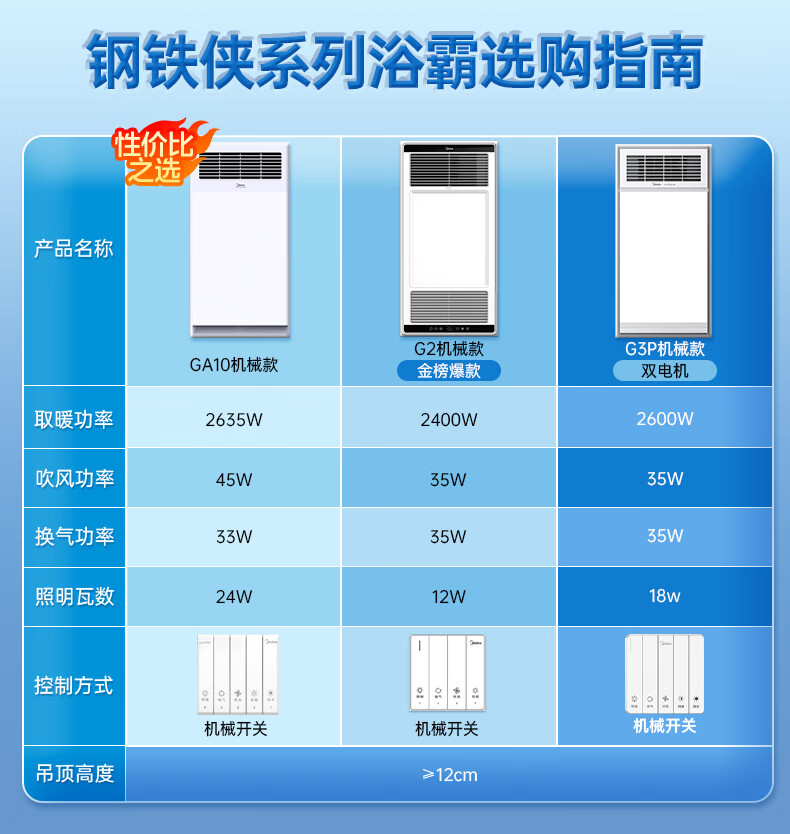 美的(Midea)风暖浴霸钢铁侠系列照明排气一体取暖器换气暖风机G3P浴室卫生间