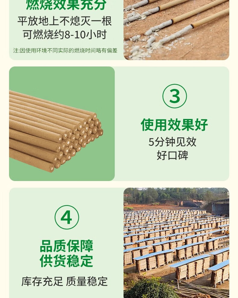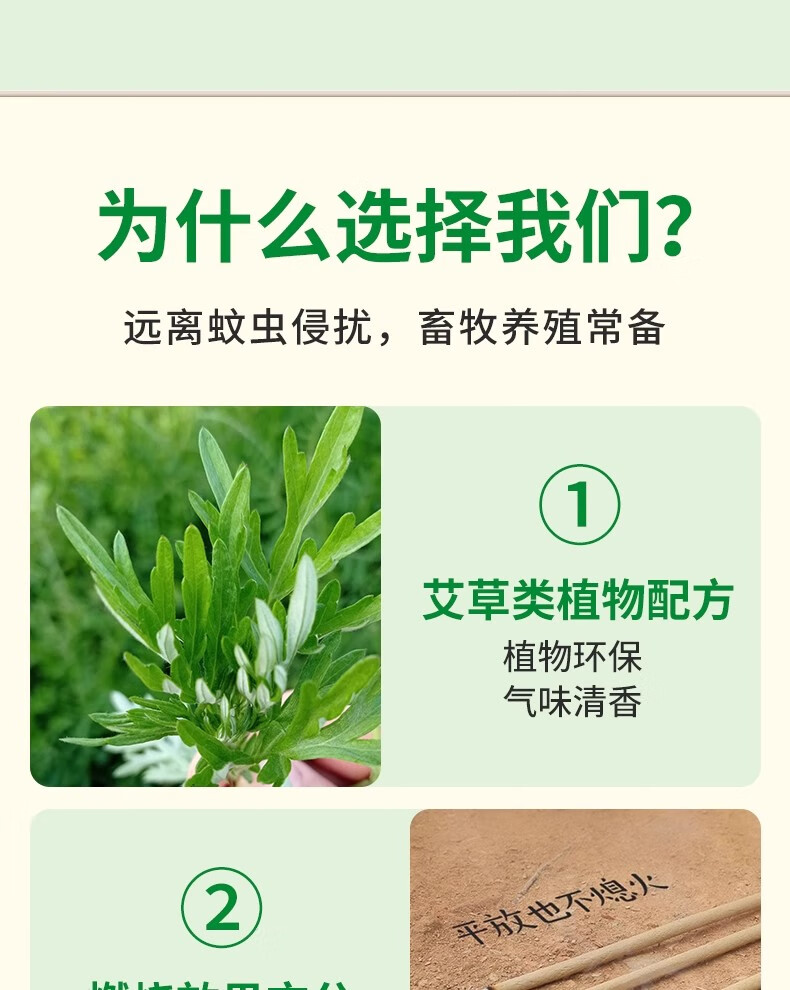 艾草蚊香棒配驱蚊片熏香户野外艾条艾叶家用商用室外防蚊神器 80根1.2米加长艾叶升级款