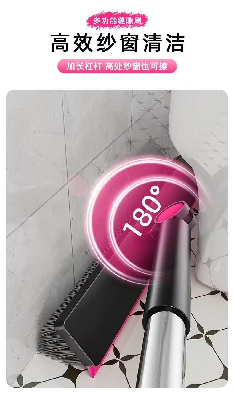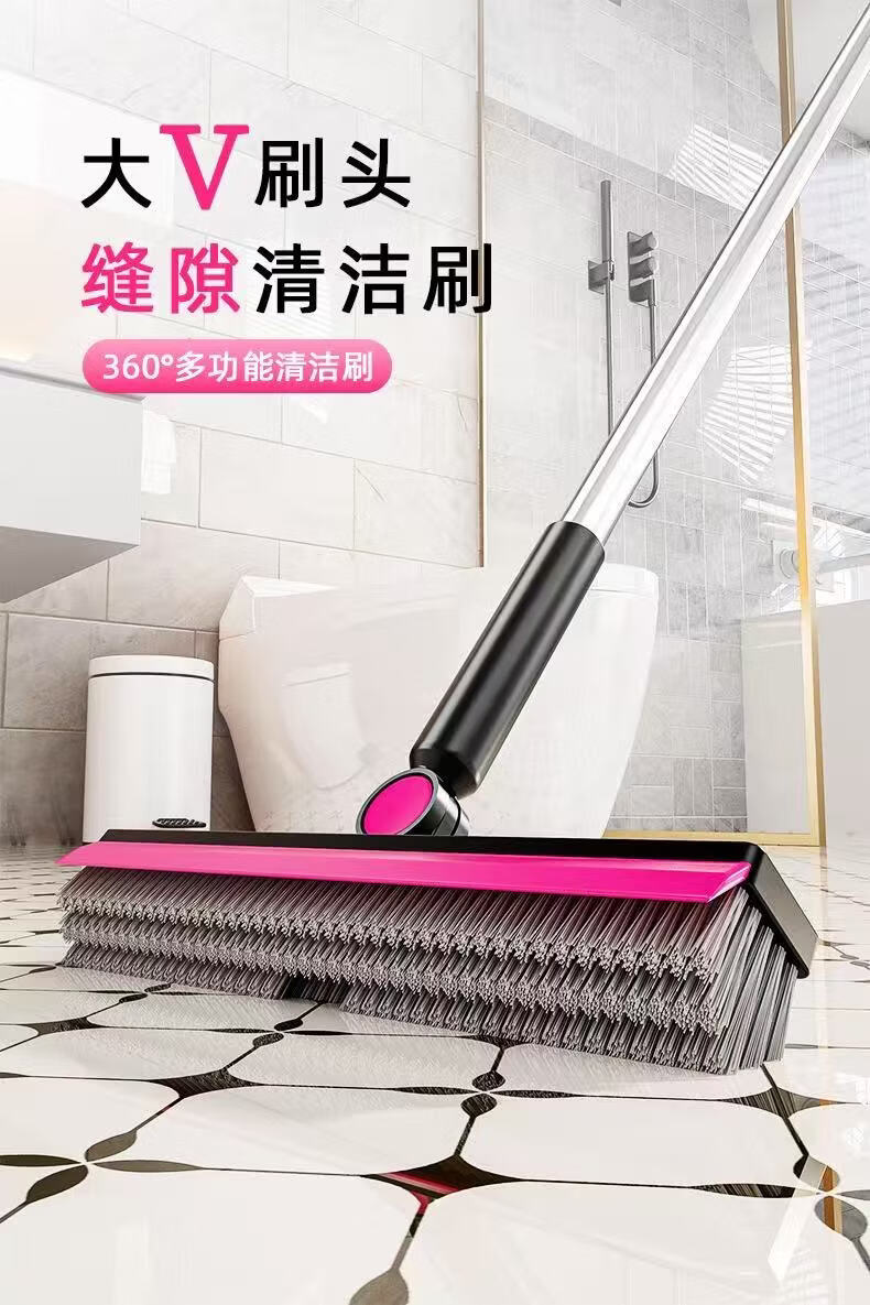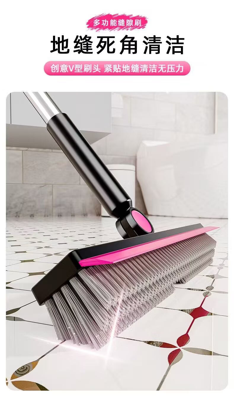 洋臣大V刷头缝隙清洁刷360°多功能卫生间地板瓷砖死角家用清洁神器 120cm加长杆1套【黑红白灰随机发货】