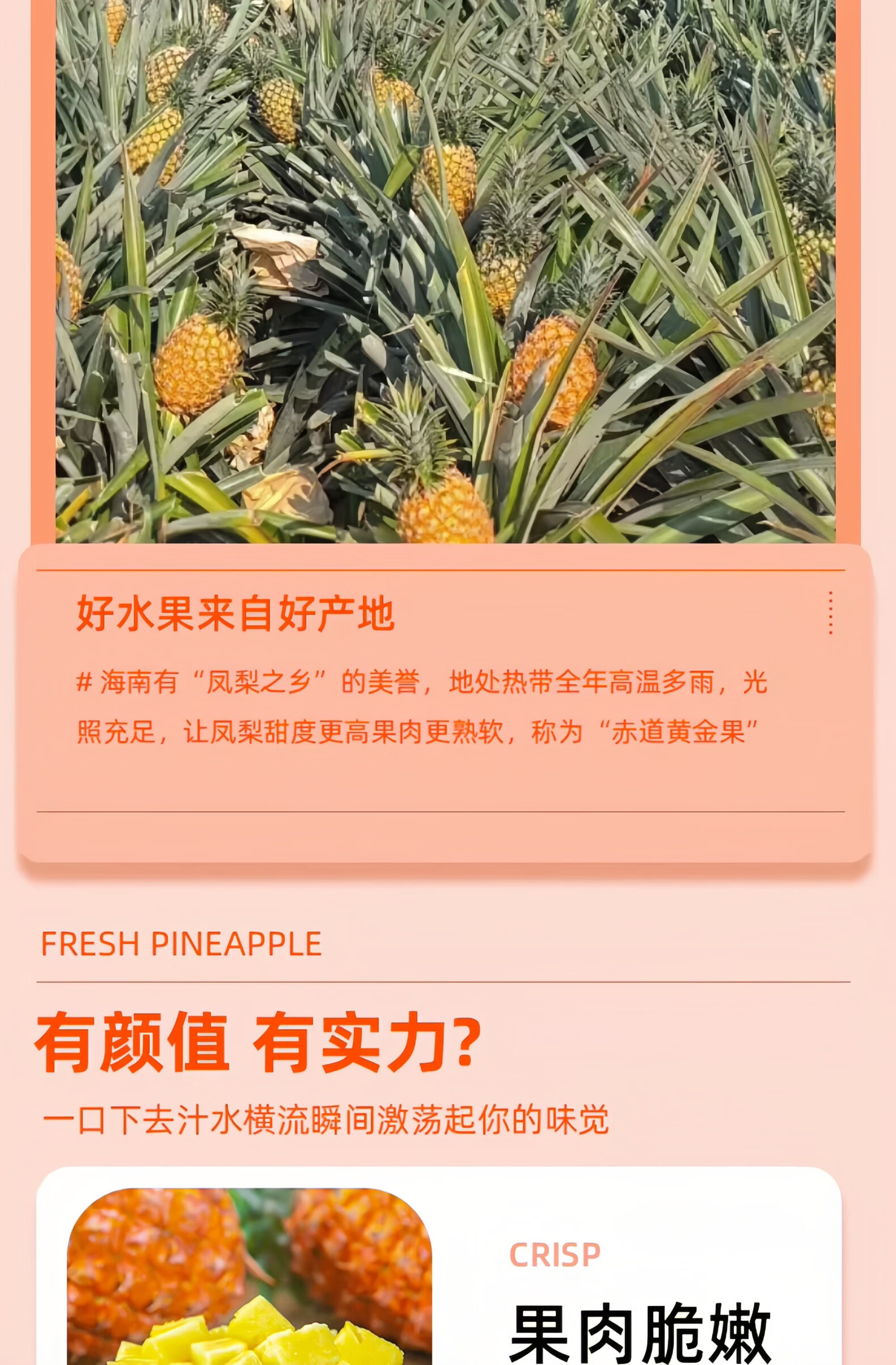 广东徐闻香水菠萝 新鲜生鲜水果 净重4.5斤 单果650g起