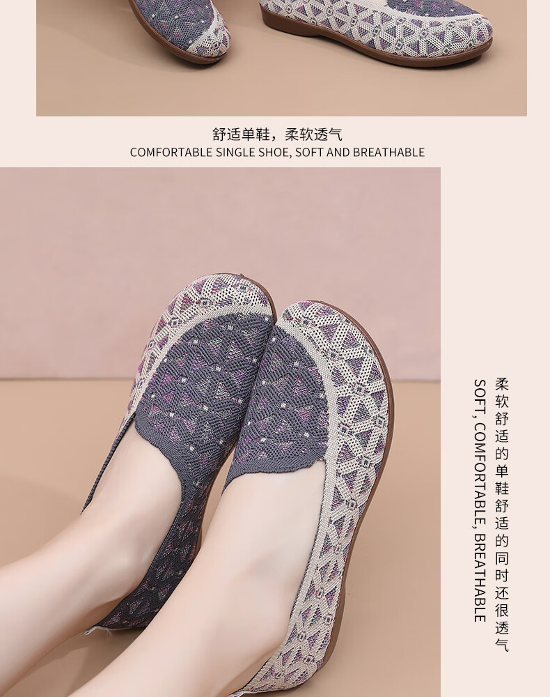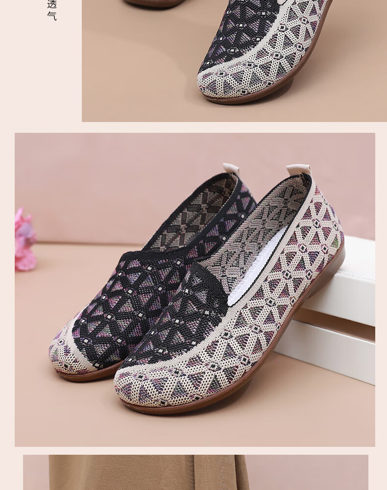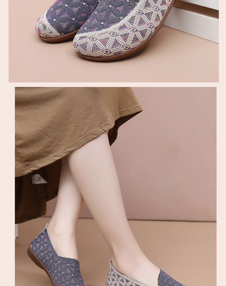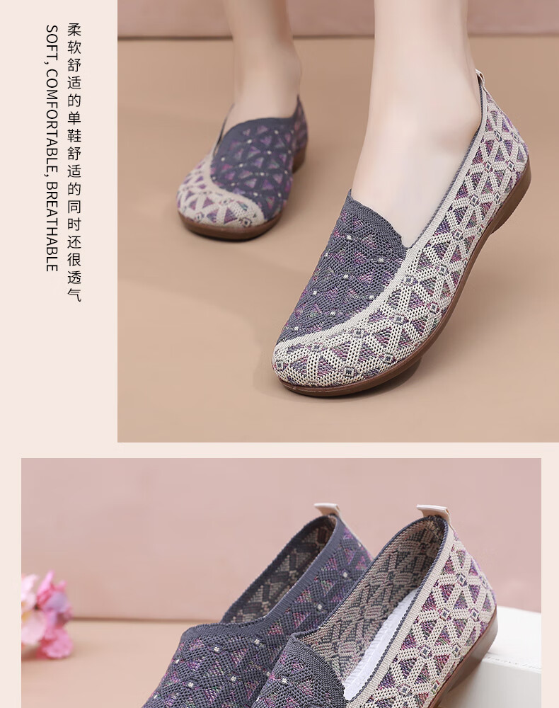 意迪森正宗老北京布鞋女春秋新款飞织鞋面透气不捂脚艾草鞋垫舒适减震款 灰色 38 (240mm)