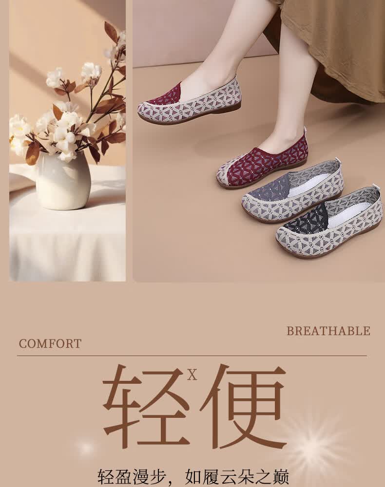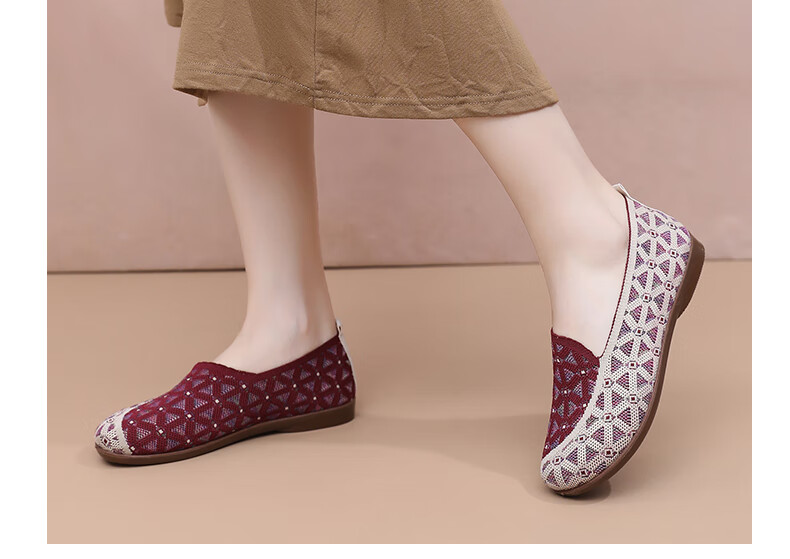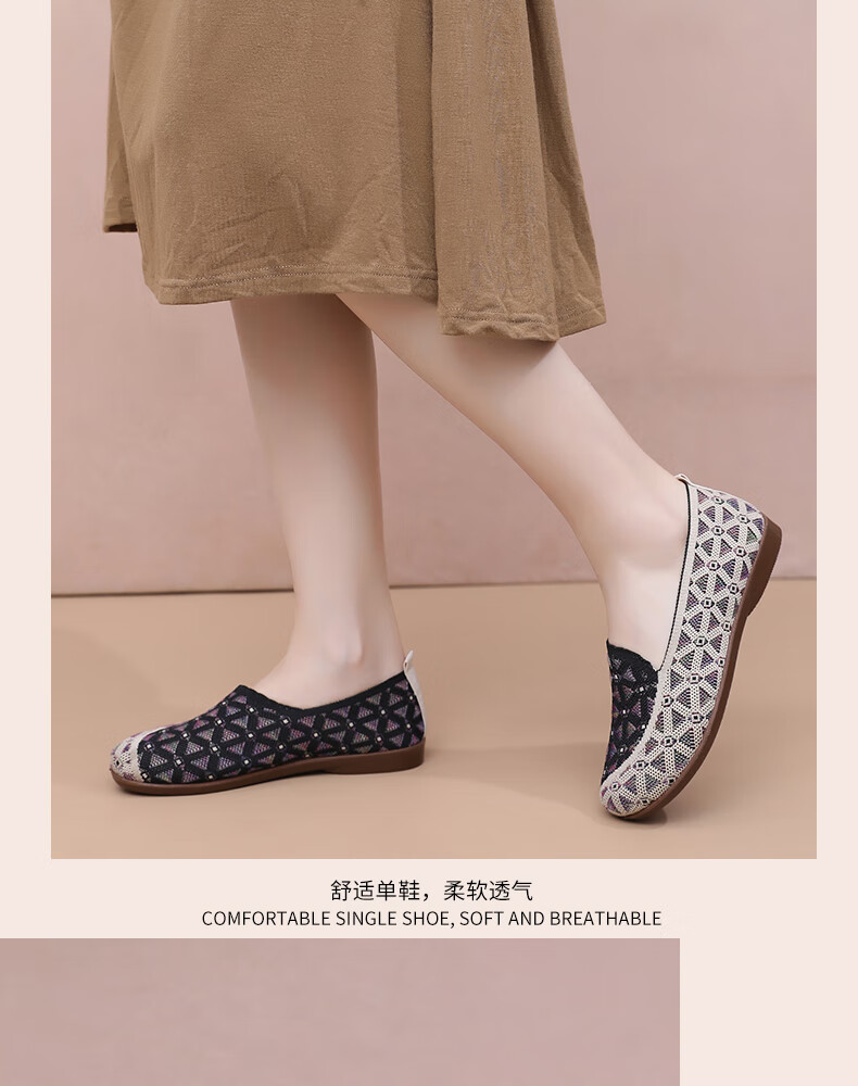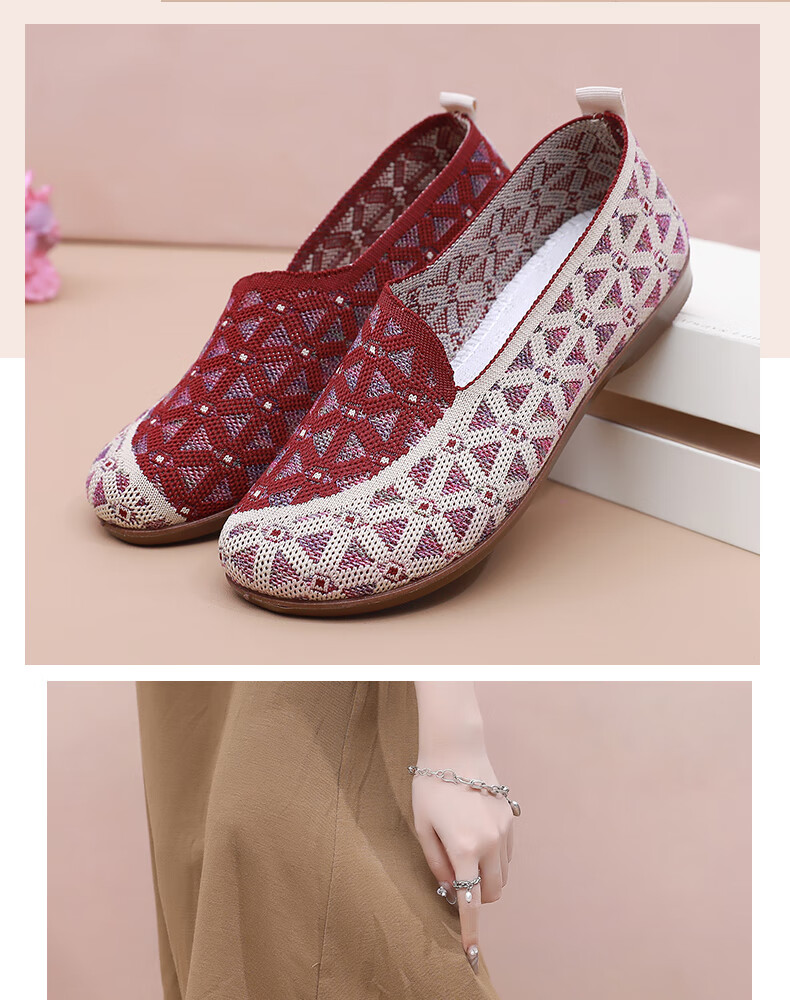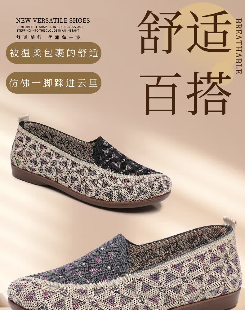意迪森正宗老北京布鞋女春秋新款飞织鞋面透气不捂脚艾草鞋垫舒适减震款 灰色 38 (240mm)