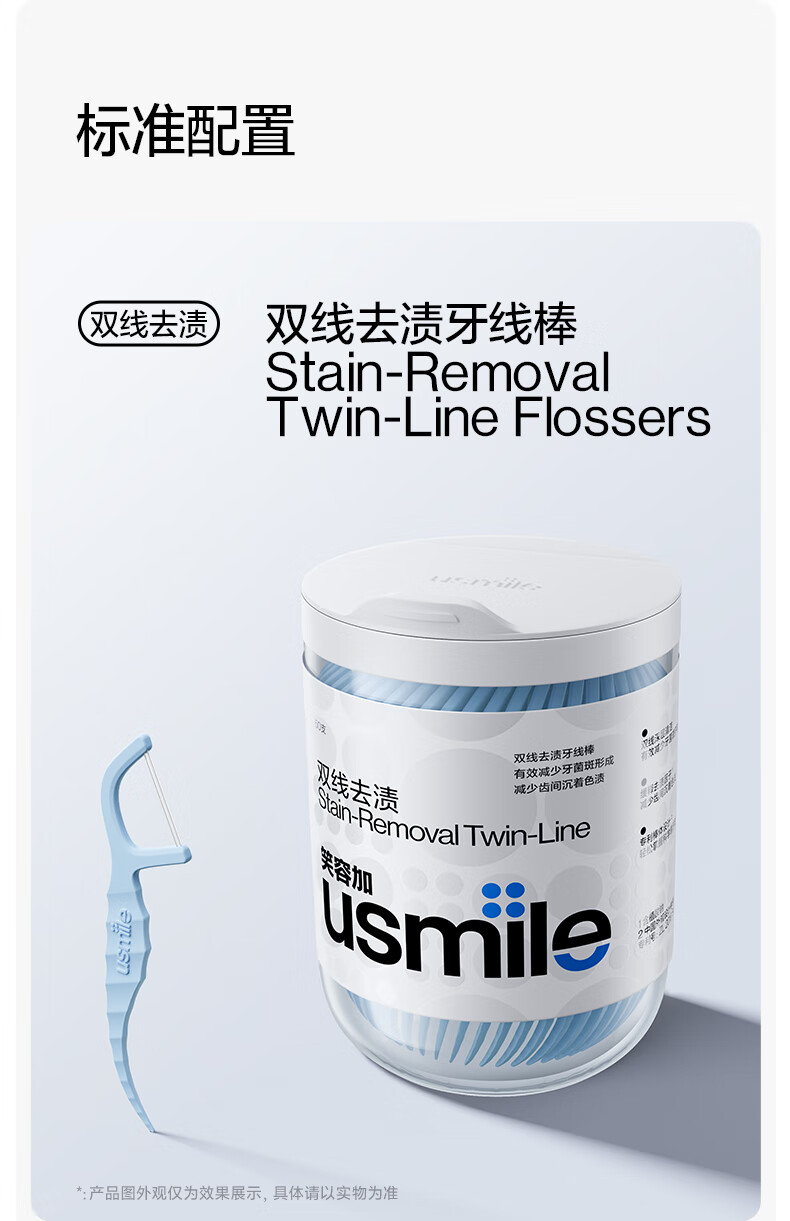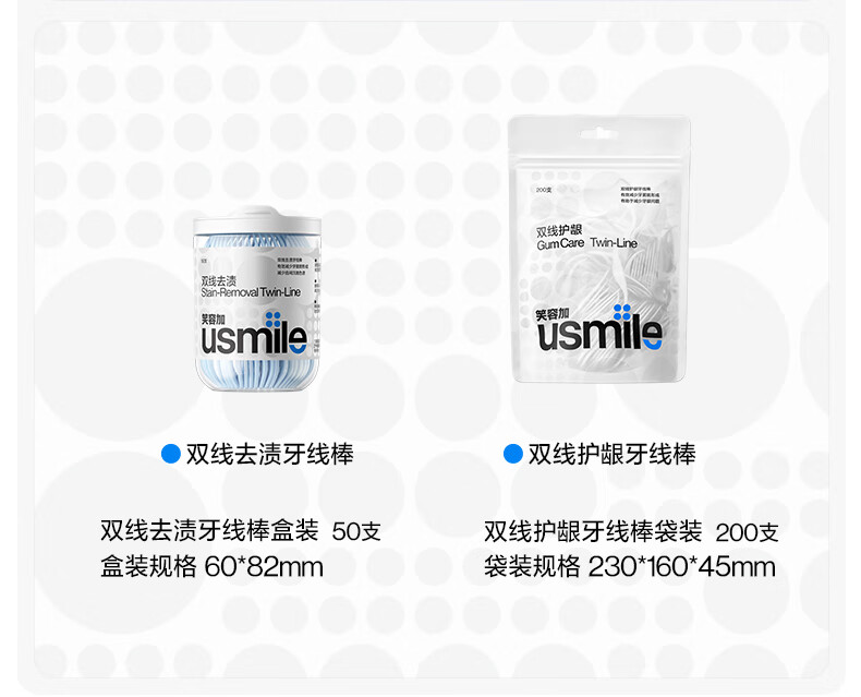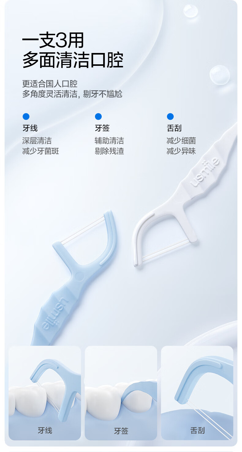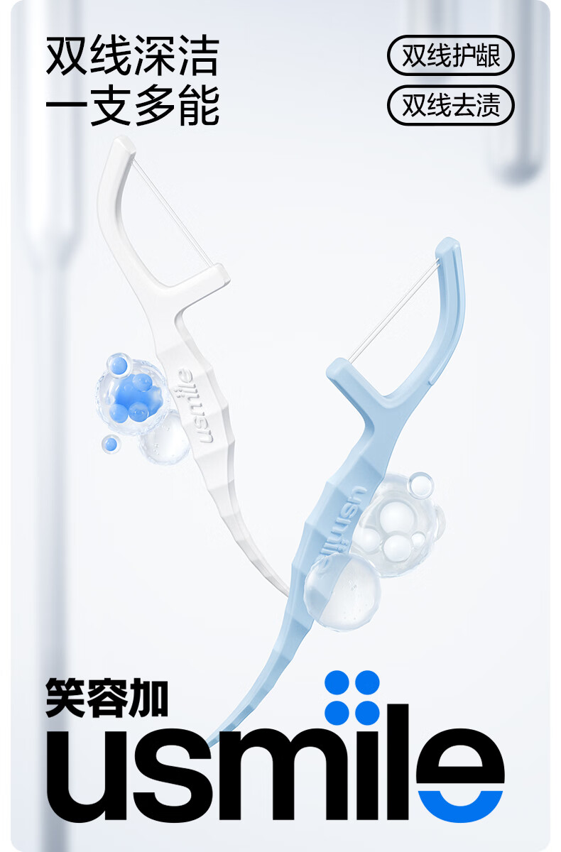 usmile笑容加 双线牙线棒 卓效去渍护龈 家庭装 【袋装】抗龋型牙线 200支