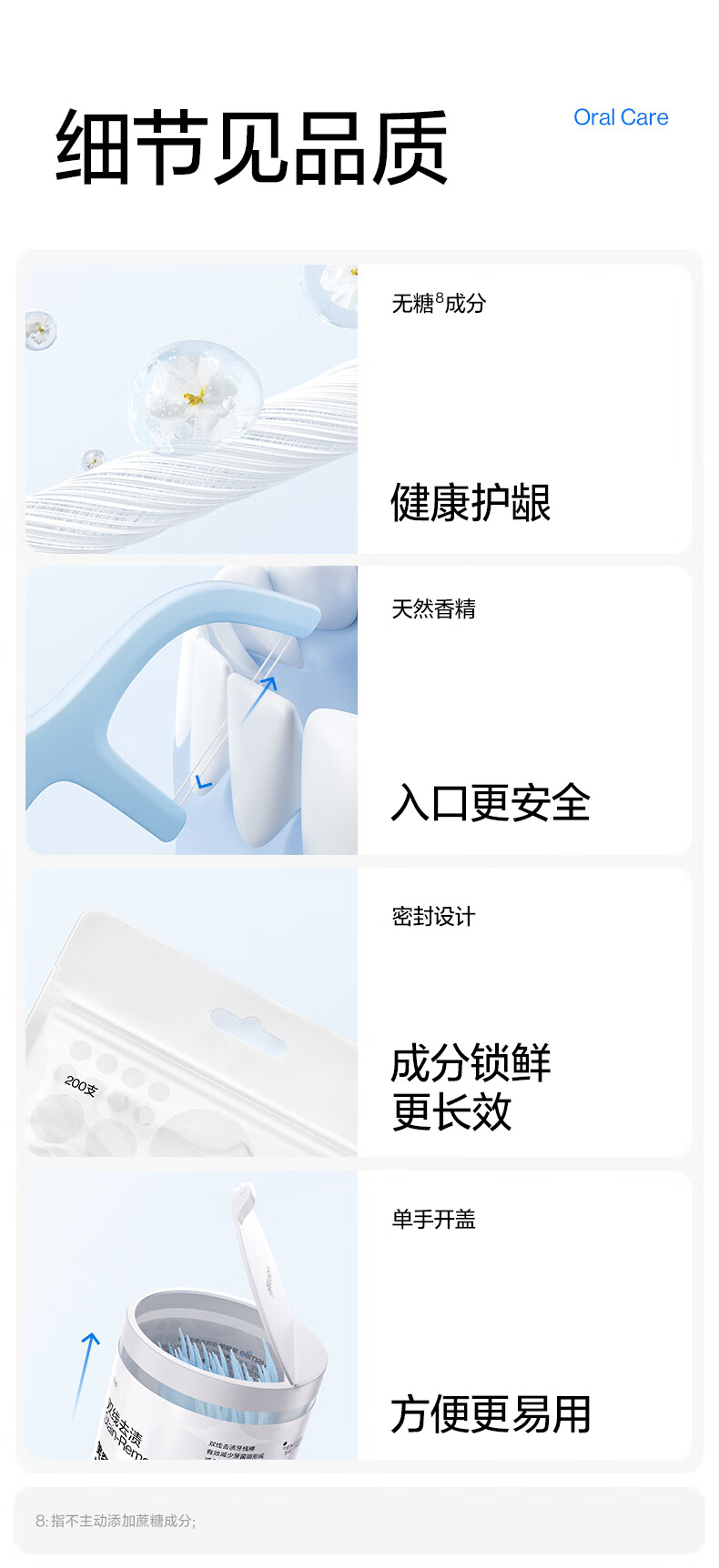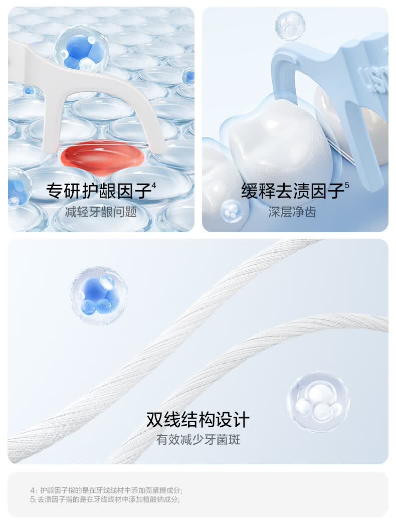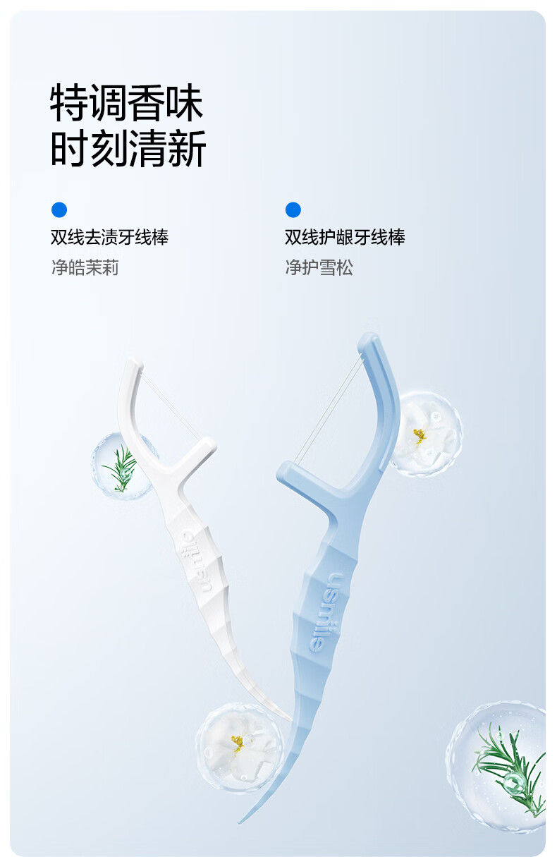 usmile笑容加 双线牙线棒 卓效去渍护龈 家庭装 【袋装】抗龋型牙线 200支