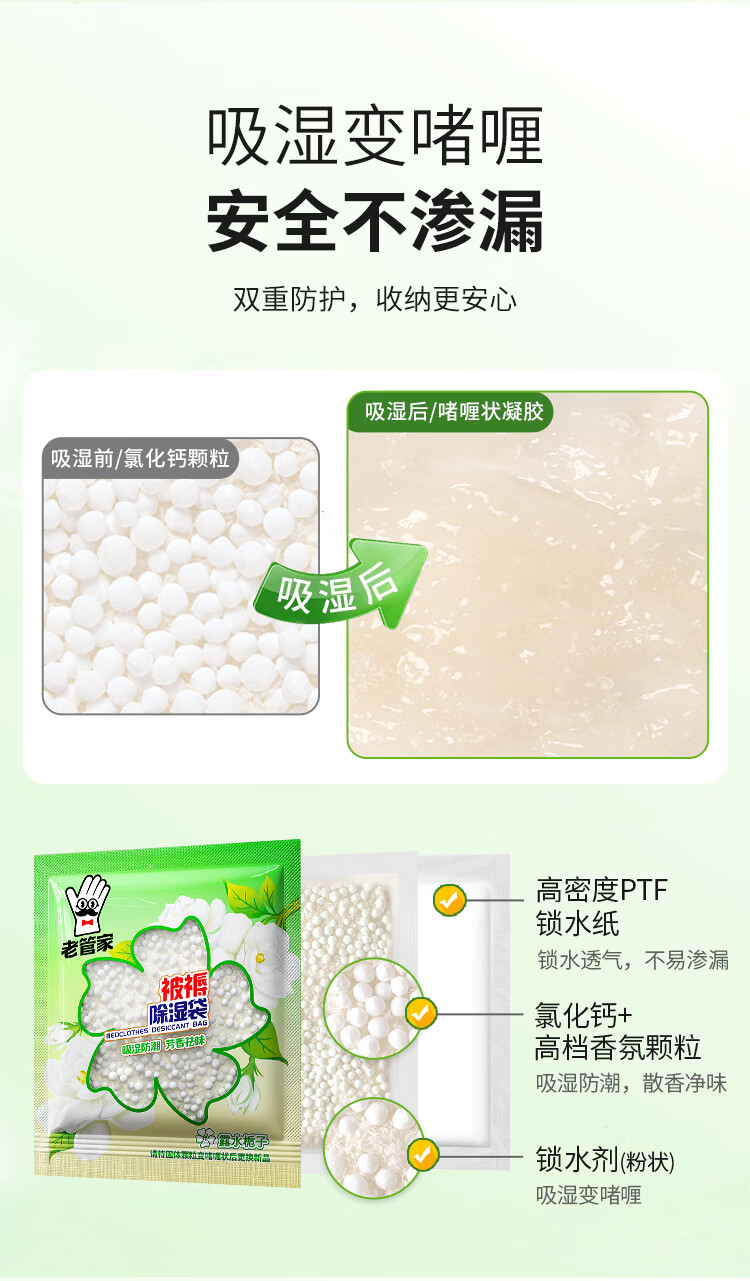 老管家被褥除湿袋干燥剂吸潮防潮防霉吸湿宿舍学生可挂式衣柜盒包 30g*10袋