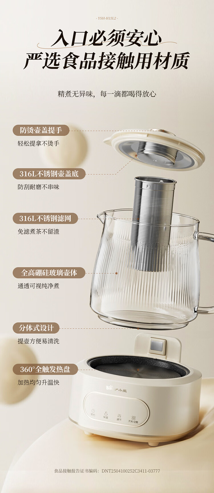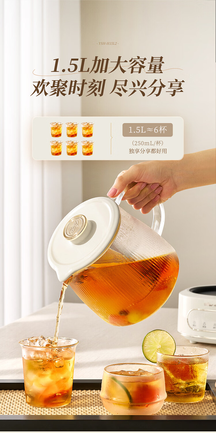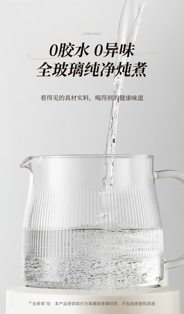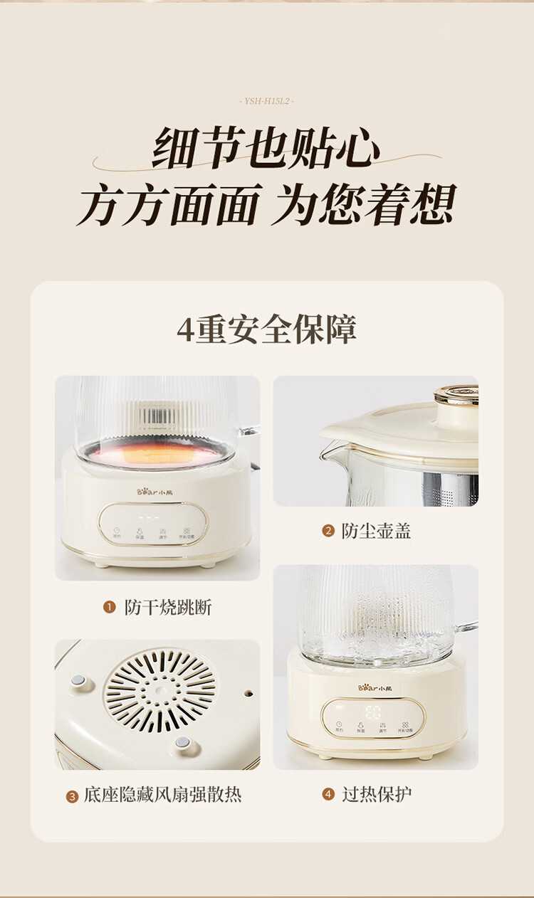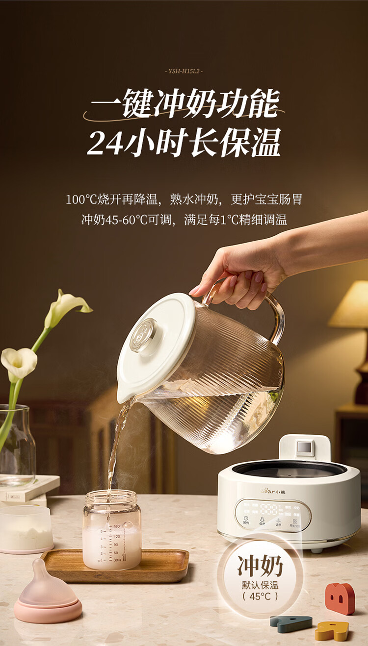 小熊(Bear)全玻璃壶养生壶恒温壶 办公室多功能煮茶壶花茶壶 0金属养生杯 24h保温 1.5L YSH-H15L2