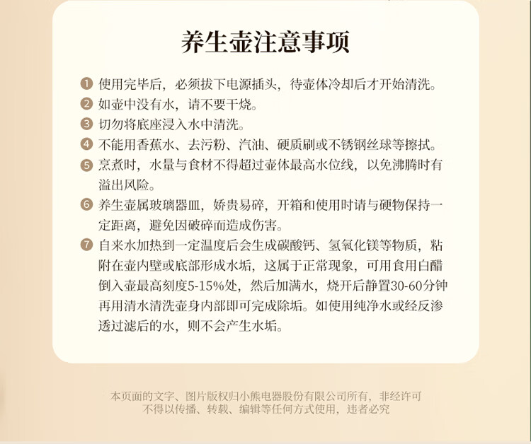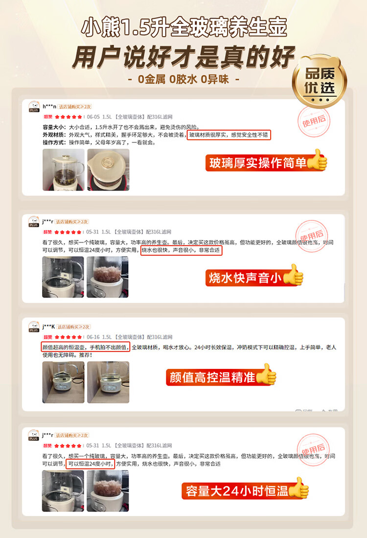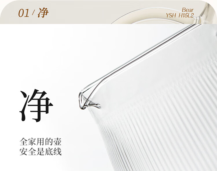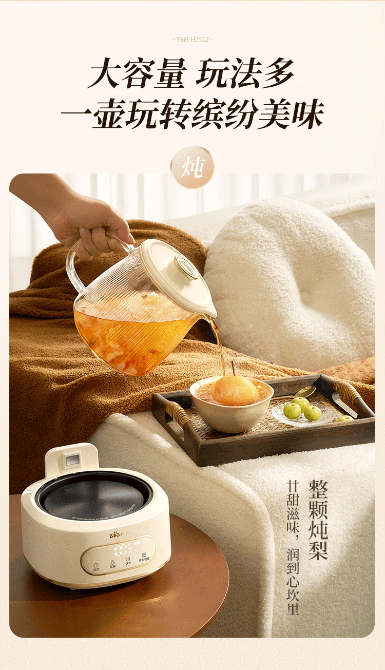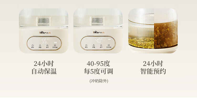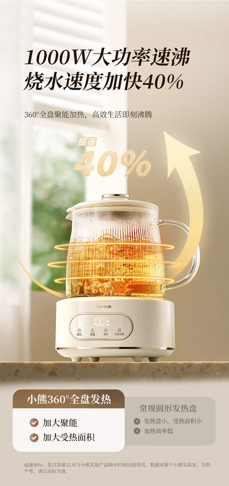 小熊(Bear)全玻璃壶养生壶恒温壶 办公室多功能煮茶壶花茶壶 0金属养生杯 24h保温 1.5L YSH-H15L2