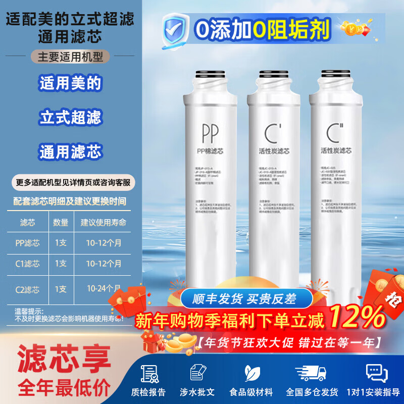 贝亦净适用美的立式超滤净饮水机立式净水器uf超滤膜滤芯JD1056S/JR1056S/JL1056S-UF滤芯 PP棉滤芯【适配美的立式超滤】