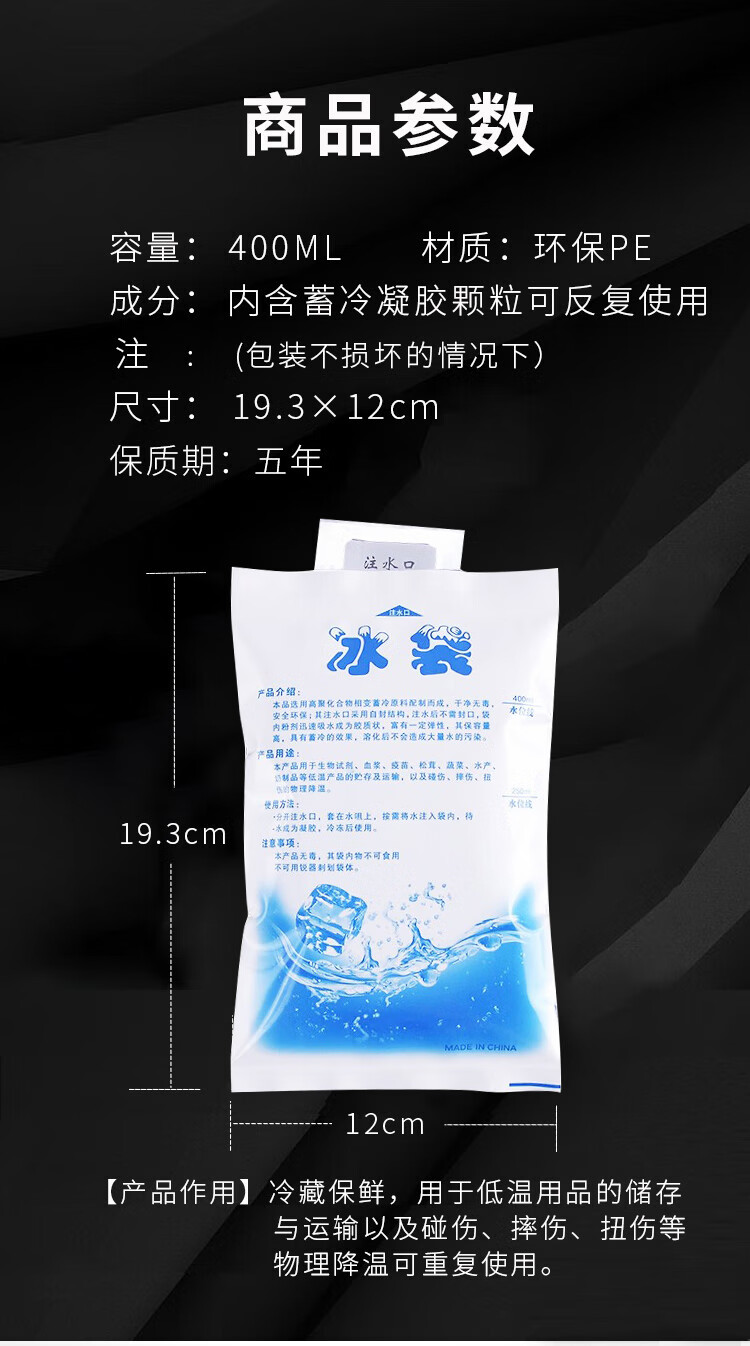 佰伶佰俐 400ML注水冰袋 户外食品海鲜冷藏冰包 10个装