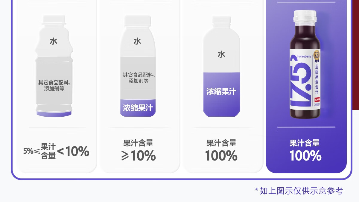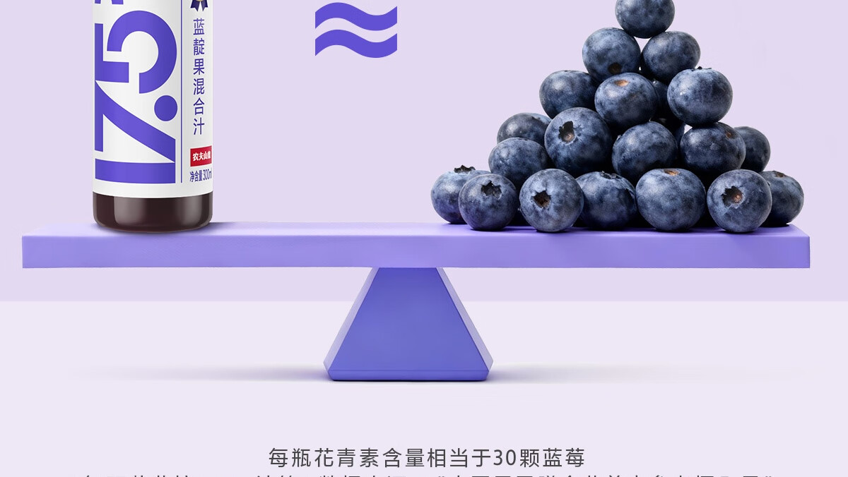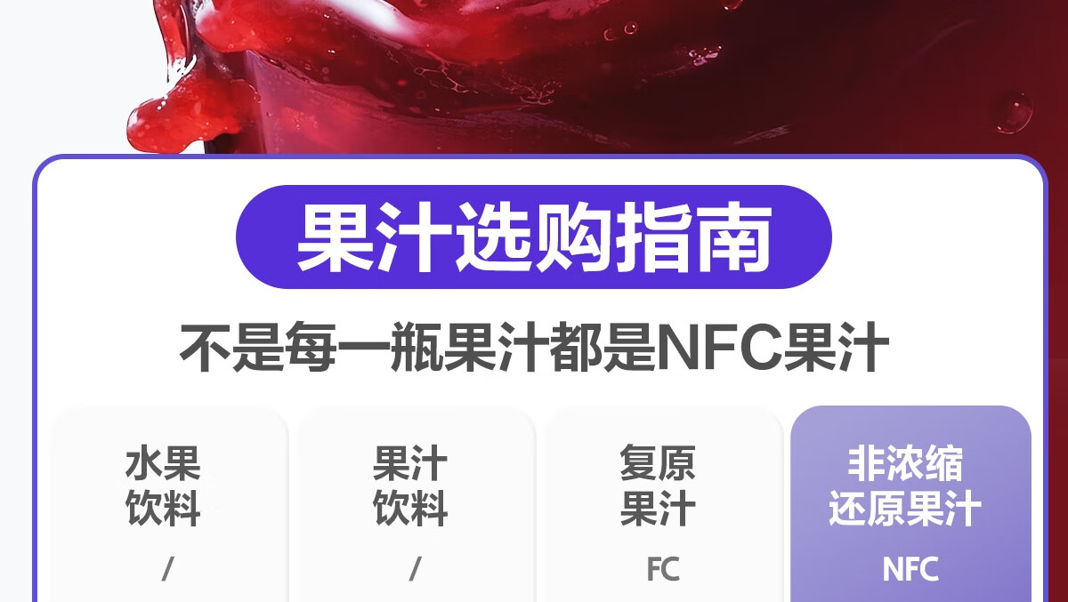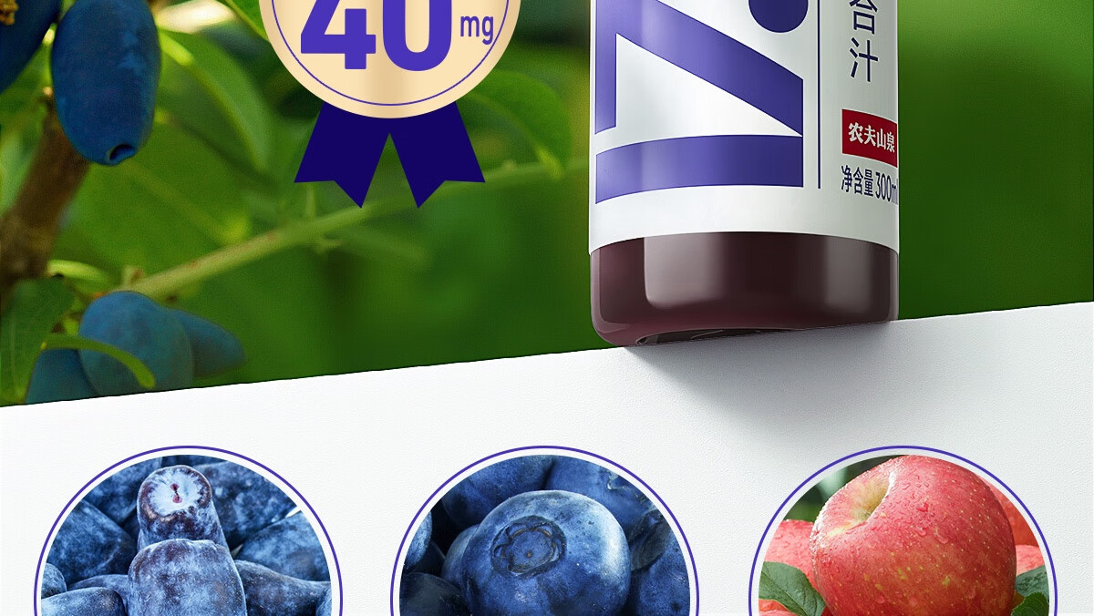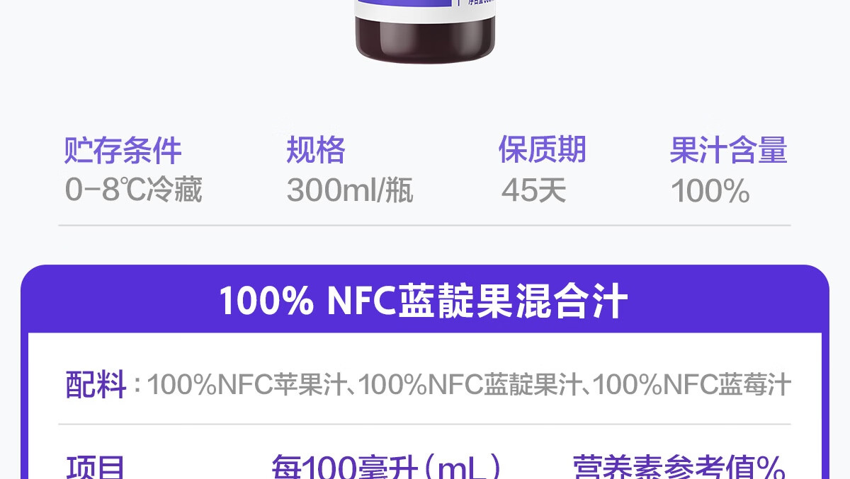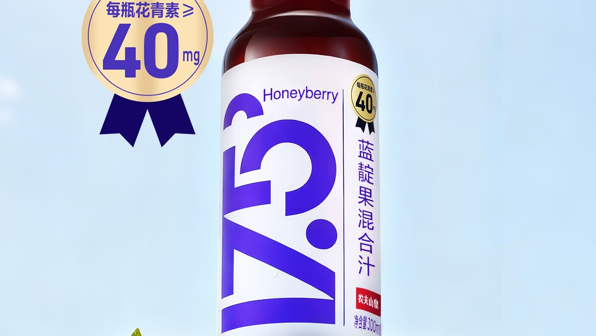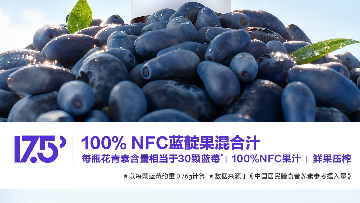农夫山泉【需冷藏】17.5°NFC蓝靛果混合汁纯果汁100%鲜果冷压榨300ml*5瓶