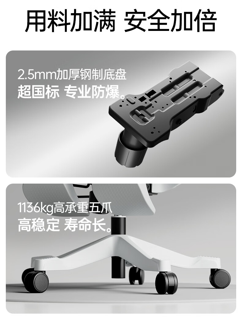 黑白调P2 Pro+二代人体工学电脑椅办公人工力学座椅学习久电竞椅4D腰托 P2Pro+二代霜白脚托 4D腰托+360°扶手