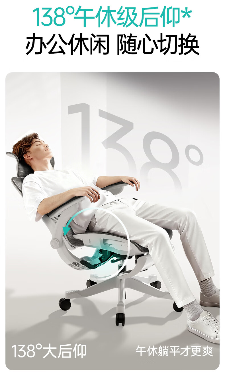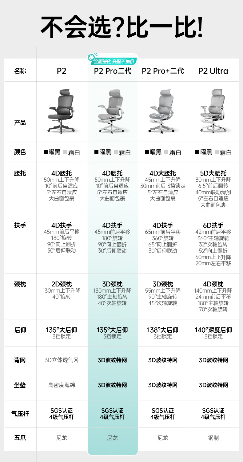 黑白调P2Pro二代人体工学椅电脑椅护腰办公椅人工力学座椅电竞椅4D腰托 P2Pro二代霜白 4D腰托+3D颈枕
