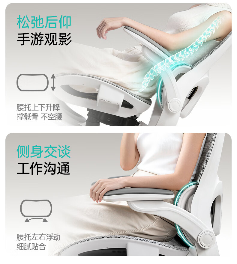 黑白调P2Pro人体工学电脑椅办公椅人工力学座椅电竞椅学习椅4D腰托 P2Pro柔纱米 4D护腰