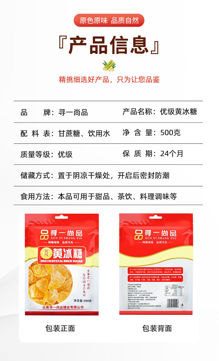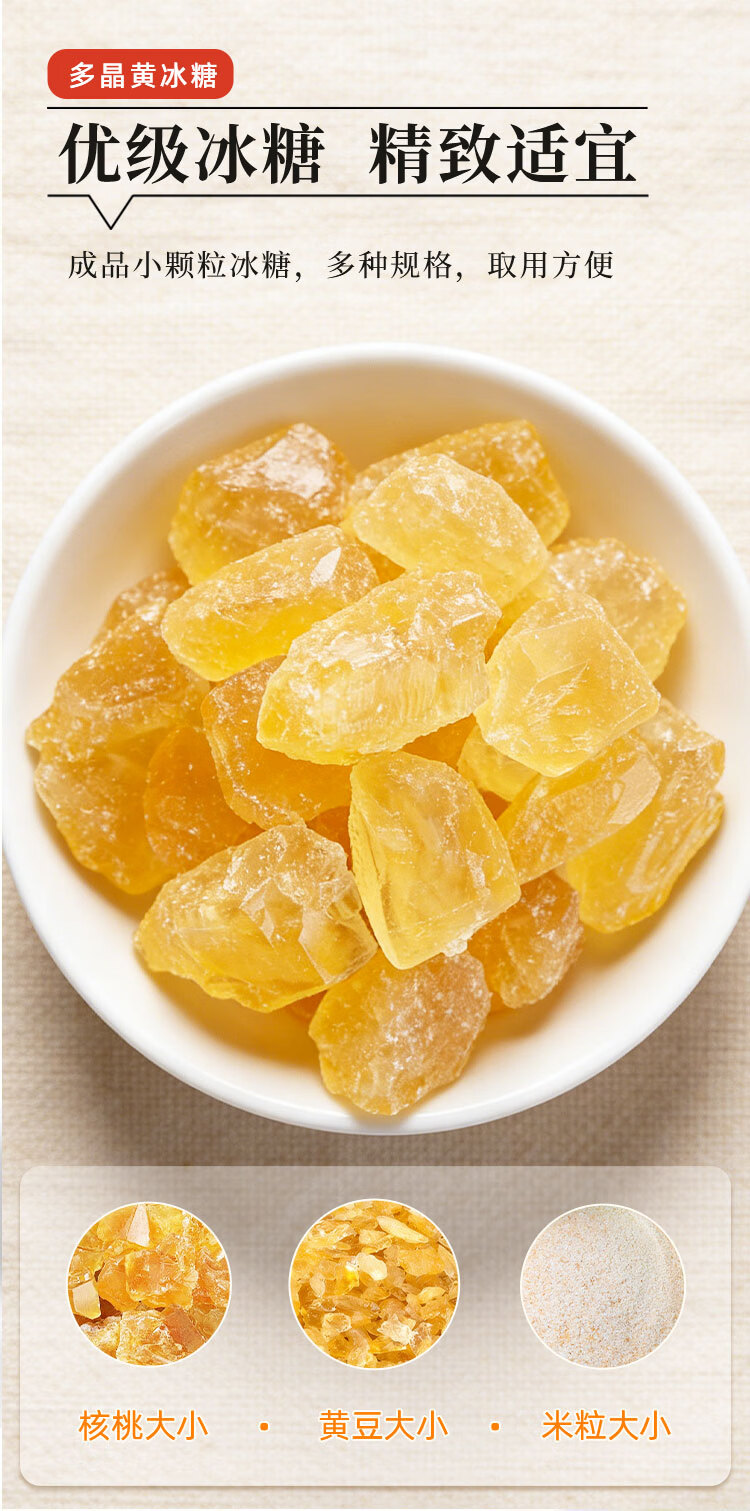 寻一尚品优级黄冰糖小粒老冰糖红烧肉炒糖色冰糖银耳百合糖水多晶老冰糖 500g 【易泡果酒】核桃大小3-5CM